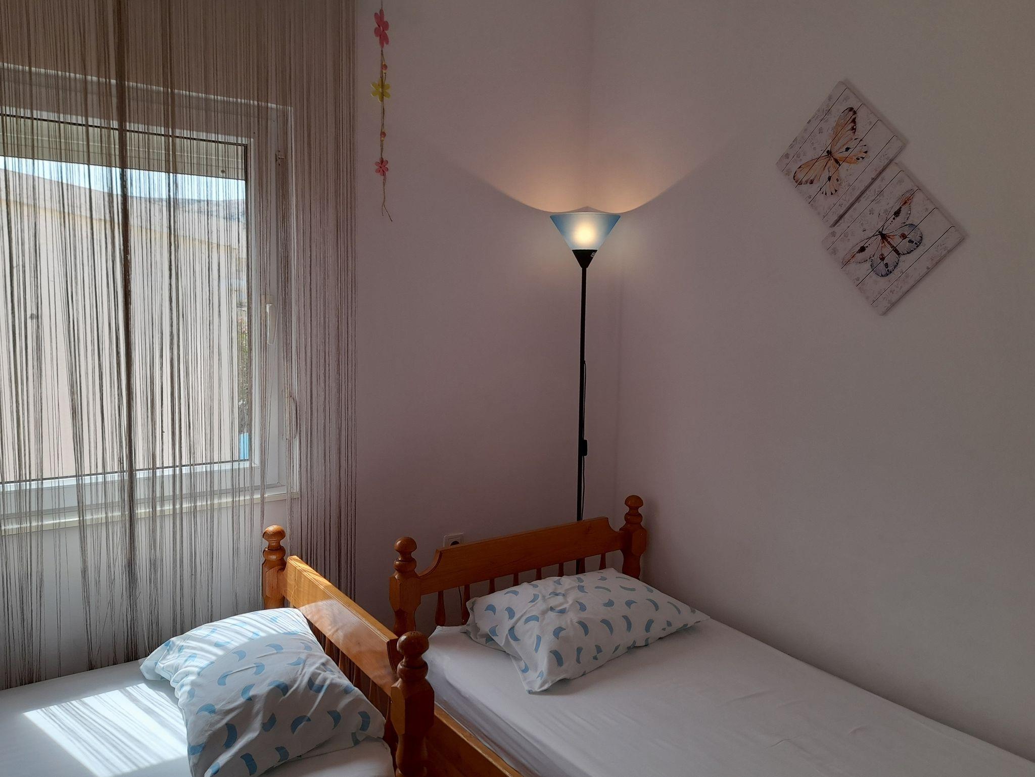 Ferienwohnung bietet Platz für 4 Gäste. Die Betten sind in Schlafzimmern, die es 2 gibt, innerhalb einer Gesamtfläche von 34m2, angeordnet. Die Gäste haben eine eigene Terrasse zur Verfügung, auf der sie in warmen Sommernächten genießen können. Das Apartment bietet Meerblick. Es ist erlaubt, Speisen auf dem Gemeinschafts-Grill vorzubereiten. IM PREIS INBEGRIFFEN: Kurtaxe, Endreinigung, Klimatisierung, Parkplatz, Internet, Kinderbett, Bügeleisen, Bügelbrett, Föhn. VERBINDLICHE ZUSÄTZLICHE KOSTEN: Aufzahlung für Kurzaufenthalte (prozentualer Zuschlag pro Nächtigungsanzahl: 30% - 1, 20% - 2, 10% - 3). Die Verfügbarkeit zusätzlicher Dienstleistungen in Ihrem reservierten Termin und die Preise derselben (falls nicht aufgeführt) müssen im Voraus überprüft werden. Zusätzliche Dienstleistungen die in der Zahlungsaufforderung nicht aufgeführt sind werden direkt beim Vermieter bezahlt, angenommen der Gast nutzt auch diese. Ermäßigung auf den Grundpreis: Gratistag 28=25 (bei einem Aufenthalt von 28 oder mehr Tagen erhalten Sie 3 kostenlose Tage für den Aufenthalt bis 31.12.26).