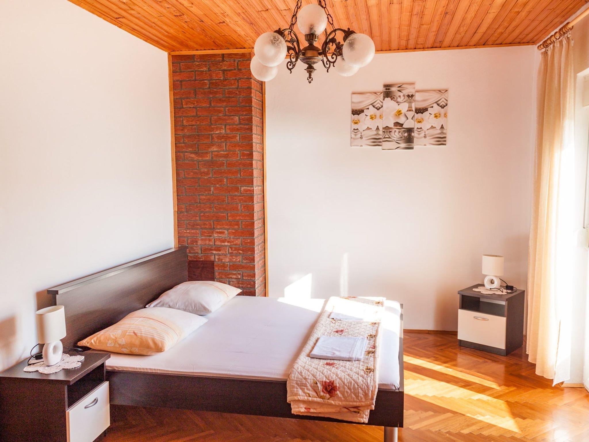 Ferienwohnung bietet Platz für 5 Gäste. Die Betten sind in Schlafzimmern, die es 2 gibt, innerhalb einer Gesamtfläche von 57m2, angeordnet. Die Gäste haben eine eigene Terrasse zur Verfügung, auf der sie in warmen Sommernächten genießen können. Das Apartment bietet Meerblick. Es ist erlaubt, Speisen auf dem Gemeinschafts-Grill vorzubereiten. IM PREIS INBEGRIFFEN: Kurtaxe, Endreinigung, Klimatisierung, Parkplatz, Internet, Bügeleisen, tragbarer Grill. Die Verfügbarkeit zusätzlicher Dienstleistungen in Ihrem reservierten Termin und die Preise derselben (falls nicht aufgeführt) müssen im Voraus überprüft werden. Zusätzliche Dienstleistungen die in der Zahlungsaufforderung nicht aufgeführt sind werden direkt beim Vermieter bezahlt, angenommen der Gast nutzt auch diese.