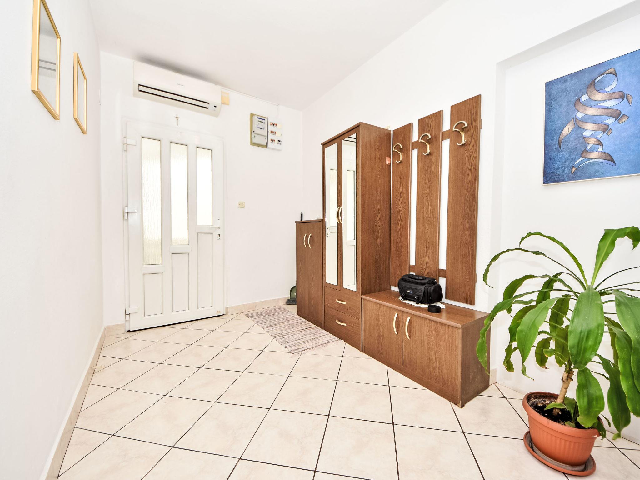 2-room apartment 50 m2, on the ground floor, south-west facing position. Entrance hall with air conditioning. Exit to the terrace. 1 room with 1 double bed (2 x 90 cm, length 200 cm), fan. 1 room with 1 double bed (2 x 90 cm, length 200 cm), fan. Dining room with satellite TV (flat screen). Open kitchen (4 hot plates, oven, freezer). Shower/WC. Air-conditioning (extra). Terrace 14 m2, roofed. Facilities: Internet (WiFi, free).