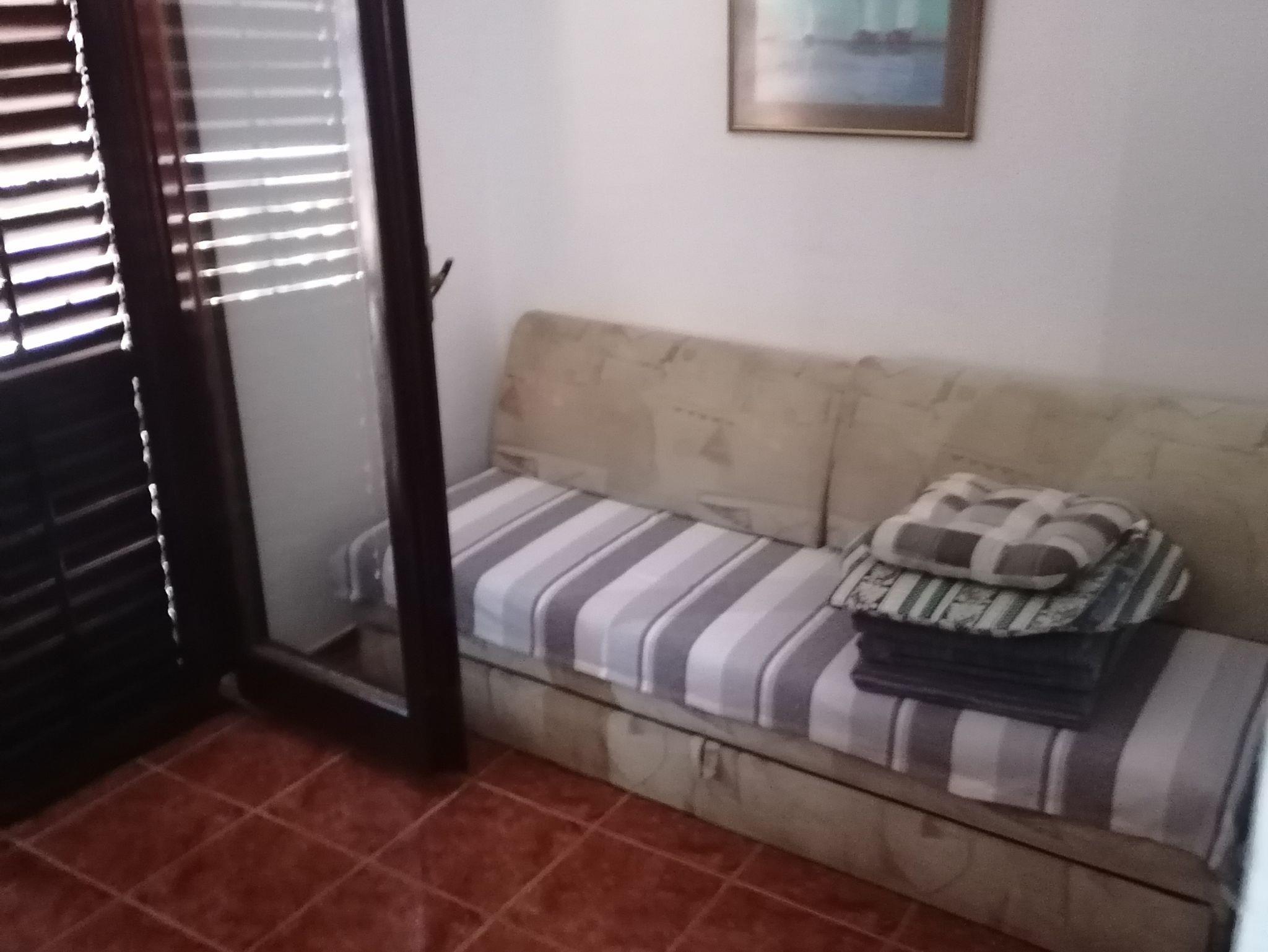 Ferienwohnung bietet Platz für 4 Gäste. Die Betten sind in Schlafzimmern, die es 1 gibt, und in Wohnzimmer, innerhalb einer Gesamtfläche von 33m2, angeordnet. Die Gäste haben eine eigene Terrasse zur Verfügung, auf der sie in warmen Sommernächten genießen können. Das Apartment bietet Meerblick. Es ist erlaubt, Speisen auf dem Gemeinschafts-Grill vorzubereiten. IM PREIS INBEGRIFFEN: Kurtaxe, Endreinigung, Klimatisierung, Parkplatz, Internet. VERBINDLICHE ZUSÄTZLICHE KOSTEN: Aufzahlung für Kurzaufenthalte (prozentualer Zuschlag pro Nächtigungsanzahl: 30% - 1, 20% - 2, 10% - 3). Die Verfügbarkeit zusätzlicher Dienstleistungen in Ihrem reservierten Termin und die Preise derselben (falls nicht aufgeführt) müssen im Voraus überprüft werden. Zusätzliche Dienstleistungen die in der Zahlungsaufforderung nicht aufgeführt sind werden direkt beim Vermieter bezahlt, angenommen der Gast nutzt auch diese.