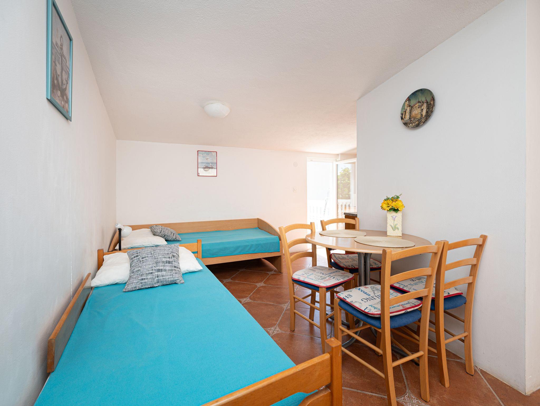 Ferienwohnung bietet Platz für 4 Gäste. Die Betten sind in Schlafzimmern, die es 1 gibt, und in Wohnzimmer, innerhalb einer Gesamtfläche von 27m2, angeordnet. Die Gäste haben eine eigene Terrasse zur Verfügung, auf der sie in warmen Sommernächten genießen können. Das Apartment bietet Meerblick. Es ist erlaubt, Speisen auf dem Gemeinschafts-Grill vorzubereiten. In der Unterkunftseinheit besteht die Möglichkeit des Mitbringens von Haustieren gegen Aufpreis. IM PREIS INBEGRIFFEN: Kurtaxe, Endreinigung, Klimatisierung, Parkplatz, Internet, Kinderbett, Bügeleisen, Bügelbrett, Föhn. VERBINDLICHE ZUSÄTZLICHE KOSTEN: Aufzahlung für Kurzaufenthalte (prozentualer Zuschlag pro Nächtigungsanzahl: 30% - 1, 20% - 2, 10% - 3). UNVERBINDLICHE ZUSÄTZLICHE KOSTEN: Haustiere (5,00 € pro Nacht). Die Verfügbarkeit zusätzlicher Dienstleistungen in Ihrem reservierten Termin und die Preise derselben (falls nicht aufgeführt) müssen im Voraus überprüft werden. Zusätzliche Dienstleistungen die in der Zahlungsaufforderung nicht aufgeführt sind werden direkt beim Vermieter bezahlt, angenommen der Gast nutzt auch diese.