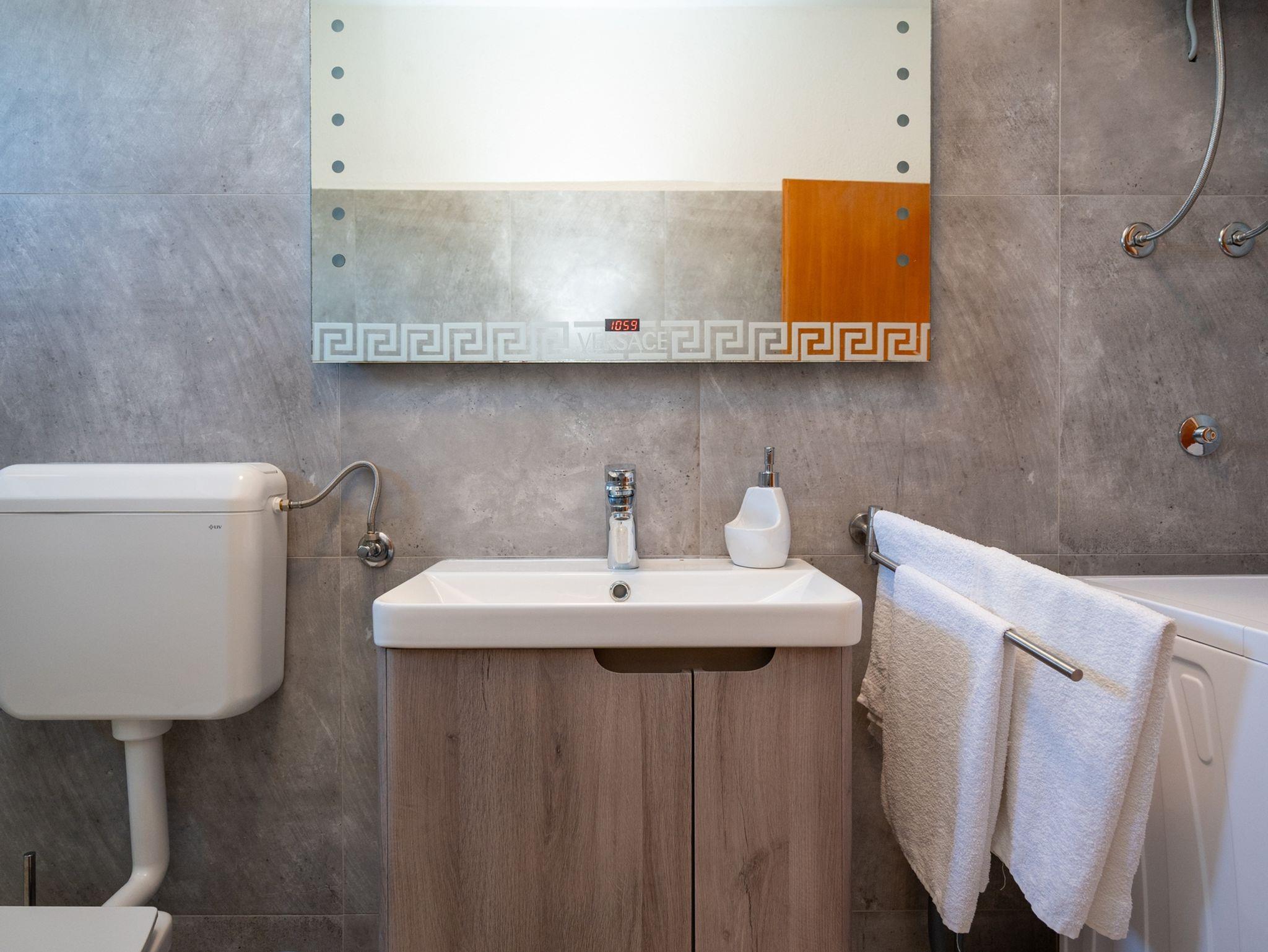 Ferienwohnung bietet Platz für 5 Gäste. Die Betten sind in Schlafzimmern, die es 2 gibt, innerhalb einer Gesamtfläche von 69m2, angeordnet. Die Gäste haben einen eigenen Balkon zur Verfügung, auf der sie in warmen Sommernächten genießen können. Es ist erlaubt, Speisen auf dem Gemeinschafts-Grill vorzubereiten. Während ihres Aufenthalts können Gäste das gemeinsam zur Nutzung stehende Schwimmbad benutzen. In der Unterkunftseinheit besteht die Möglichkeit des Mitbringens von Haustieren, und die Dienstleistung ist im Preis der Unterkunft enthalten. IM PREIS INBEGRIFFEN: Kurtaxe, Endreinigung, Klimatisierung, Pool, Parkplatz, Internet, Haustiere, Bügeleisen, Bügelbrett, Föhn. Die Verfügbarkeit zusätzlicher Dienstleistungen in Ihrem reservierten Termin und die Preise derselben (falls nicht aufgeführt) müssen im Voraus überprüft werden. Zusätzliche Dienstleistungen die in der Zahlungsaufforderung nicht aufgeführt sind werden direkt beim Vermieter bezahlt, angenommen der Gast nutzt auch diese.