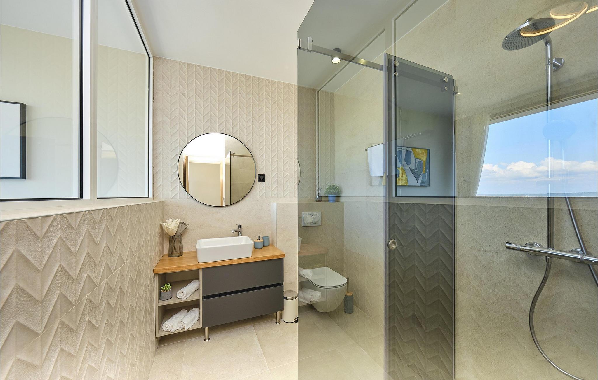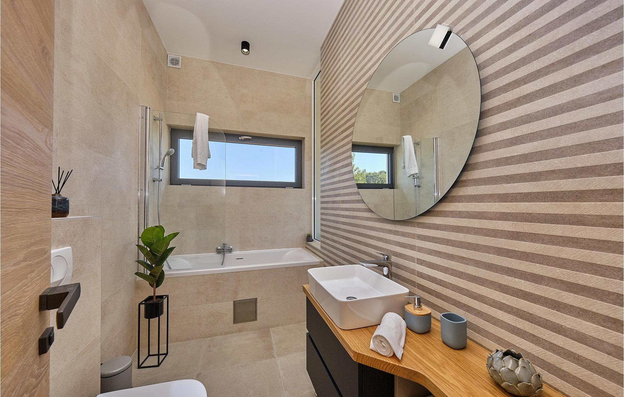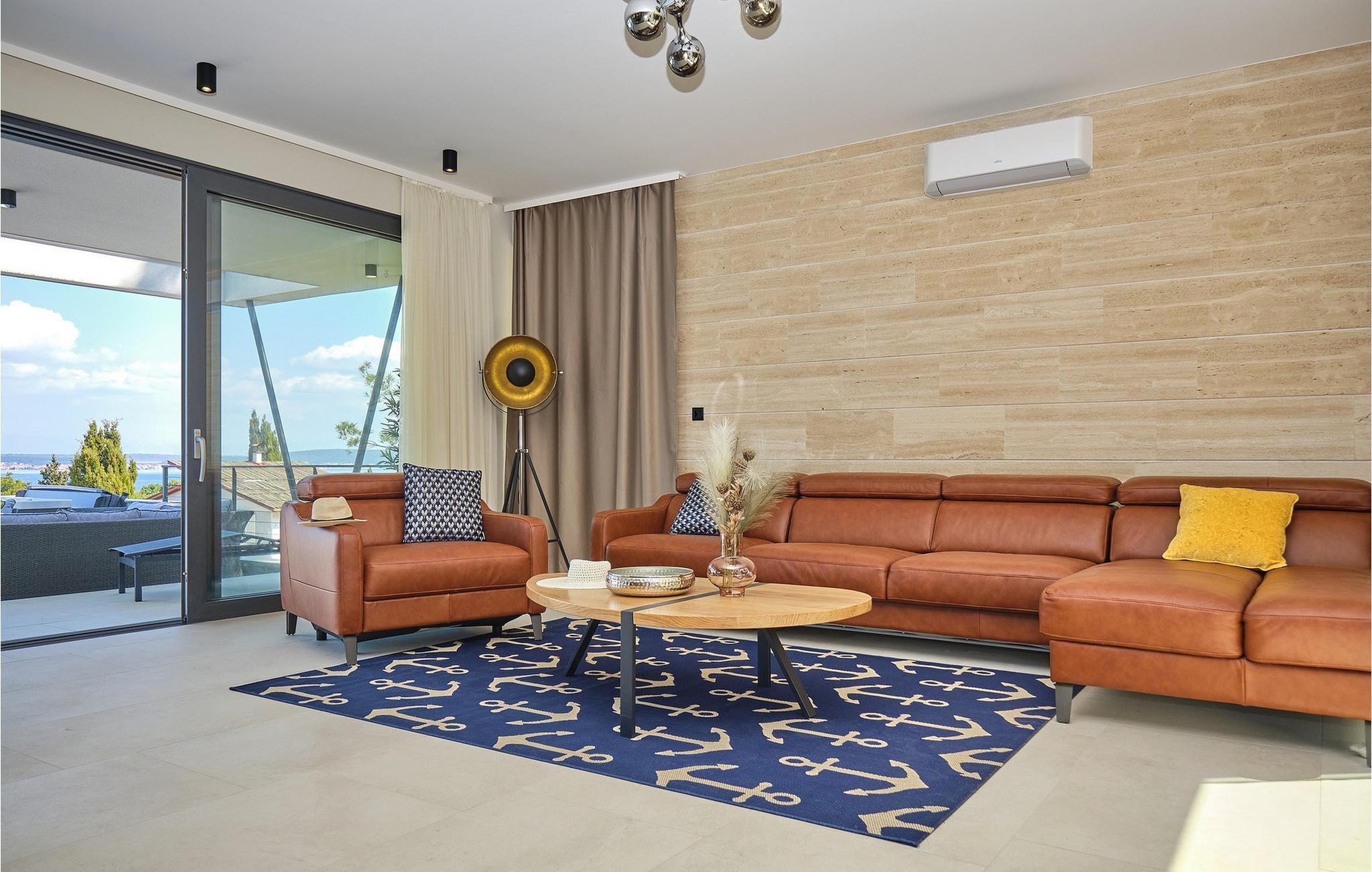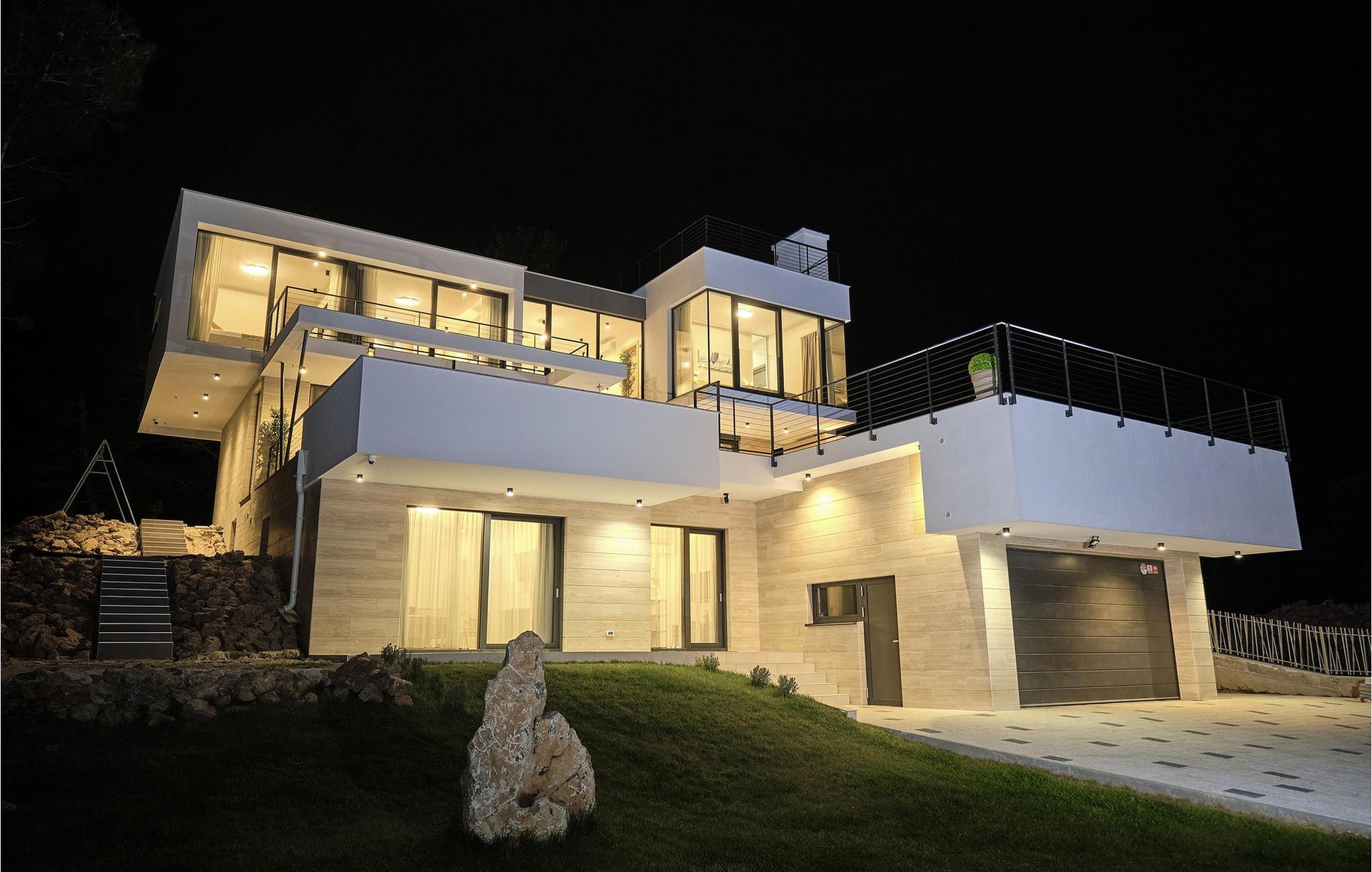 Die Luxusvilla Sunlight genießt eine privilegierte Hügellage in einem ruhigen Stadtteil von Ždrelac und liegt zugleich nur einen Spaziergang vom Meer entfernt. Erfreuen Sie sich beim Aufwachen am herrlichen Blick auf das glitzernde Meer, nutzen Sie den Fitnessraum für Ihr morgendliches Workout und zaubern Sie kulinarische Highlights in der modernen Küche. Lassen Sie das elegante und behagliche Ambiente bei stilvollen Mahlzeiten auf sich wirken und gönnen Sie sich wohlige Momente in der Sauna, während sich andere am Billardtisch, an der PlayStation oder am Kickertisch vergnügen. Das lichtdurchflutete Wohnzimmer mit seiner komfortablen Sofalandschaft verwandelt sich abends in eine gemütliche Wohlfühloase für anregende Gespräche, und die hauseigene Taverne sowie der rustikale Indoor-Grillbereich laden zum Plaudern bei einem guten Glas Wein ein.