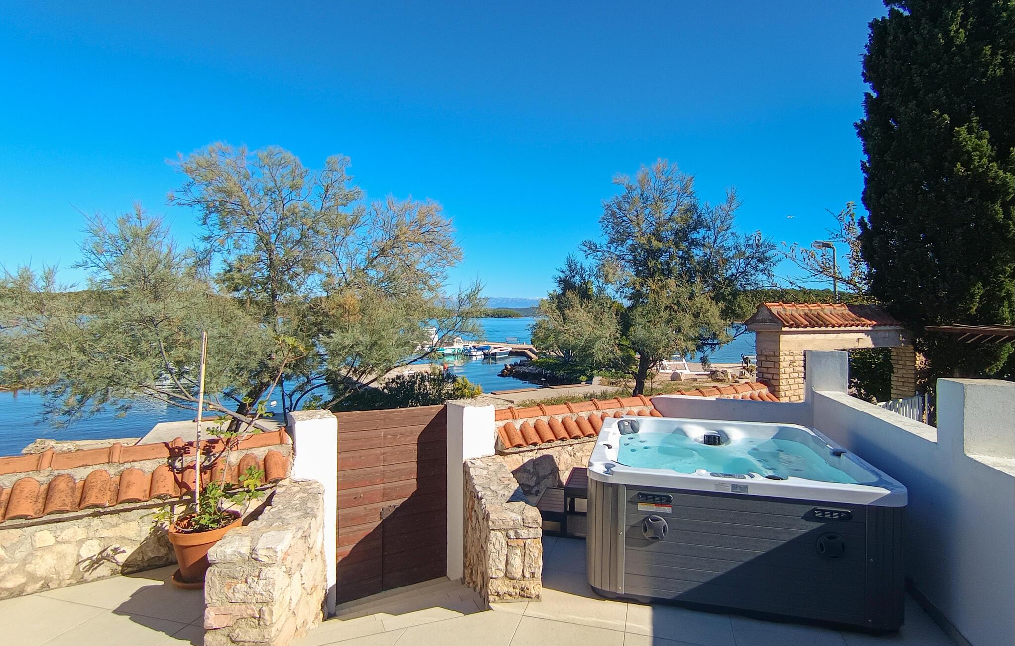 Es besteht aus drei separaten Wohneinheiten und hat Außentreppen. Zwei Wohneinheiten sind im Erdgeschoss und eine auf der Etage. Jede Unterkunft hat eine überdachte Terrasse und der große Garten ist ideal für Ihre Kinder zum Spielen. Vom Grundstück erreichen Sie über einen kleinen Fußweg direkt den Strand. Die Insel ist ideal für einen Familienurlaub, es gibt zahlreiche Strände und Spielinhalte für Kinder. Zdrelac ist über eine Brücke mit der Insel Ugljan verbunden, die mit Stränden, Lauf- und Wanderwegen sowie guten Tauchpositionen zum Erkunden einlädt.