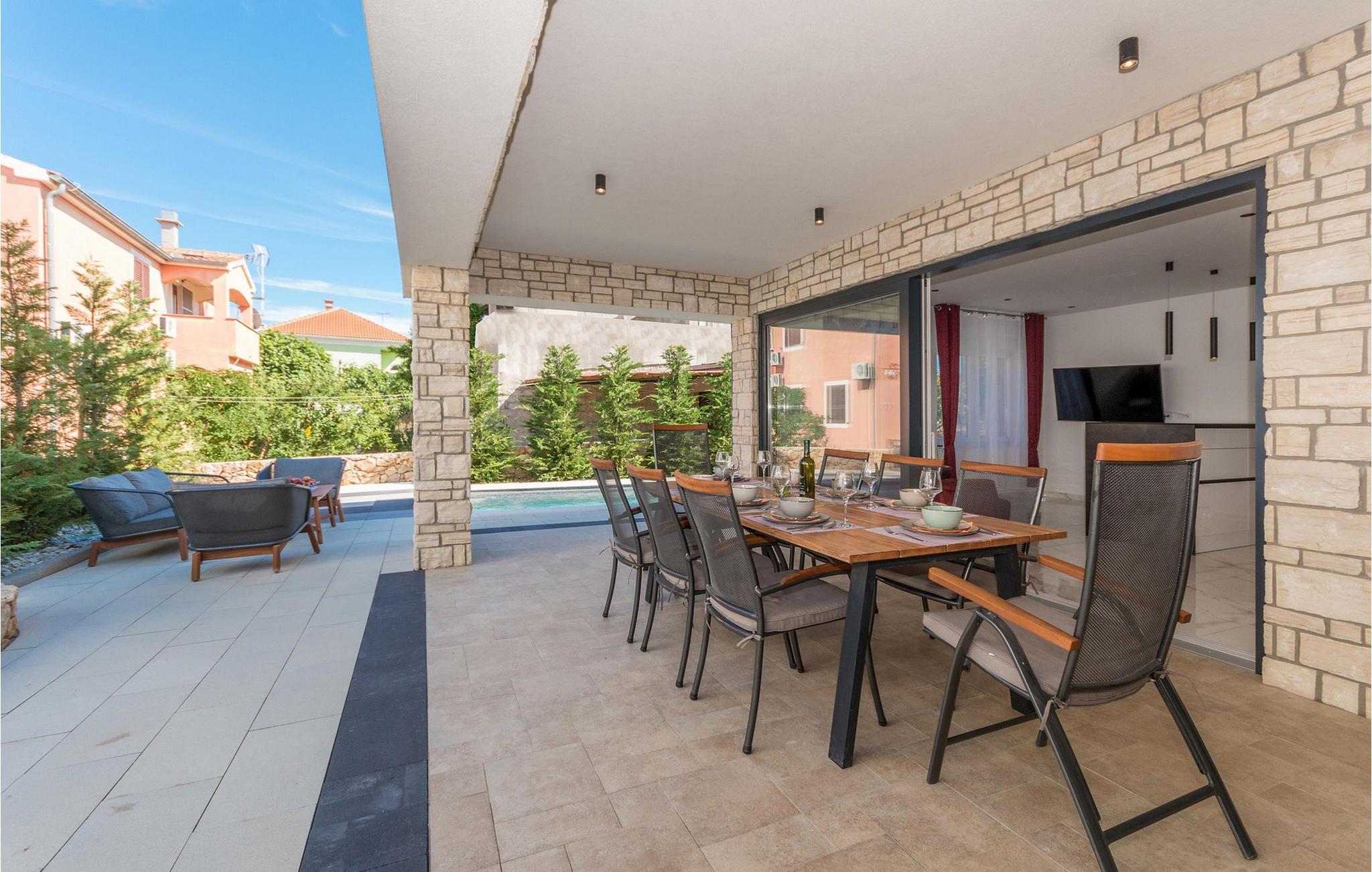 Von der Küche aus gelangen Sie direkt auf die Terrasse, die mit einem großen Esstisch und gemütlichen Sitzgelegenheiten zum Verweilen einlädt. Beginnen Sie den Tag mit einem Frühstück unter freiem Himmel und lassen Sie Ihren Blick über das funkelnde Meer schweifen. Erfrischen Sie sich zwischendurch im Pool oder entspannen Sie auf den Sonnenliegen mit einem guten Buch oder einem kühlen Drink in der Hand. Wenn der Abend anbricht und die Sonne im Meer versinkt, verwandelt sich die Terrasse in den idealen Ort für gesellige Runden bei Kerzenschein.
