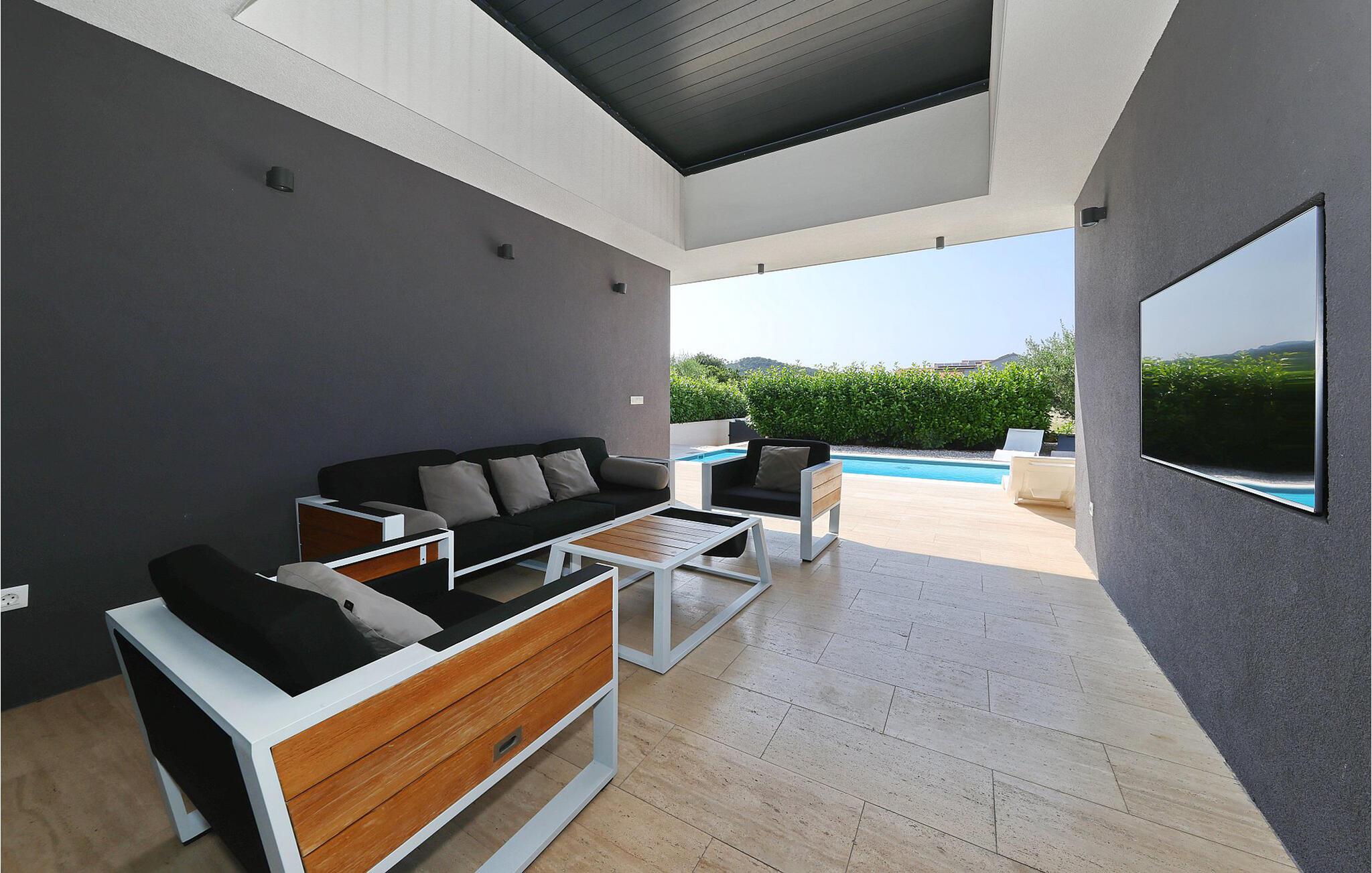 Die Villa K2 befindet sich in perfekter Lage auf der wunderschönen Insel Pasman in der Nähe von Zadar. Es ist das ideale Ferienhaus für kleine Familien oder Paare, die ihren Urlaub gemeinsam verbringen möchten. Die Villa verfügt über 3 Schlafzimmer, jedes mit TV und Klimaanlage. Zwei der Schlafzimmer verfügen über Doppelbetten, während das dritte über 2 Einzelbetten verfügt, die zu einem Doppelbett zusammengestellt werden können. Es gibt eine moderne, voll ausgestattete Küche mit Essbereich. Der Essbereich führt zum Loungebereich im Freien, der zum Entspannen einlädt und mit einem Sat-TV ausgestattet ist. Für Erfrischung sorgt der private Pool mit Liegestühlen, auf denen Sie sich im Sommer perfekt bräunen können. Die Villa ist Teil eines Komplexes von 4 Villen. Alle Villen sind gleich und haben identische Ausstattung. Wenn Sie also eine größere Gruppe sind, können Sie mehr als eine Villa mieten. Die Villen sind voll klimatisiert und verfügen über kostenfreies WLAN.Die Insel Pašman ist eine charmante Insel in der Nähe von Zadar und Biograd. Es ist eine wunderschöne Insel mit einer Fülle von Kräutern und Pinien, die für die intensiven und unwiderstehlichen mediterranen Düfte in der Luft verantwortlich sind. Die Insel ist nicht nur für ihre wunderschöne Natur und Strände bekannt, sondern auch für ihr reiches Kulturerbe und Architektur, die bis ins 12. Jahrhundert nach Christus zurückreicht. Die Insel ist auf jeden Fall einen Besuch wert und über eine Brücke mit der Insel Ugljan verbunden, sodass es noch mehr zu entdecken gibt.