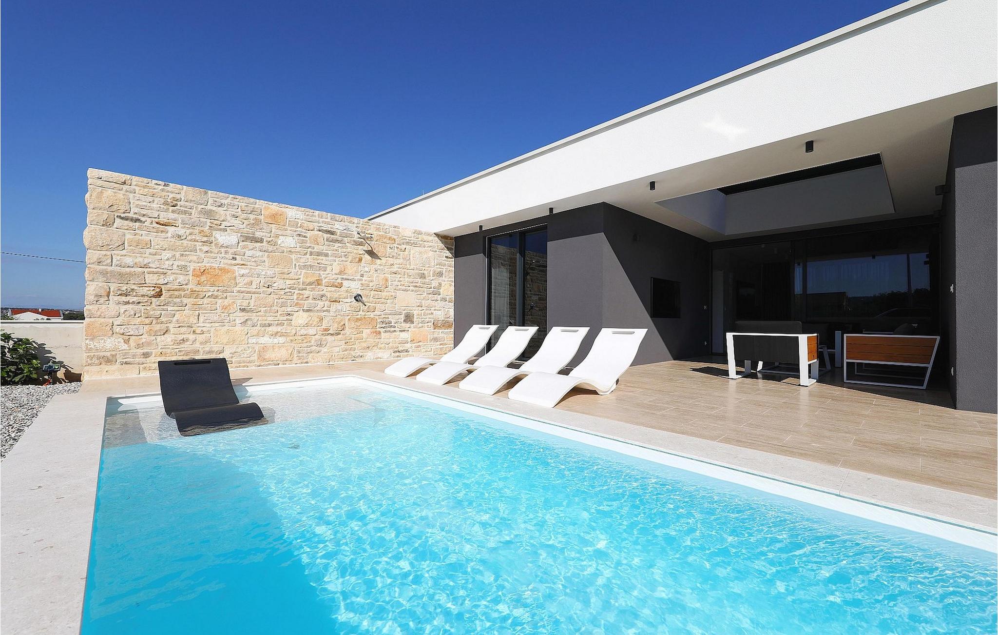Die Villa K3 befindet sich in perfekter Lage auf der wunderschönen Insel Pasman in der Nähe von Zadar. Es ist das ideale Ferienhaus für kleine Familien oder Paare, die ihren Urlaub gemeinsam verbringen möchten. Die Villa verfügt über 3 Schlafzimmer, jedes mit TV und Klimaanlage. Zwei der Schlafzimmer verfügen über Doppelbetten, während das dritte über 2 Einzelbetten verfügt, die zu einem Doppelbett zusammengestellt werden können. Es gibt eine moderne, voll ausgestattete Küche mit Essbereich. Der Essbereich führt zum Loungebereich im Freien, der zum Entspannen einlädt und mit einem Sat-TV ausgestattet ist. Für Erfrischung sorgt der private Pool mit Liegestühlen, auf denen Sie sich im Sommer perfekt bräunen können. Die Villa ist Teil eines Komplexes von 4 Villen. Alle Villen sind gleich und haben identische Ausstattung. Wenn Sie also eine größere Gruppe sind, können Sie mehr als eine Villa mieten. Die Villen sind voll klimatisiert und verfügen über kostenfreies WLAN.Die Insel Pašman ist eine charmante Insel in der Nähe von Zadar und Biograd. Es ist eine wunderschöne Insel mit einer Fülle von Kräutern und Pinien, die für die intensiven und unwiderstehlichen mediterranen Düfte in der Luft verantwortlich sind. Die Insel ist nicht nur für ihre wunderschöne Natur und Strände bekannt, sondern auch für ihr reiches Kulturerbe und Architektur, die bis ins 12. Jahrhundert nach Christus zurückreicht. Die Insel ist auf jeden Fall einen Besuch wert und über eine Brücke mit der Insel Ugljan verbunden, sodass es noch mehr zu entdecken gibt.