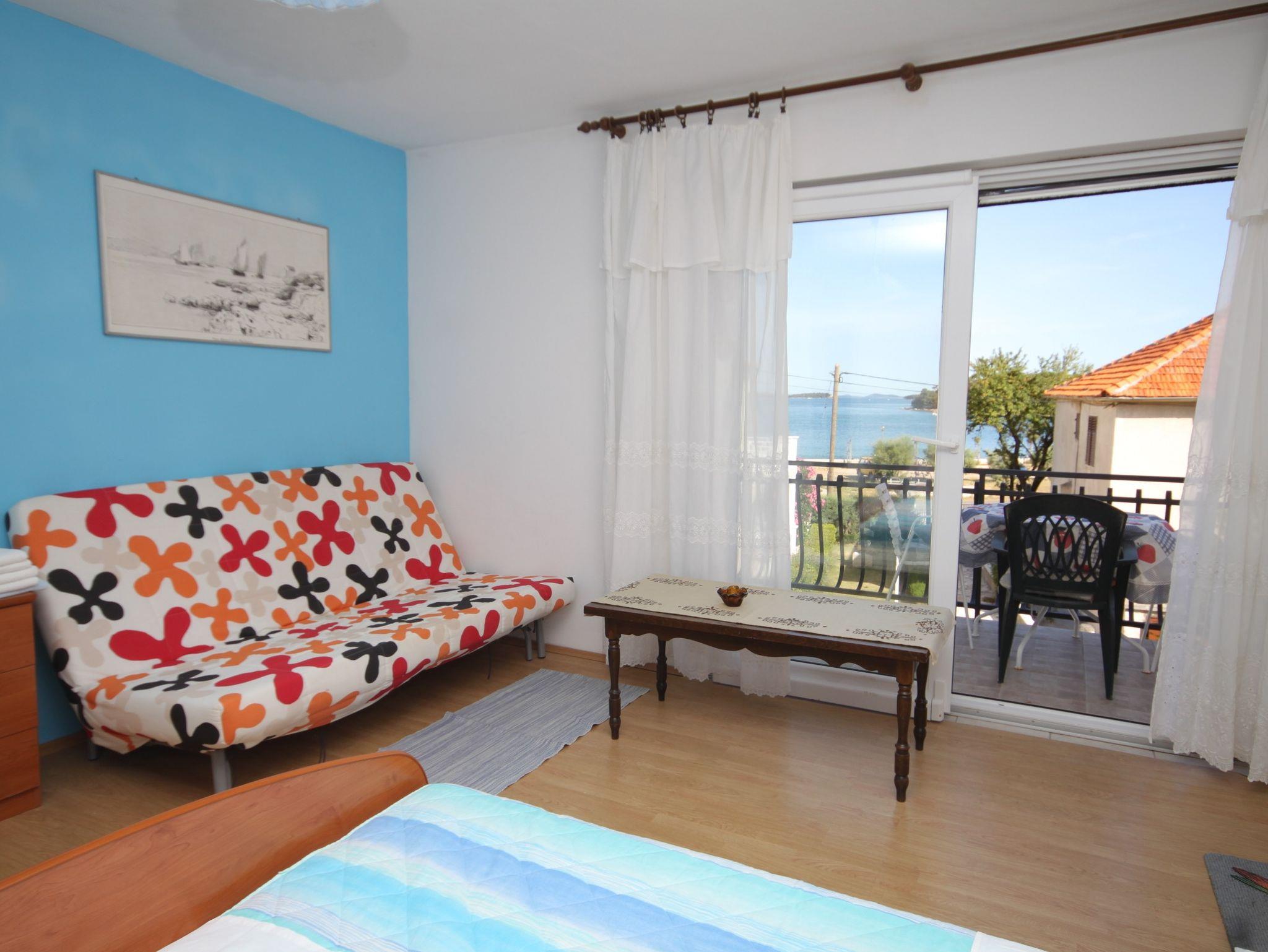Zimmer bietet Platz für 3 Gäste. Die Betten sind in Schlafzimmern, die es 1 gibt, innerhalb einer Gesamtfläche von 23m2, angeordnet. Die Gäste haben einen eigenen Balkon zur Verfügung, auf der sie in warmen Sommernächten genießen können. Das Zimmer bietet Meerblick. Es ist erlaubt, Speisen auf dem Gemeinschafts-Grill vorzubereiten. In der Unterkunftseinheit besteht die Möglichkeit des Mitbringens von Haustieren gegen Aufpreis. Die reservierte Unterkunftseinheit ist ein Zimmer mit eigenem Badezimmer ohne die Möglichkeit der Nutzung einer Küche. IM PREIS INBEGRIFFEN: Kurtaxe, Endreinigung, Klimatisierung, Internet, Bügeleisen, Bügelbrett, Föhn. VERBINDLICHE ZUSÄTZLICHE KOSTEN: Aufzahlung für Kurzaufenthalte (prozentualer Zuschlag pro Nächtigungsanzahl: 30% - 1, 20% - 2, 10% - 3). UNVERBINDLICHE ZUSÄTZLICHE KOSTEN: Haustiere (5,00 € pro Nacht). Die Verfügbarkeit zusätzlicher Dienstleistungen in Ihrem reservierten Termin und die Preise derselben (falls nicht aufgeführt) müssen im Voraus überprüft werden. Zusätzliche Dienstleistungen die in der Zahlungsaufforderung nicht aufgeführt sind werden direkt beim Vermieter bezahlt, angenommen der Gast nutzt auch diese.
