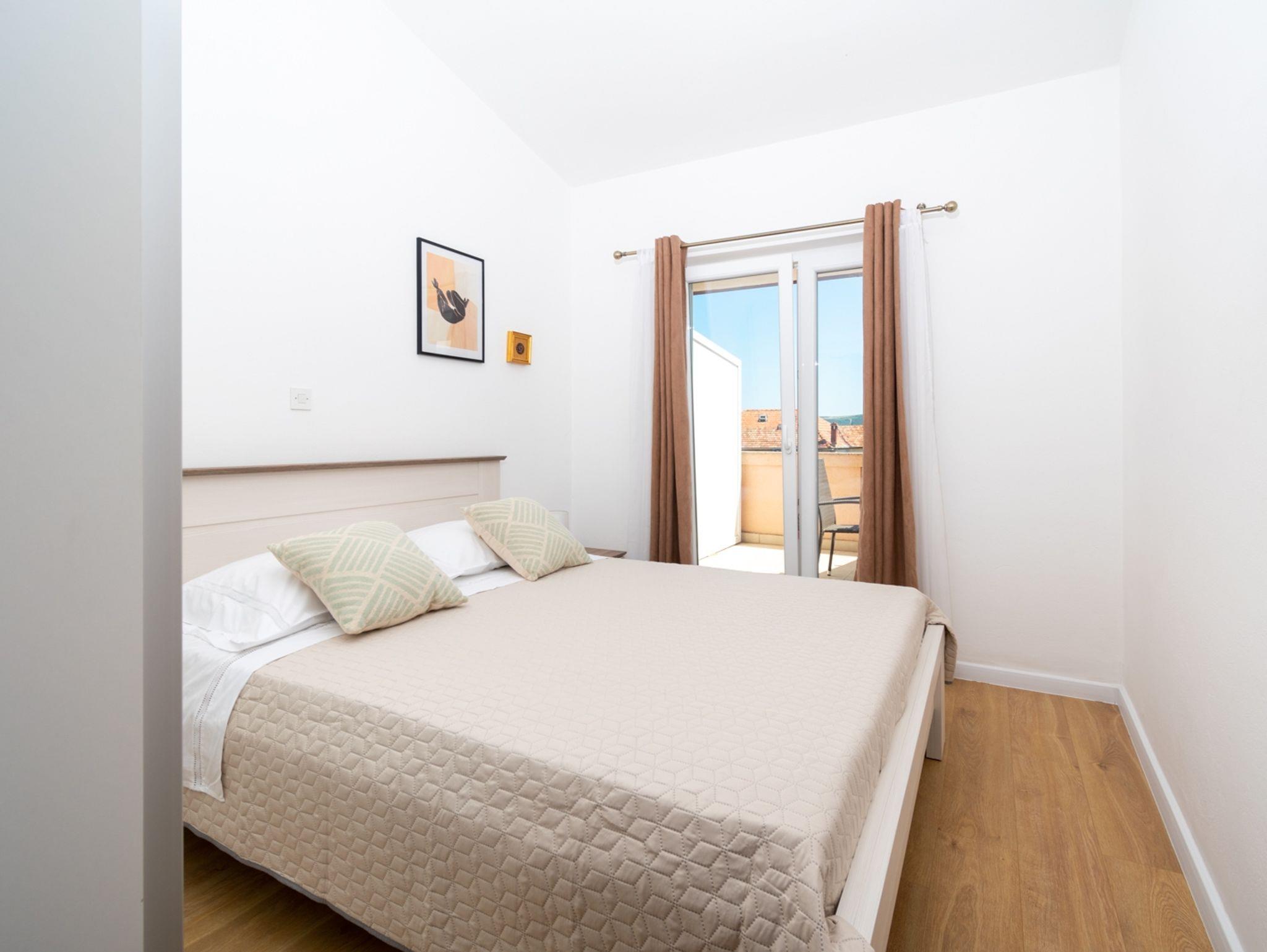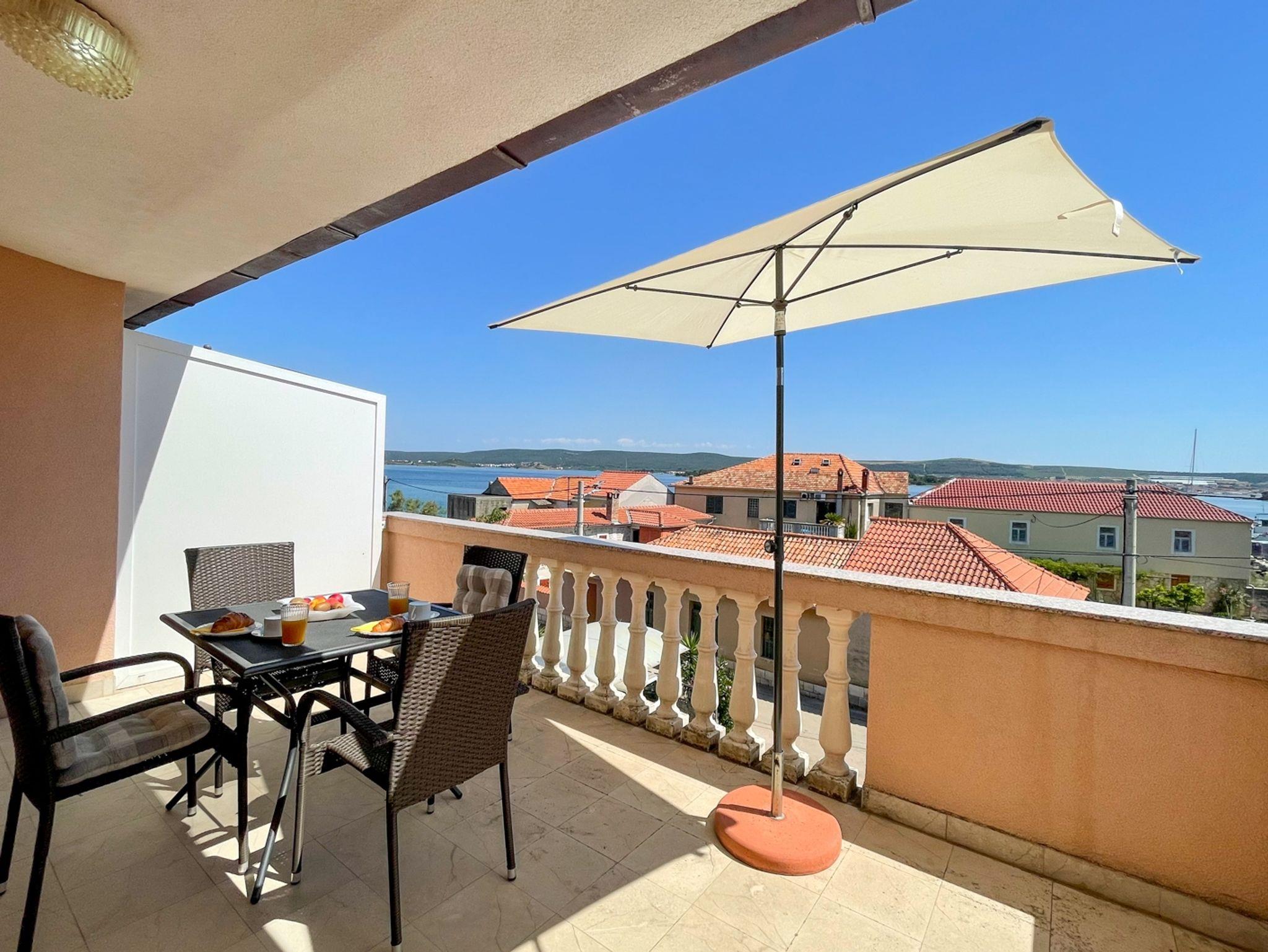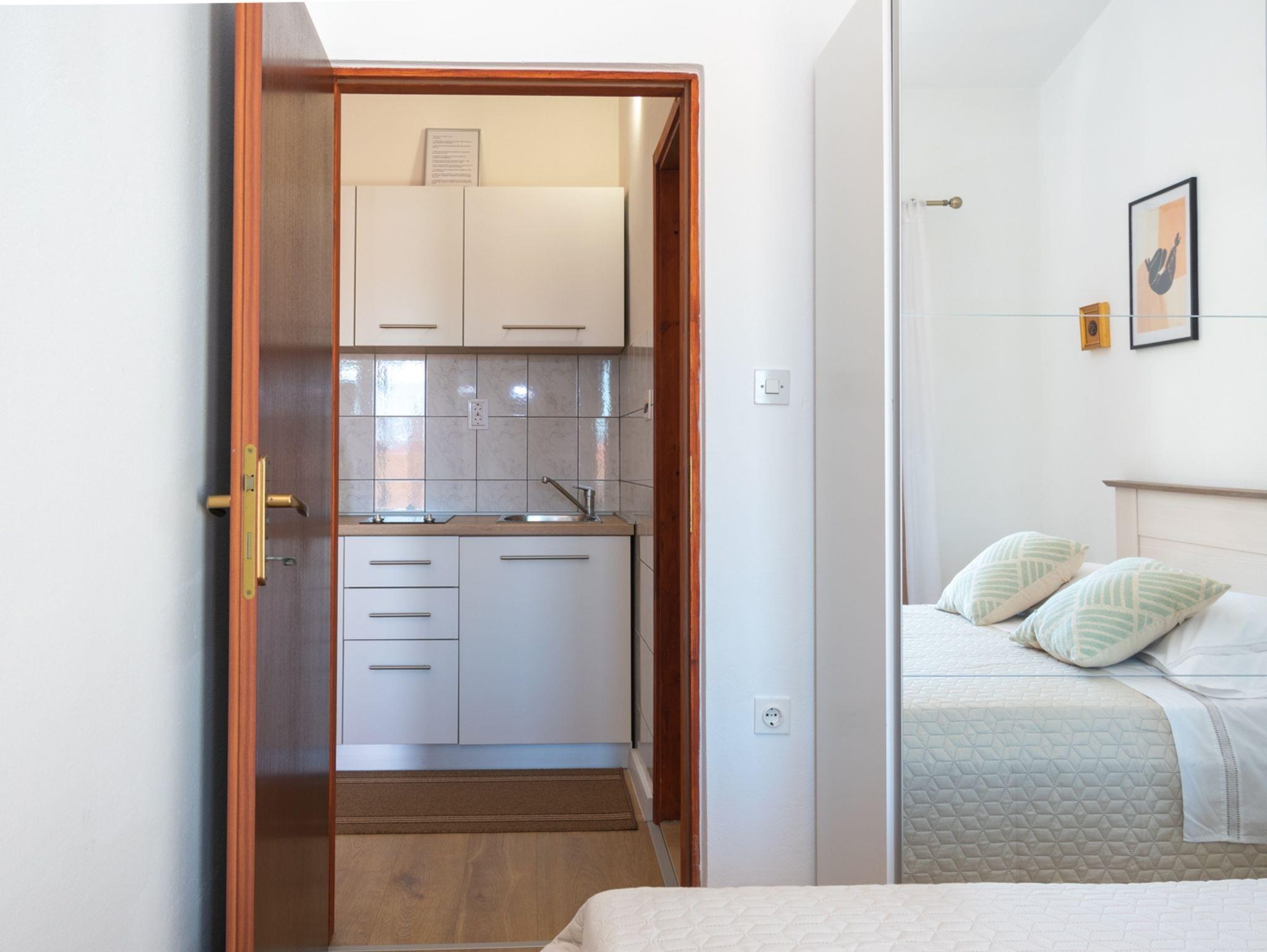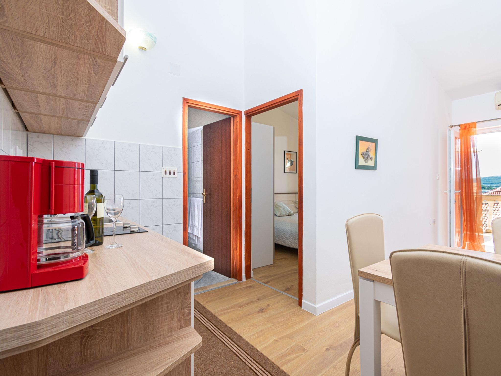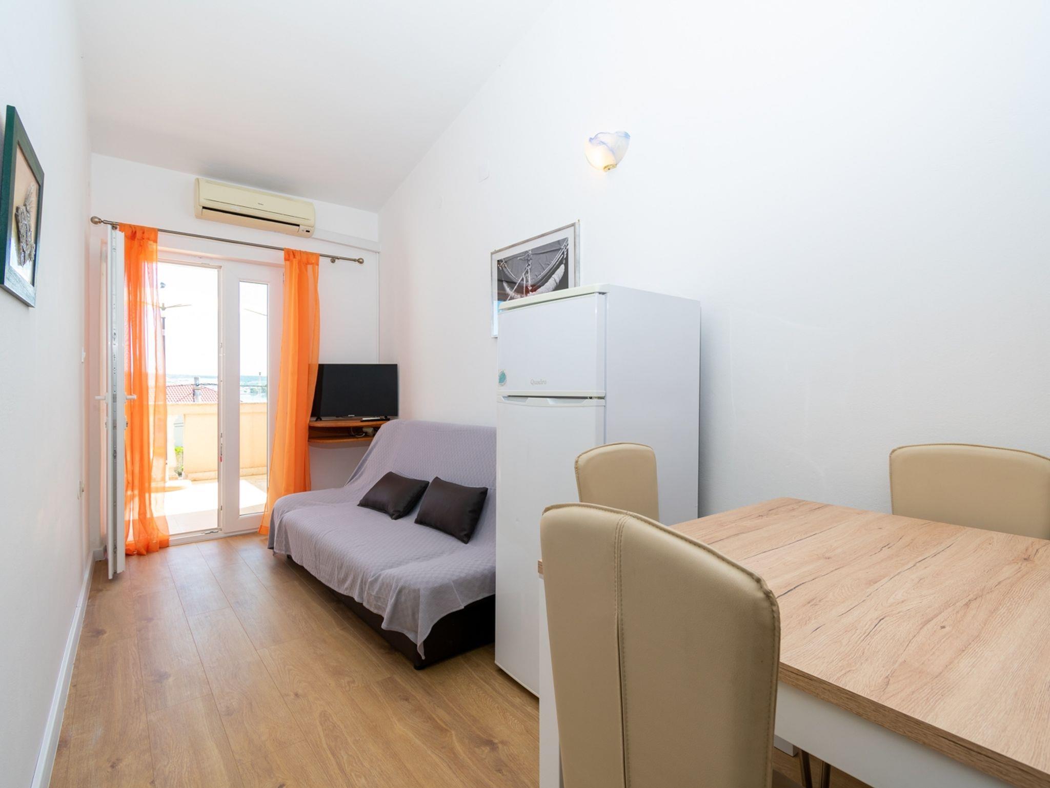 Ferienwohnung bietet Platz für 3 Gäste. Die Betten sind in Schlafzimmern, die es 1 gibt, und in Wohnzimmer, innerhalb einer Gesamtfläche von 25m2, angeordnet. Die Gäste haben eine eigene Terrasse zur Verfügung, auf der sie in warmen Sommernächten genießen können. Das Apartment bietet Meerblick. Es ist erlaubt, Speisen auf dem Gemeinschafts-Grill vorzubereiten. IM PREIS INBEGRIFFEN: Kurtaxe, Endreinigung, Klimatisierung, Parkplatz, Internet, Bootsanlegeplatz. VERBINDLICHE ZUSÄTZLICHE KOSTEN: Aufzahlung für Kurzaufenthalte (prozentualer Zuschlag pro Nächtigungsanzahl: 30% - 1, 20% - 2, 10% - 3). UNVERBINDLICHE ZUSÄTZLICHE KOSTEN: Wäschewaschen (5,00 € Waschen). Die Verfügbarkeit zusätzlicher Dienstleistungen in Ihrem reservierten Termin und die Preise derselben (falls nicht aufgeführt) müssen im Voraus überprüft werden. Zusätzliche Dienstleistungen die in der Zahlungsaufforderung nicht aufgeführt sind werden direkt beim Vermieter bezahlt, angenommen der Gast nutzt auch diese.