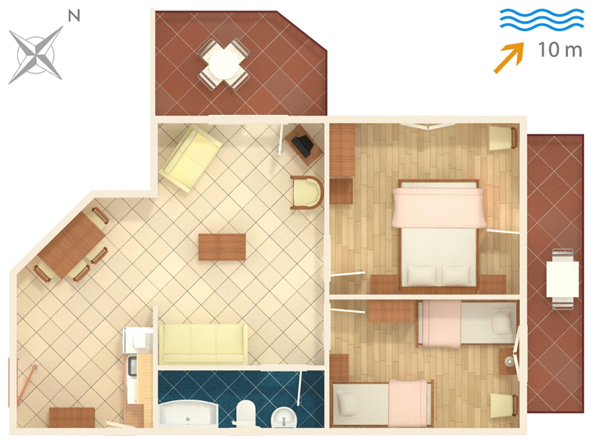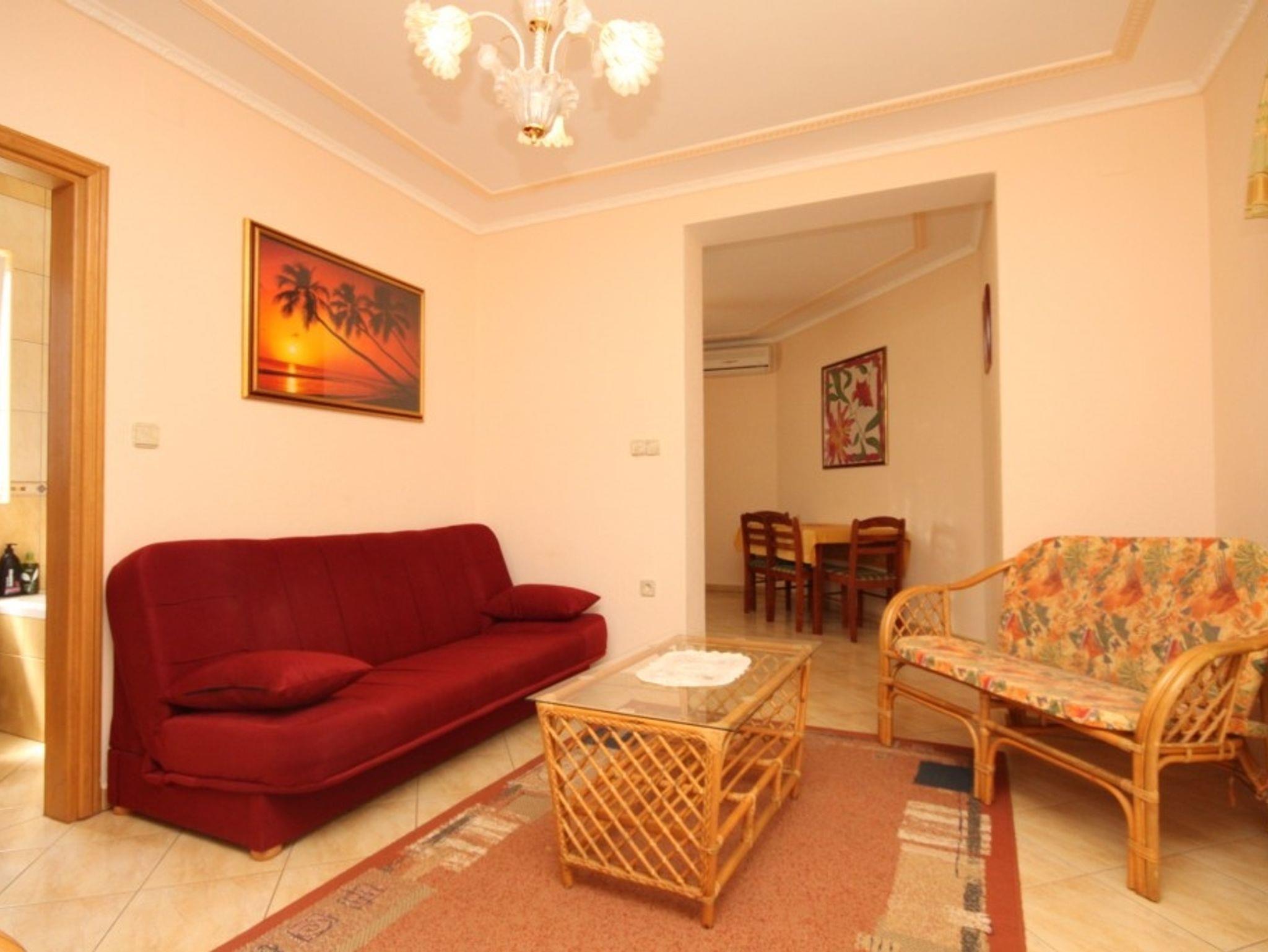 Ferienwohnung bietet Platz für 5 Gäste. Die Betten sind in Schlafzimmern, die es 2 gibt, und in Wohnzimmer, innerhalb einer Gesamtfläche von 48m2, angeordnet. Die Gäste haben eine eigene Terrasse zur Verfügung, auf der sie in warmen Sommernächten genießen können. Das Apartment bietet Meerblick. Es ist erlaubt, Speisen auf dem Gemeinschafts-Grill vorzubereiten. IM PREIS INBEGRIFFEN: Endreinigung, Klimatisierung, Parkplatz, Internet, Bügeleisen, Bügelbrett, Föhn, Liegestühle. VERBINDLICHE ZUSÄTZLICHE KOSTEN: Kurtaxe (Erwachsene 0,93 € - 1,50 € Nacht/Person, Kinderermäßigung 12 - 17 Jahre), Aufzahlung für Kurzaufenthalte (prozentualer Zuschlag pro Nächtigungsanzahl: 30% - 1, 20% - 2, 10% - 3). UNVERBINDLICHE ZUSÄTZLICHE KOSTEN: Zusatzbett (10,00 € pro Nacht). Die Verfügbarkeit zusätzlicher Dienstleistungen in Ihrem reservierten Termin und die Preise derselben (falls nicht aufgeführt) müssen im Voraus überprüft werden. Zusätzliche Dienstleistungen die in der Zahlungsaufforderung nicht aufgeführt sind werden direkt beim Vermieter bezahlt, angenommen der Gast nutzt auch diese.