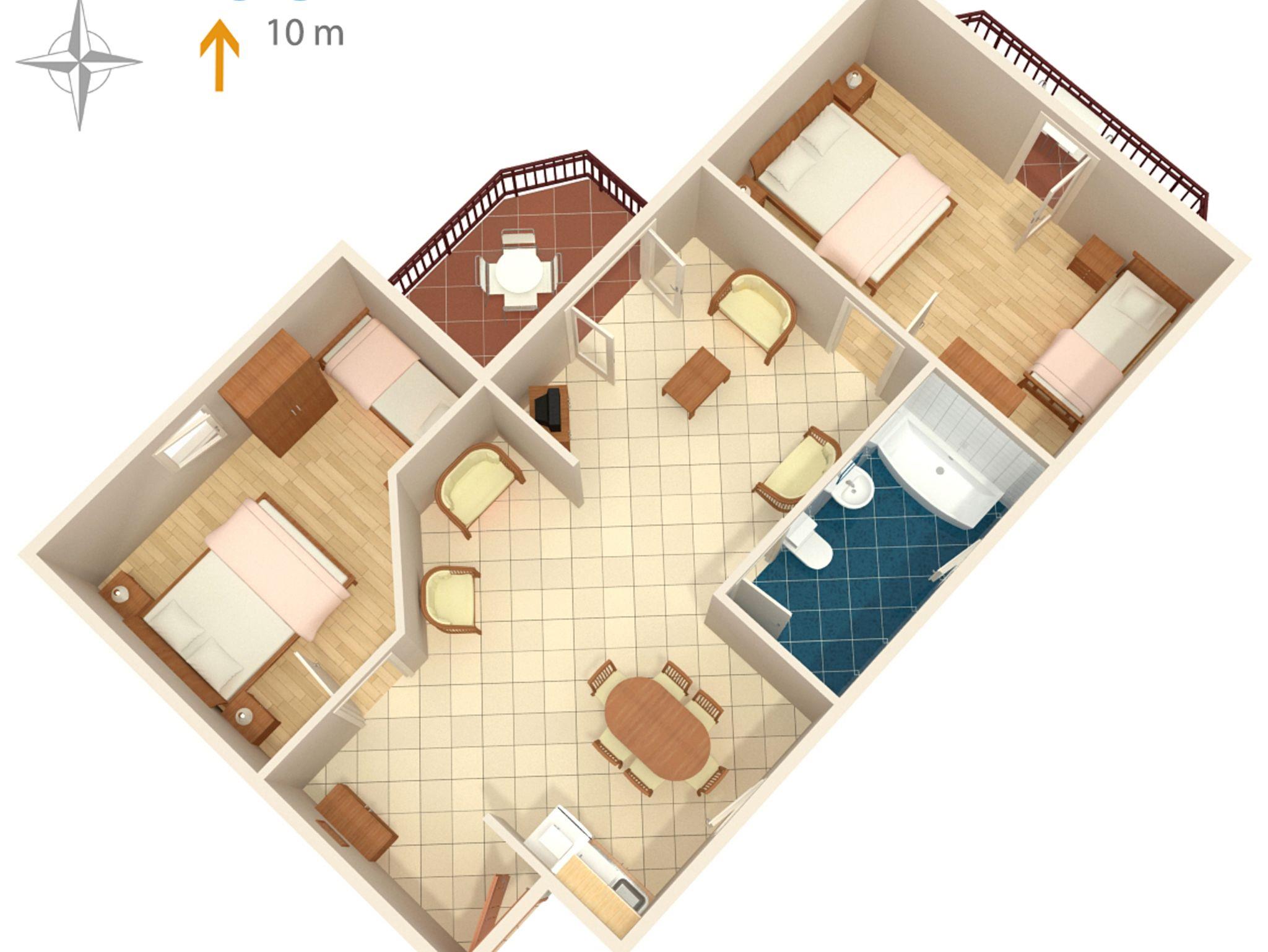 Ferienwohnung bietet Platz für 6 Gäste. Die Betten sind in Schlafzimmern, die es 2 gibt, innerhalb einer Gesamtfläche von 63m2, angeordnet. Die Gäste haben eine eigene Terrasse zur Verfügung, auf der sie in warmen Sommernächten genießen können. Das Apartment bietet Meerblick. Es ist erlaubt, Speisen auf dem Gemeinschafts-Grill vorzubereiten. IM PREIS INBEGRIFFEN: Endreinigung, Klimatisierung, Parkplatz, Internet, Bügeleisen, Bügelbrett, Föhn, Liegestühle. VERBINDLICHE ZUSÄTZLICHE KOSTEN: Kurtaxe (Erwachsene 0,93 € - 1,50 € Nacht/Person, Kinderermäßigung 12 - 17 Jahre), Aufzahlung für Kurzaufenthalte (prozentualer Zuschlag pro Nächtigungsanzahl: 30% - 1, 20% - 2, 10% - 3). Die Verfügbarkeit zusätzlicher Dienstleistungen in Ihrem reservierten Termin und die Preise derselben (falls nicht aufgeführt) müssen im Voraus überprüft werden. Zusätzliche Dienstleistungen die in der Zahlungsaufforderung nicht aufgeführt sind werden direkt beim Vermieter bezahlt, angenommen der Gast nutzt auch diese.