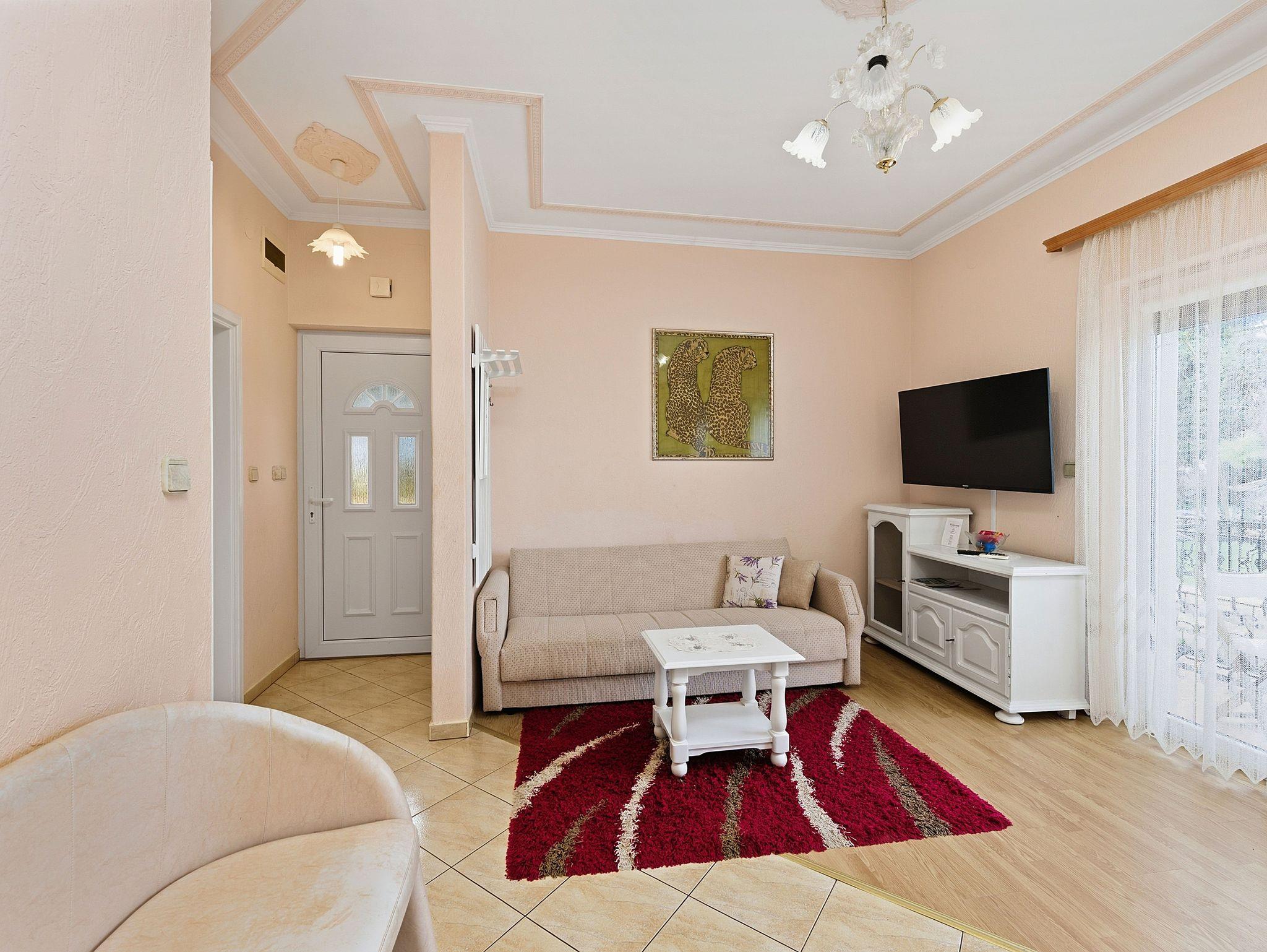 Umgebung des Objekts (Ordentlich), Hof (50m2, Sitzbereich), Parkplatz (Anzahl der Parkplätze: 4, Entfernung vom Objekt: im Hof), Grill: gemeinsam, WiFi Internet, Föhn, Bügeleisen, Bügelbrett, Liegestühle
