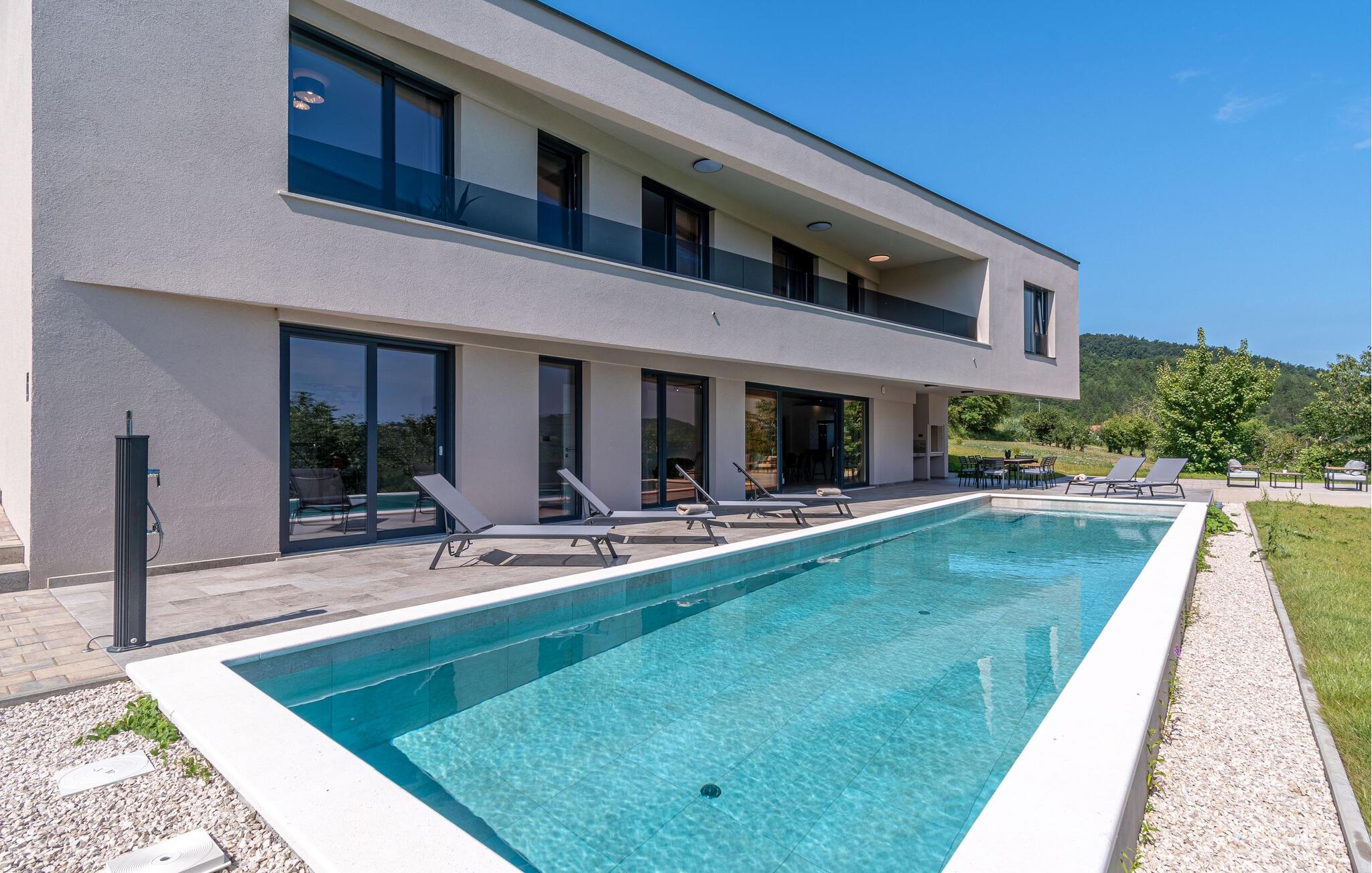 Ihr stilvoll eingerichtetes Ferienhaus nahe Pazin lädt mit einem modernen Design und einer komfortablen Ausstattung zum Verweilen ein. Genießen Sie entspannte Stunden auf der sonnigen Terrasse, die mit bequemen Outdoor-Möbeln ausgestattet ist, oder erfrischen Sie sich im Pool, der mit einem traumhaften Blick auf die umliegenden grünen Hügel lockt. Beginnen Sie den Tag mit einem gemütlichen Frühstück auf der großzügigen Terrasse oder lassen Sie den Abend bei einem Grillabend ausklingen. Der offene Wohnbereich des Hauses bietet viel Platz zum Entspannen und eine gut ausgestattete Küche, in der Sie gemeinsam kochen können. Auch die Fitness kommt hier nicht zu kurz. Nutzen Sie den Fitnessraum, um auch im Urlaub in Form zu bleiben oder zu kommen.