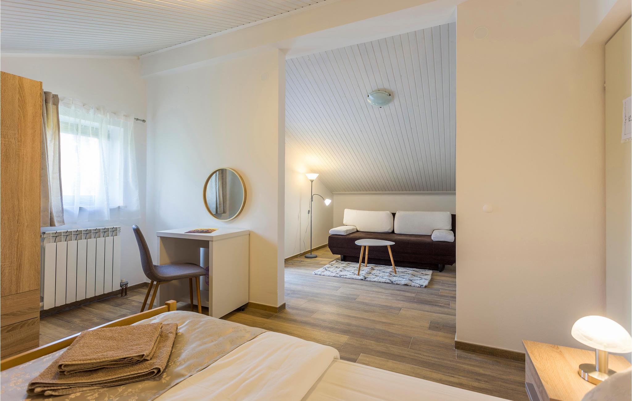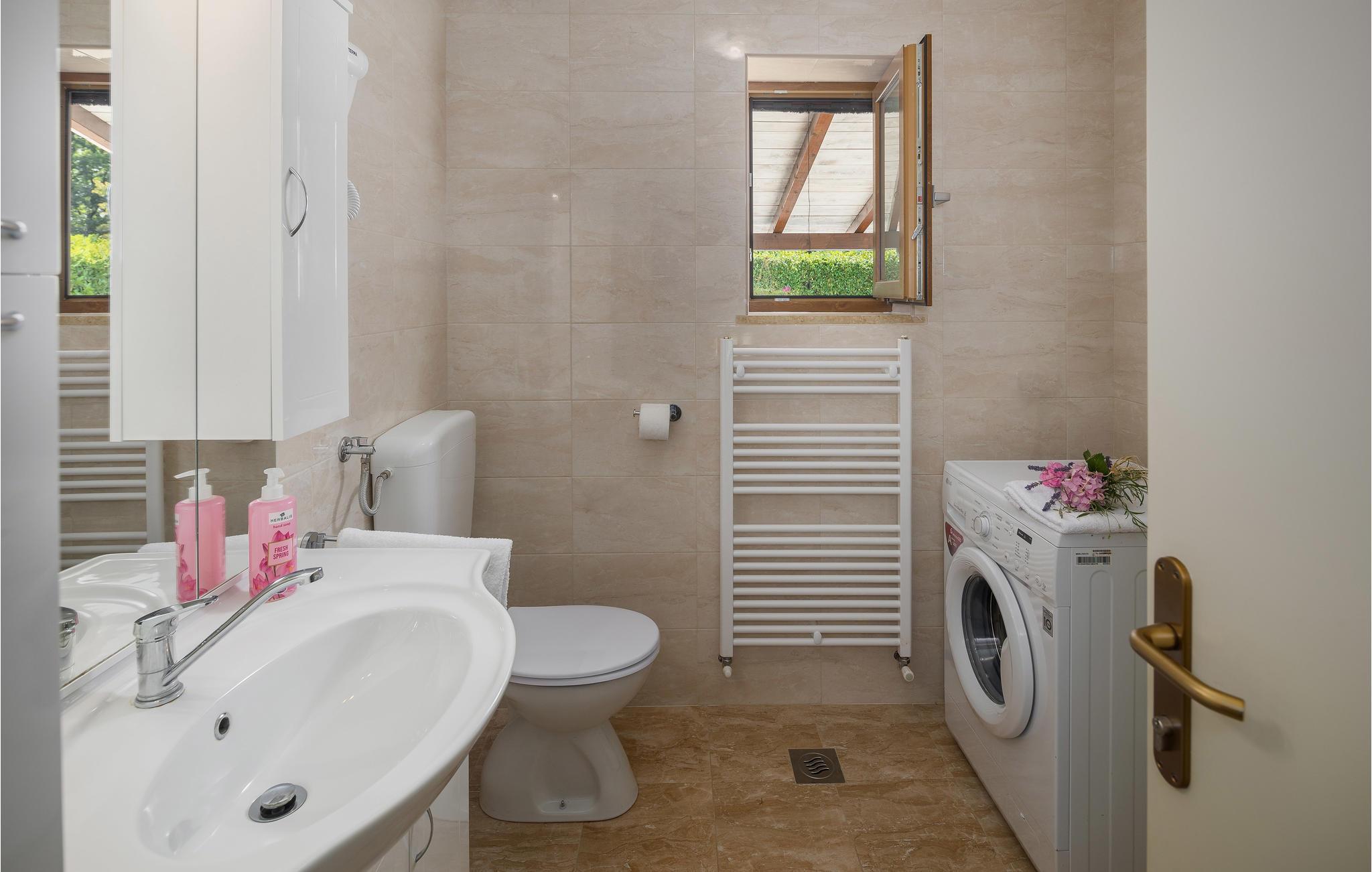 Schönes und modern eingerichtetes Ferienhaus zum Wohlfühlen in einer ruhigen und landschaftlich schönen Gegend. Die Räumlichkeiten sind auf zwei Stockwerke verteilt. Neben dem Haus befindet sich ein Restaurant mit der typischen, regionalen Küche, eine Konoba, in der Sie wohlschmeckende Gerichte und Spezialitäten probieren können. In der Gegend können Sie sich richtig entspannen, wandern, Rad fahren oder am schönen Strand baden. Sie können auch einfach den Tag am Pool verbringen. Dieser sorgt jederzeit für eine willkommene Erfrischung. Erkunden Sie die Gegend und machen Sie Ausflüge in die kleinen, gemütlichen Dörfern im Landesinneren. Besuchen Sie auch die hübsche Mittelalterstadt Motovun mit ihren alten Stadtmauern. Im Motovun findet auch das jährliche Filmfestival statt. Die niedrigste Deckenhöhe im Dachgeschoss beträgt 1 m.