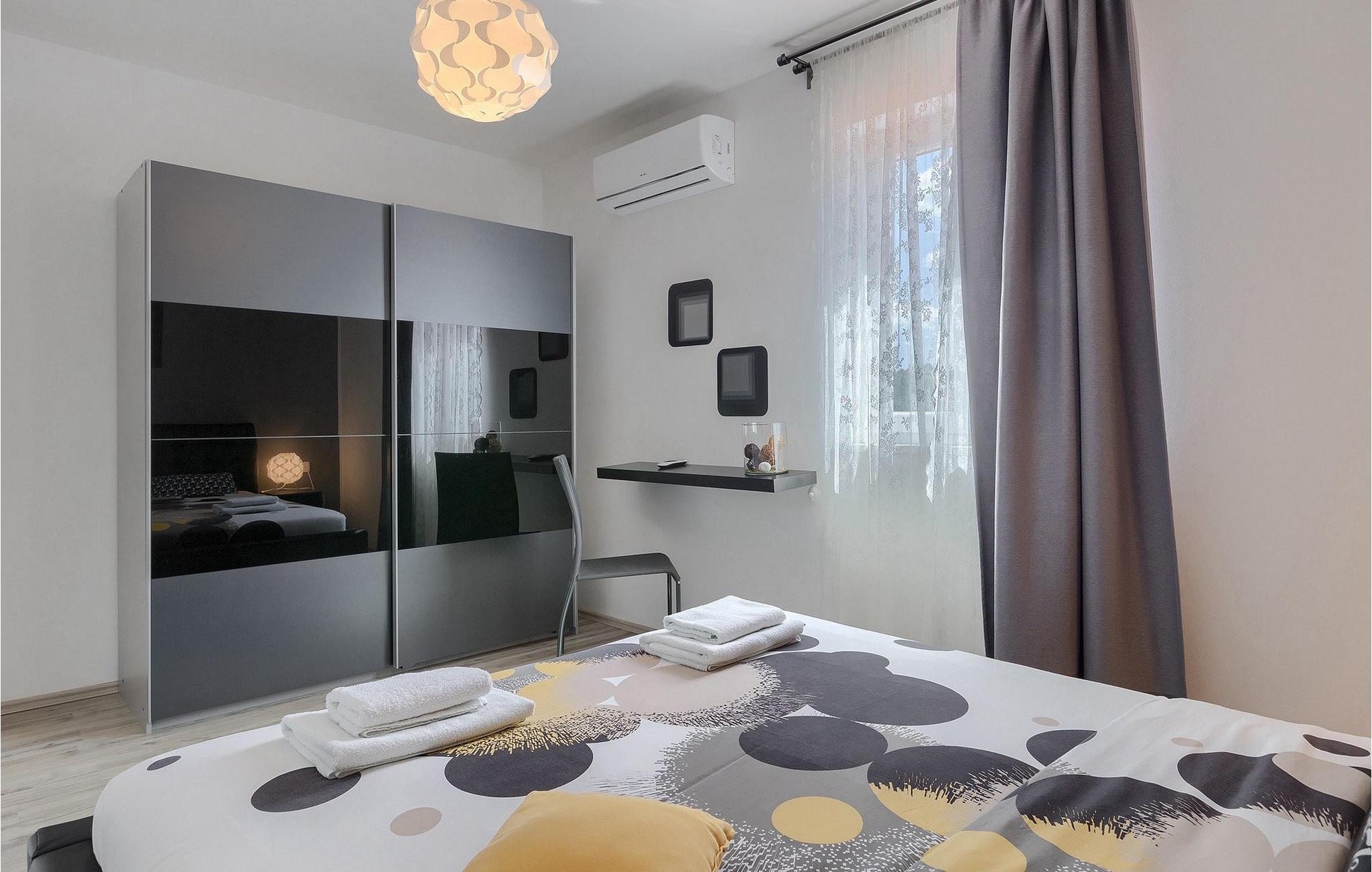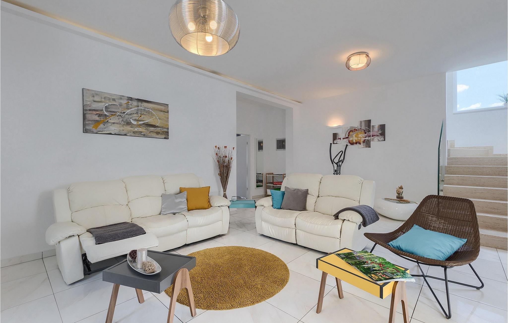 Auf der ersten Etage befinden sich die restlichen 4 Schlafzimmer und drei Badezimmer. Drei Schlafzimmer sind mit einem Doppelbett ausgestattet (in zwei von den Schlafzimmern kann stehtr ein Zustellbett zur Verfügung), während in einem Schlafzimmer 2 Einzelbetten stehen.