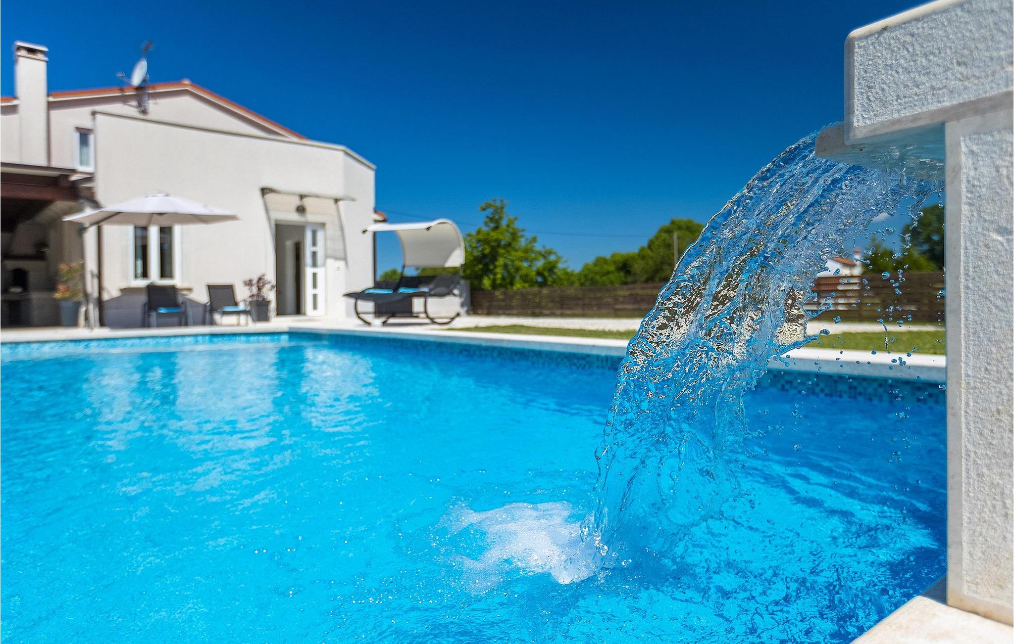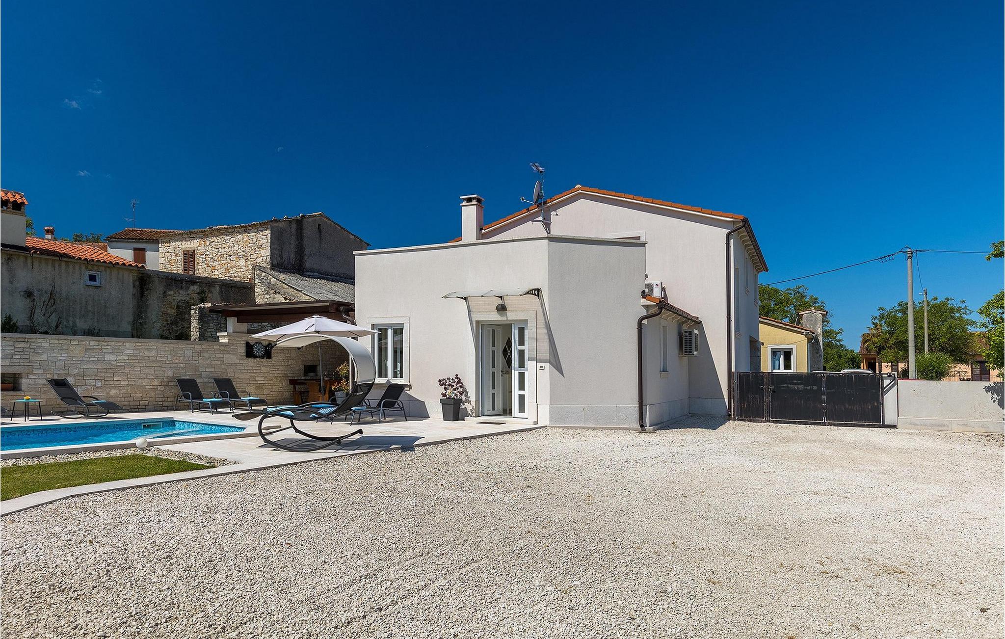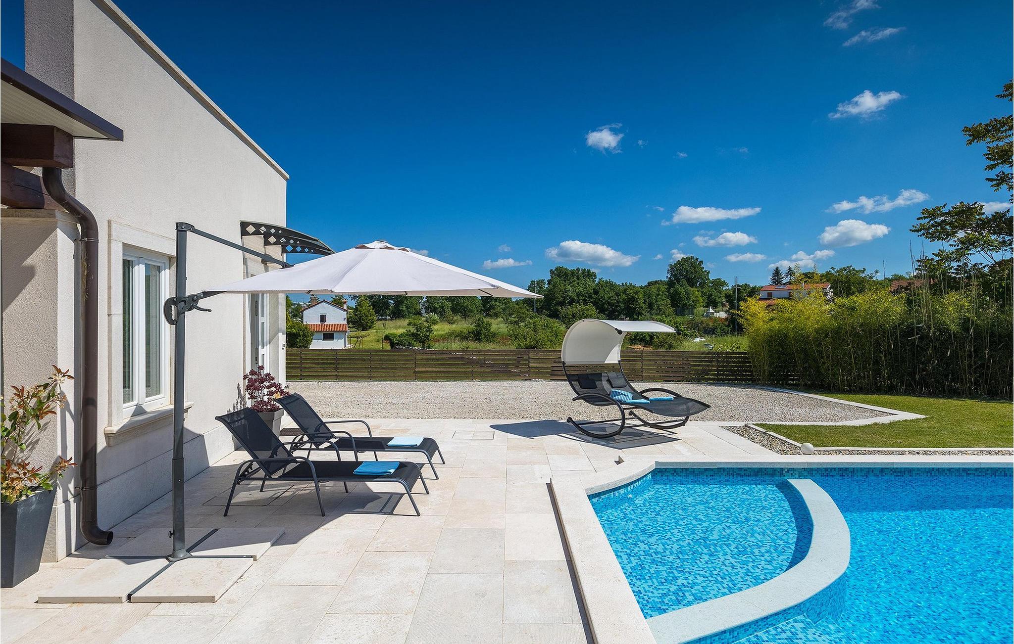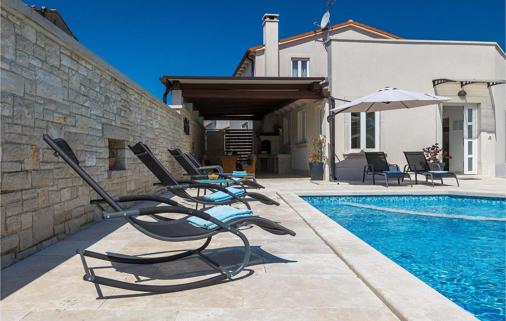 Die wunderschöne Villa Ema Istra befindet sich in Sveti Petar u Sumi in Zentralistrien. Die Villa bietet 6 Schlafzimmer, 5 Badezimmer und einen geräumigen Außenbereich mit privatem Pool, Tischtennis und Kinderspielplatz. Lassen Sie uns einen Rundgang machen.