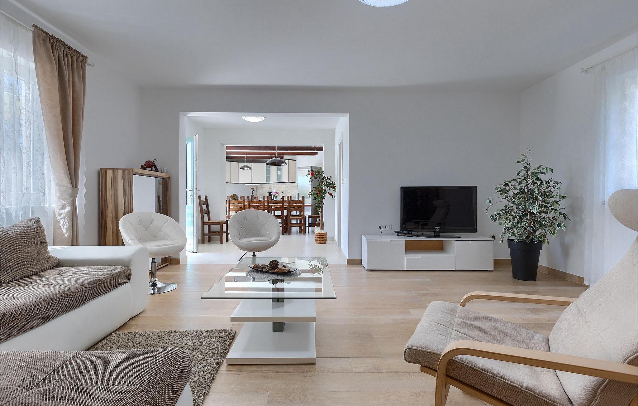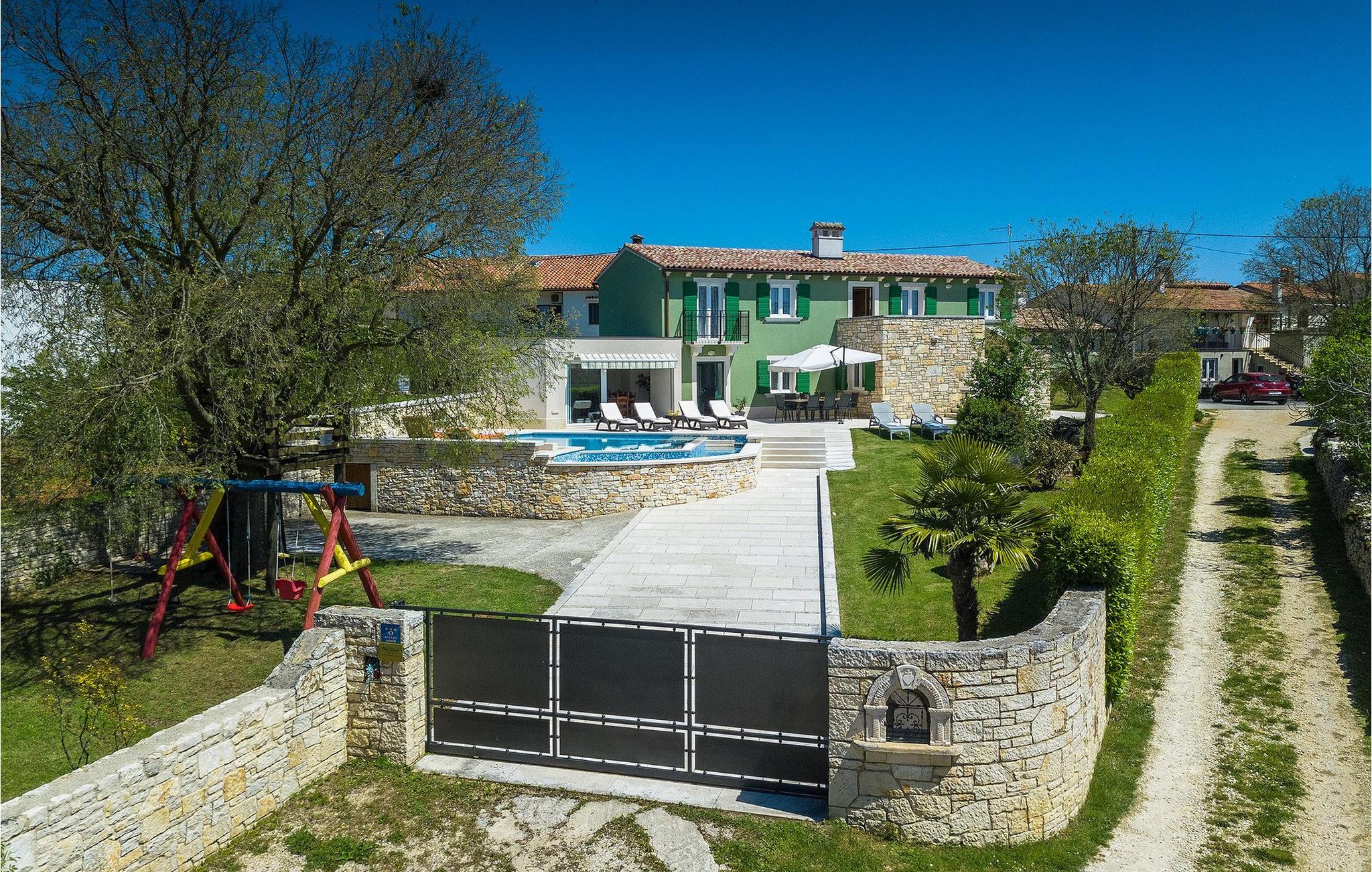 Die Villa Silvana wird Sie mit ihrer Größe, Unterkunftskapazität und dem mit besonderer Aufmerksamkeit gestalteten Garten in Erstaunen versetzen, unabhängig davon, ob Sie sich auf einen Urlaub mit Familie oder Freunden vorbereiten. Die Villa ist eine perfekte Kombination aus rustikalem und modernem Design, da sie Steindetails und Holzbalken an den Decken mit einem neutralen Interieur kombiniert. Da sich 2 Schlafzimmer und 2 Badezimmer direkt im Erdgeschoss befinden, ist der Urlaub in dieser Villa eine besonders praktische Lösung und ausgezeichnete Wahl für Familien mit Kindern. Aber auch Besuchergruppen in unterschiedlichen Zusammensetzungen werden den Urlaub in dieser Villa mit offenem Grundriss, der sich durch die Verbindung von Innen- und Außenraum hervorhebt, genießen. Im Erdgeschoss befinden sich nämlich auch das Wohnzimmer, Esszimmer und die Küche, wo Sie nur eine Glaswand von der geräumigen Außenterrasse mit Pool trennt. Erholen Sie sich in den restlichen 3 Schlafzimmern und 2 Badezimmern im Obergeschoss, die mit ihrem neutralen und hellen Design zum Entspannen einladen. Kühlen Sie sich im Außenbereich im interessant gestalteten Swimmingpool auf zwei Ebenen ab, sonnen Sie sich auf den Liegestühlen oder genießen Sie ein erfrischendes Getränk im Schatten unter einem Baum. Für die Jüngsten gibt es einen Kinderspielplatz und eine besondere Überraschung in Form eines Baumhauses. Am Ende des Tages bietet Ihnen der einzigartige Garten dieser Villa die Möglichkeit, das Abendessen am Esstisch im Freien zu genießen.Villa Silvana befindet sich in der kleinen istrischen Stadt namens Sveti Petar u Sumi in Zentralistrien. Hier ist es ruhig und entspannend. Jedoch sind die lebhaften Touristenzentren von Porec und Rovinj, die Strände, sauberes Meer und zahlreiche Sehenswürdigkeiten nur eine kurze Autofahrt entfernt. Zentralistrien ist für eine Landschaft von kleinen, malerischen, mittelalterlichen Städten bekannt, die unwiderstehlich an Toskana oder Provence erinnern. Zudem bietet Zentralistrien ein reiches kulturelles Erbe.