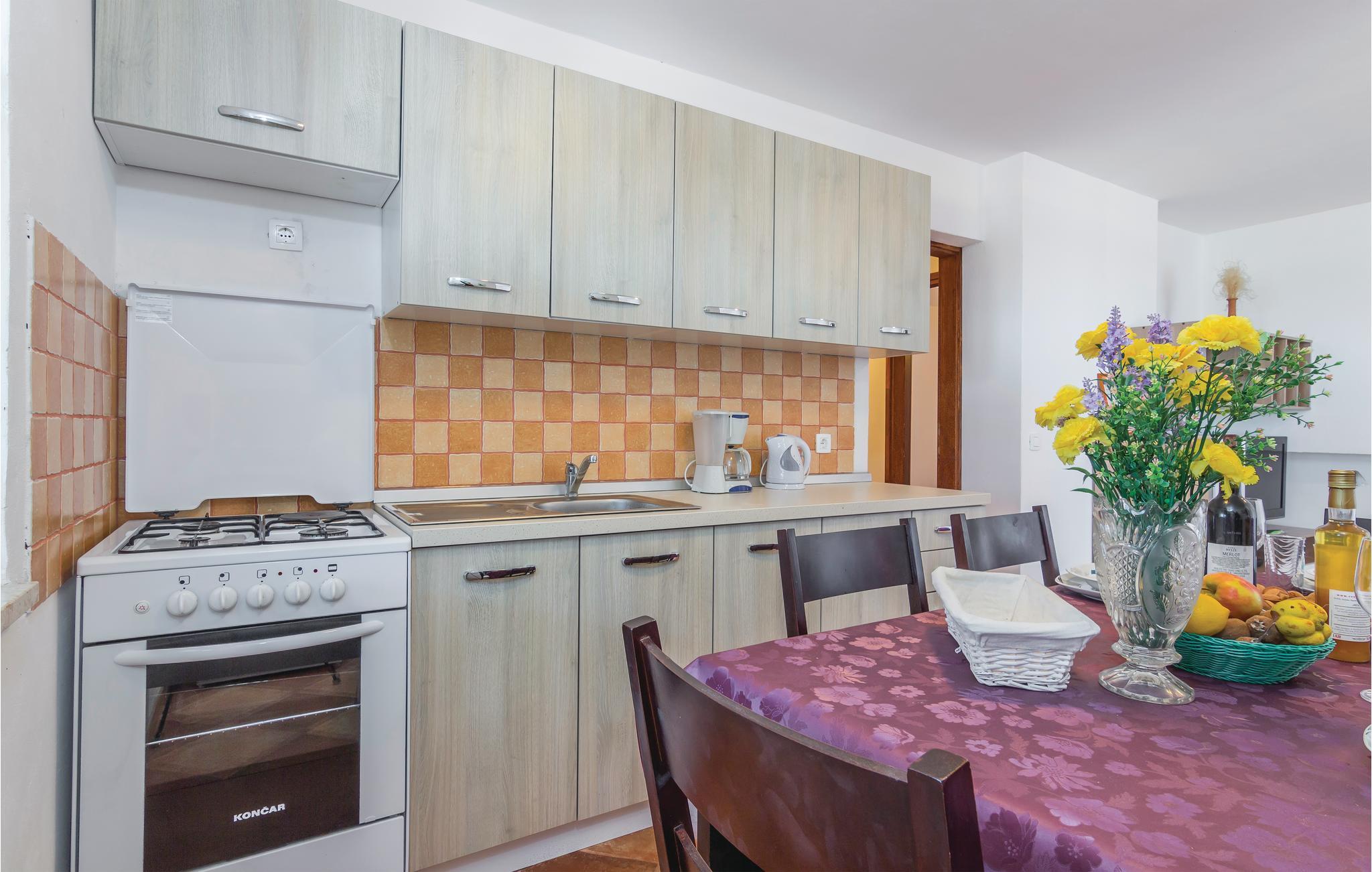 Die Ferienwohnung befindet sich im zweiten Stock. Sie hat einen separaten Eingang und bietet Ihnen vom Balkon aus einen herrlichen Ausblick auf die Landschaft. Nehmen Sie ein Bad in dem gemeinsamen Swimmingpool und genießen die Natur und die frische Luft. Unternehmen Sie Radtouren auf den dafür vorgesehenen Radstrecken und Wandertouren durch die schöne Natur. Besuchen Sie das alte Schloss „Kastel“ in Pazin, das Museum und die Paziner Grotte „Pazinska jama“. Über die Schlucht führt im Sommer eine Zip-Line.