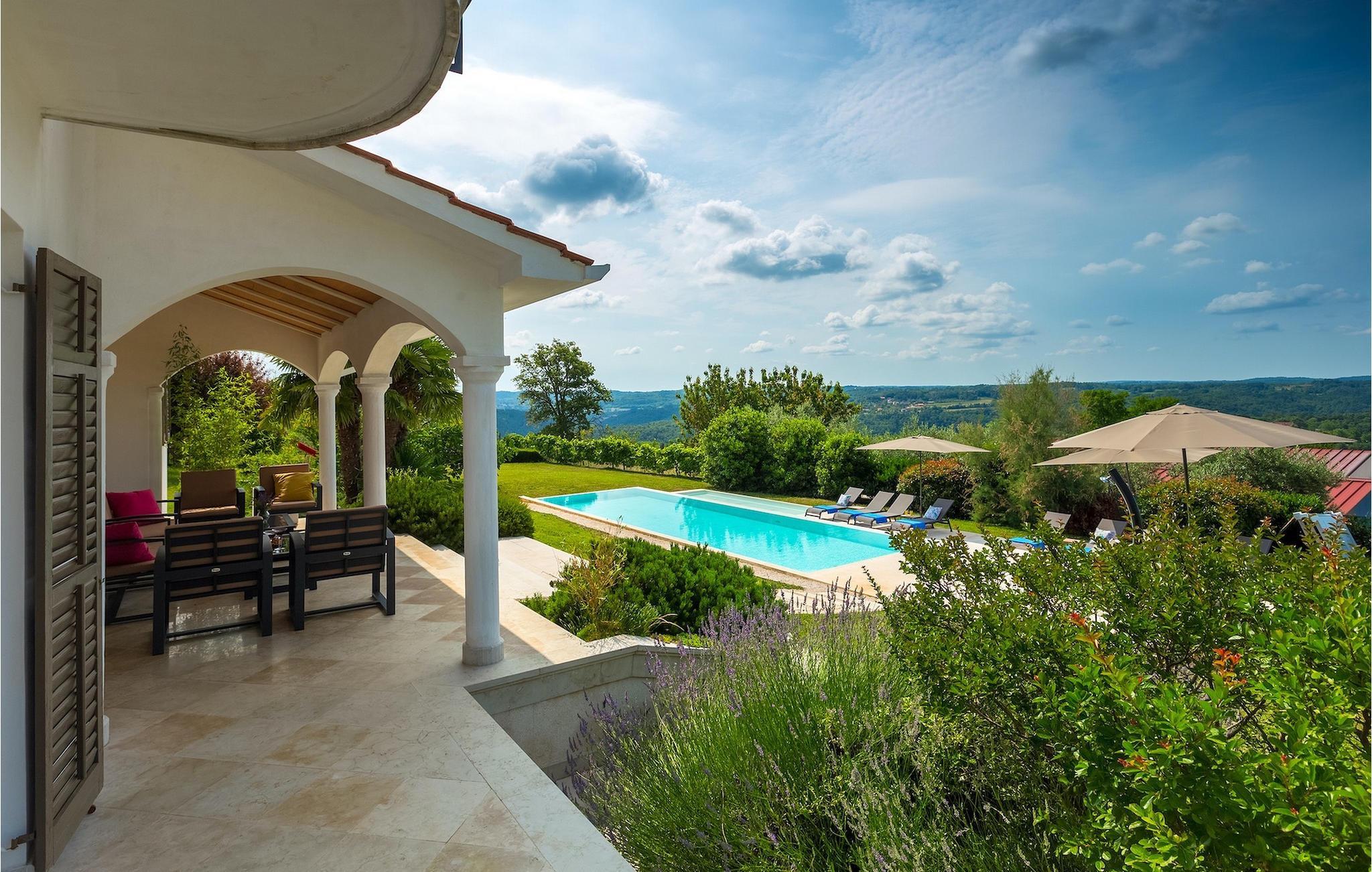 Tauchen Sie ein in ein grünes Paradies des entzückenden, großen mediterranem Garten in der wunderbaren Villa Naturavita die einen ruhigen und erholsamen Urlaub für bis zu 12 Personen bietet. Lassen Sie sich verwöhnen von dieser schönen Villa gelegen in der ruhigen Landschaft im istrischen Hinterland mit Blick auf die Hügel im Hintergrund, während Sie sich im großen privatem Pool (54 m2) entspannen. Im Erdgeschoss befindet sich das helle und angenehme Wohnzimmer mit Küche und Esszimmer verbunden im offenen Konzept. Hier können Sie gemeinsam Ihre Zeit verbringen und den Blick auf den großen Garten und Pool genießen. Sie finden hier auch 3 Schlafzimmer und 2 Badezimmer und auf der oberen Etage wird die Galerie fortgesetzt in ein weiteres, kleines Wohnzimmer und 2 Schlafzimmer mit privaten Badezimmern. In diesem zweiten Wohnzimmer befindet sich das Sofabett. Von den Schlafzimmern im ersten Stock haben Sie einen magischen Blick auf den Garten und die grüne Umgebung. Falls Sie mit Kindern reisen, werden diese auch viel Freude am Urlaub finden, denn der Garten bietet einen kleinen Spielplatz an und einen Pools (20 Quadratmeter) für Kinder. Für mehr Spaß bietet Villa Naturavita auch verschiedene Sportaktivitäten an (Volleyball, Federball, Basketball, Fußball…) aber auch Tischtennis, Darts und weiteres im geräumigen Spielraum neben den Essbereich im Offenen. Diese Villa hat alles, was Sie für einen entspannten aber amüsanten Urlaub brauchen!Pazin ist eine kleine, historisch reiche Stadt im Herzen des bezaubernden istrischen Hinterland, die viel anzubieten hat und nur etwa 30 km von anderen touristischen Städten entfernt ist. Jahrhunderte lang war Pazin die stärkste Habsburger Festung in diesem Gebiet und das Hauptquartier des ehemaligen Fürsten. Diese mittelalterliche Burg (“Kastel”) können Sie auch heute besuchen, denn sie ist gut erhalten. Heute befindet sich hier das Ethnografische Museum Istriens und das Museum der Stadt Pazin. Besichtigen Sie auch Kirchen in dieser Gegend, denn sogar sechs sind durch das kulturelle Erbe Kroatiens geschützt. Eine von ihnen, die Kirche der hl. Maria in Beram (zwischen Pazin und Porec), weltbekannt für die istrische Freske des Todestanzes aus dem Jahr 1474. Das istrische Hinterland bietet aber auch viel mehr als nur Kultur an. Falls Sie ein Naturliebhaber sind, sind Sie hier richtig. Genießen Sie Wandern, Zipline oder machen Sie eine Gastro-Radtour, um istrische Spezialitäten auszuprobieren. Besuchen Sie auch unbedingt den Pazin Bach, wo Sie kleine Wasserfälle, Teiche und sogar Höhlen bewundern können. In dieser puren Natur können Sie auch im Sommer baden. Möchten Sie Istrien besser kennenlernen, besuchen Sie auch Porec, Rovinj oder Pula.