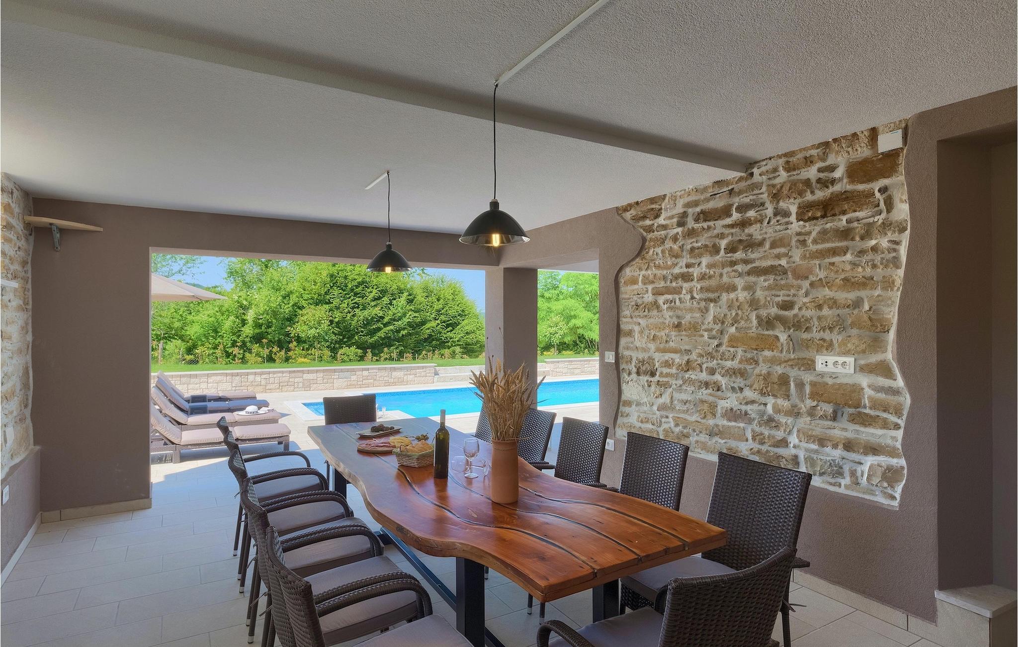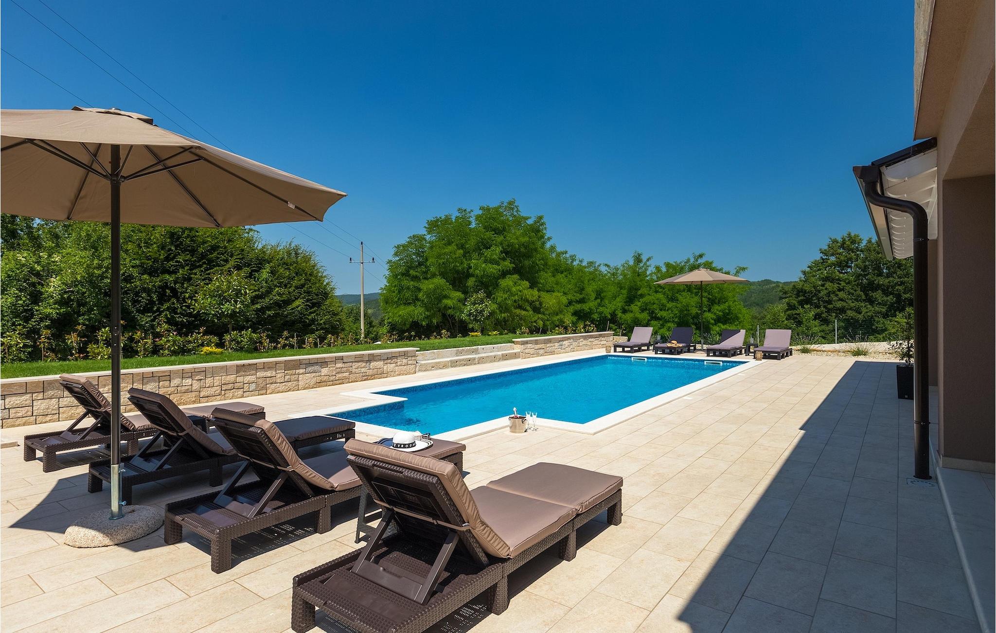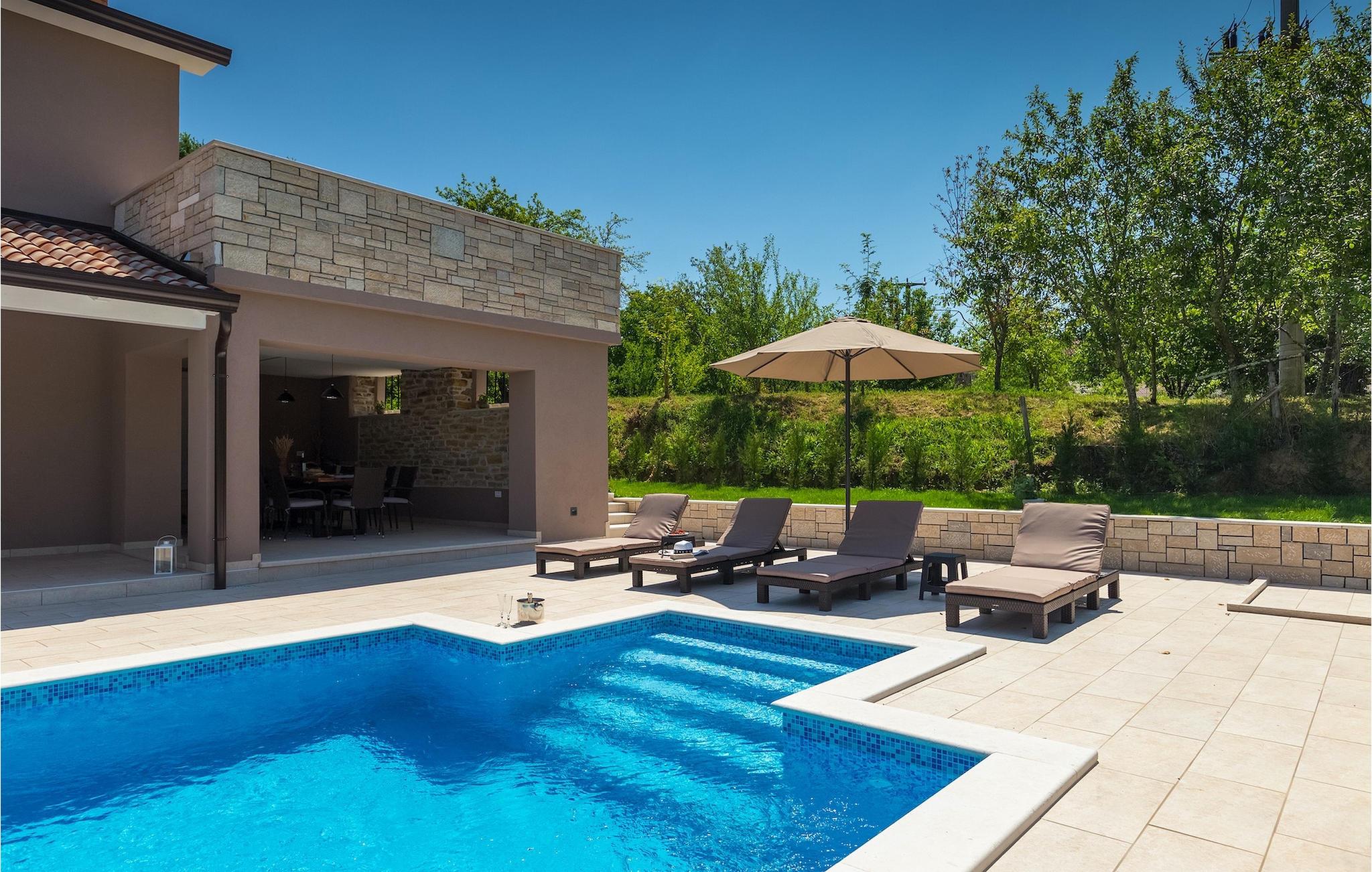 Suchen Sie eine geräumige, moderne Villa in einem ruhigen Gebiet, umgeben von der Natur? Das alles mit einem privaten Pool und zahlreichen Aktivitäten für Spaß (ideal für den Familienurlaub), Villa Zamari ist die perfekte Auswahl für Ihren Urlaub! Diese wunderschöne Villa bietet Unterkunft für bis zu 12 Gäste in 5 eleganten Schlafzimmern mit viel Sorgfalt eingerichtet. Wenn Sie in die Villa eintreten finden Sie im Erdgeschoss den direkten Zugang zum verbundenen Bereich mit dem schicken Wohnzimmer, Esszimmer und komplett ausgestatteter Küche. Hier finden Sie auch ein Schlafzimmer mit separatem Badezimmer. Alle Räume haben einen schönen blick zum großen Pool und der Umgebung mit modischen Gartenmöbeln und zahlreichen Sonnenliegen. Die komfortablen Zimmer verteilen sich über die erste Etage und bieten jeweils ein privates, schönes Badezimmer. Zwei der Zimmer haben Zugang zu zwei recht großen Balkonen, auf denen Sie sich entspannen und den Blick auf die grüne Hügellandschaft dieses Teils von Istrien genießen können. Wo Sie sich sicherlich verwöhnen lassen werden ist der entspannte Wellnessbereich mit der Sauna. Im Erdgeschoss befindet sich auch noch viel Platz in dem Spielzimmer mit einem Billardtisch und Darts, perfekt für ein amüsantes Zusammenkommen. Sicherlich verbringen Sie auch viel Zeit um den privaten Pool oder im offenen Esszimmer mit der kleinen Küche und Kamin. Hier finden Sie viel Platz auf der Veranda, für die ganze Familie, während die Kinder im Garten auf dem Trampolin springen. Villa Zamari erwartet Sie für den unterhaltsamen und entspannten Urlaub im Hinterland Istriens!Die schöne Villa Zamari befindet sich im kleinen Dorf umgeben von Natur und nur ein paar Minuten entfernt von Pazin. Pazin ist eine kleine, historisch reiche, die viel anzubieten hat und nur etwa 30 km von anderen touristischen Städten entfernt ist. Jahrhunderte lang war Pazin die stärkste Habsburger Festung in diesem Gebiet und das Hauptquartier des ehemaligen Fürsten. Diese mittelalterliche Burg (“Kastel”) können Sie auch heute besuchen, denn sie ist gut erhalten. Heute befindet sich hier das Ethnographische Museum Istriens und das Museum der Stadt Pazin. Besichtigen Sie auch Kirchen in dieser Gegend, denn sogar sechs sind durch das kulturelle Erbe Kroatiens geschützt. Eine von ihnen, die Kirche der hl. Maria in Beram (zwischen Pazin und Porec), weltbekannt für die istrische Freske des Todestanzes aus dem Jahr 1474. Das istrische Hinterland bietet aber auch viel mehr als nur Kultur an. Falls Sie ein Naturliebhaber sind, sind Sie hier richtig. Genießen Sie Wandern, Zipline oder machen Sie eine Gastro-Radtour, um istrische Spezialitäten auszuprobieren. Besuchen Sie auch unbedingt den Pazin Bach, wo Sie kleine Wasserfälle, Teiche und sogar Höhlen bewundern können. In dieser puren Natur können Sie auch im Sommer baden. Möchten Sie Istrien besser kennenlernen, besuchen Sie auch Porec, Rovinj oder Pula.