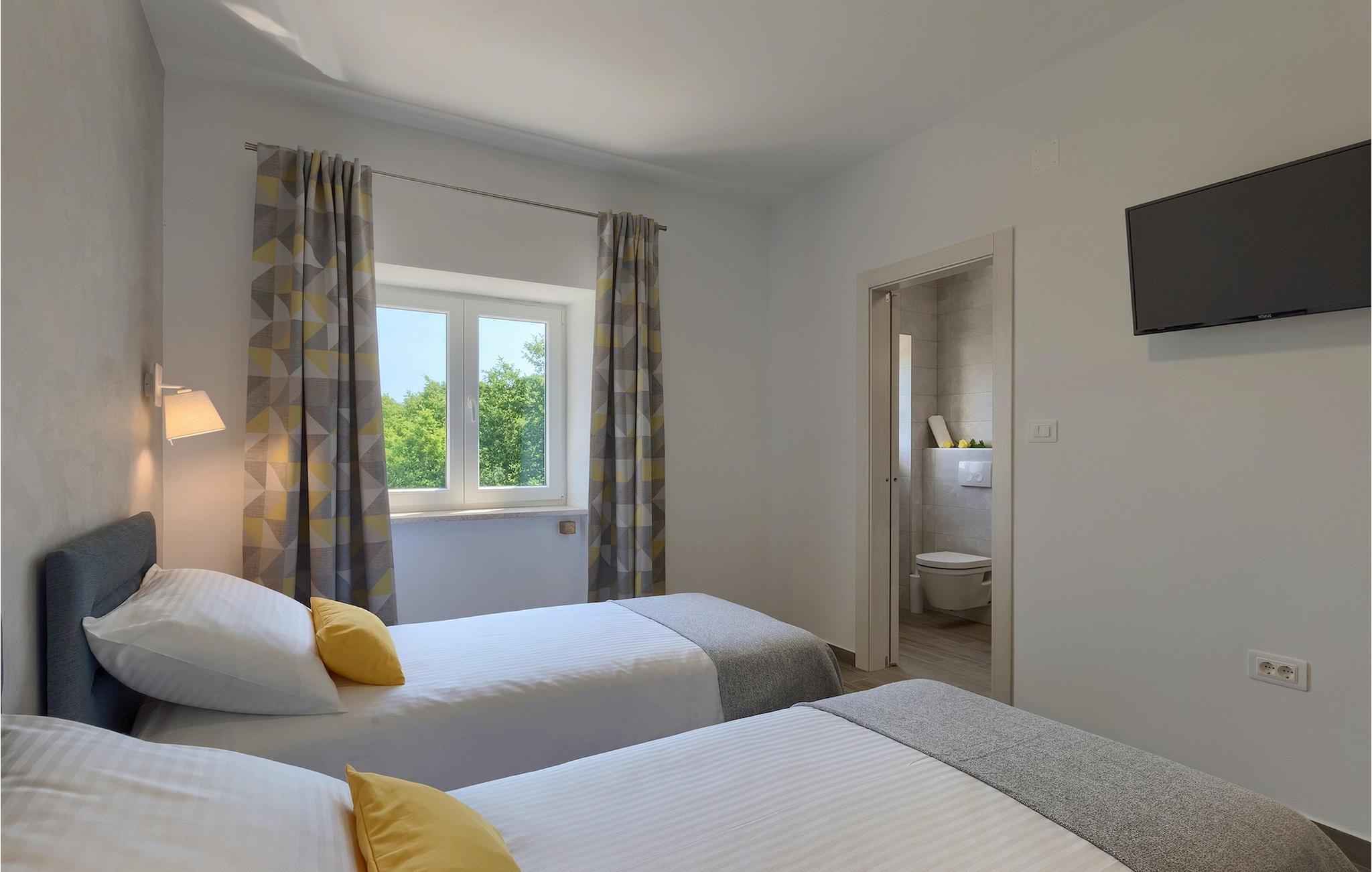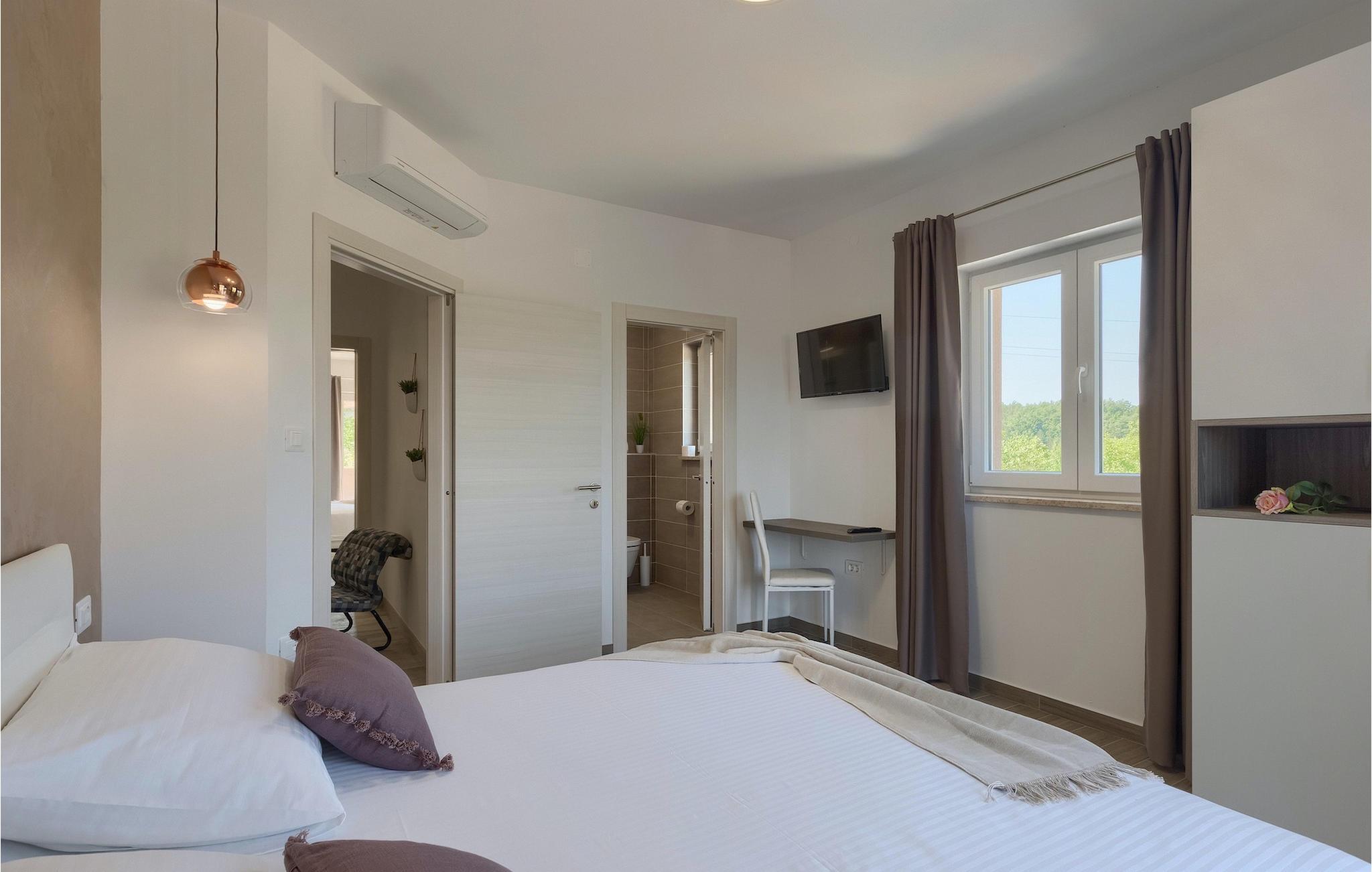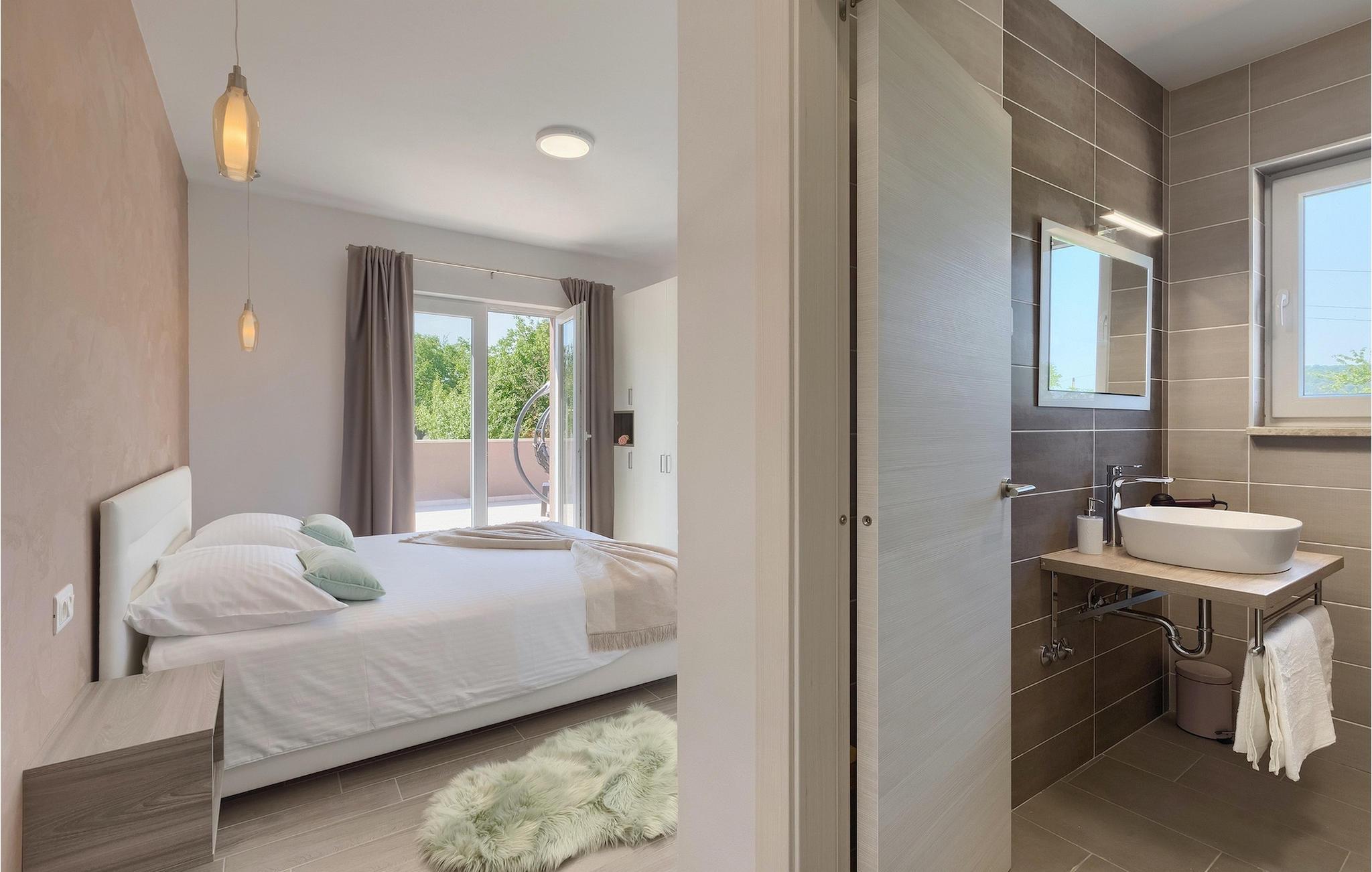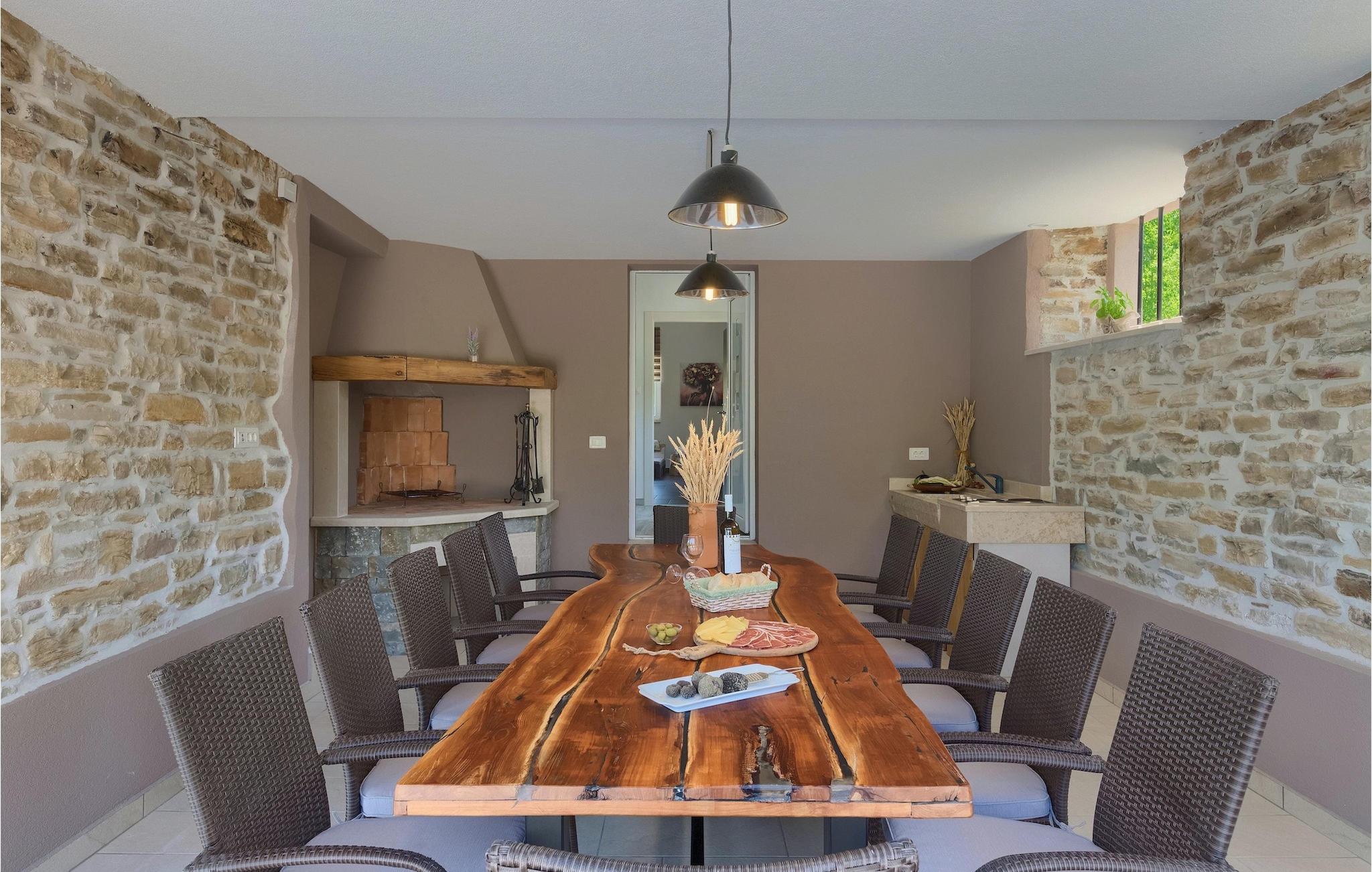 Suchen Sie eine geräumige, moderne Villa in einem ruhigen Gebiet, umgeben von der Natur? Das alles mit einem privaten Pool und zahlreichen Aktivitäten für Spaß (ideal für den Familienurlaub), Villa Zamari ist die perfekte Auswahl für Ihren Urlaub! Diese wunderschöne Villa bietet Unterkunft für bis zu 12 Gäste in 5 eleganten Schlafzimmern mit viel Sorgfalt eingerichtet. Wenn Sie in die Villa eintreten finden Sie im Erdgeschoss den direkten Zugang zum verbundenen Bereich mit dem schicken Wohnzimmer, Esszimmer und komplett ausgestatteter Küche. Hier finden Sie auch ein Schlafzimmer mit separatem Badezimmer. Alle Räume haben einen schönen blick zum großen Pool und der Umgebung mit modischen Gartenmöbeln und zahlreichen Sonnenliegen. Die komfortablen Zimmer verteilen sich über die erste Etage und bieten jeweils ein privates, schönes Badezimmer. Zwei der Zimmer haben Zugang zu zwei recht großen Balkonen, auf denen Sie sich entspannen und den Blick auf die grüne Hügellandschaft dieses Teils von Istrien genießen können. Wo Sie sich sicherlich verwöhnen lassen werden ist der entspannte Wellnessbereich mit der Sauna. Im Erdgeschoss befindet sich auch noch viel Platz in dem Spielzimmer mit einem Billardtisch und Darts, perfekt für ein amüsantes Zusammenkommen. Sicherlich verbringen Sie auch viel Zeit um den privaten Pool oder im offenen Esszimmer mit der kleinen Küche und Kamin. Hier finden Sie viel Platz auf der Veranda, für die ganze Familie, während die Kinder im Garten auf dem Trampolin springen. Villa Zamari erwartet Sie für den unterhaltsamen und entspannten Urlaub im Hinterland Istriens!Die schöne Villa Zamari befindet sich im kleinen Dorf umgeben von Natur und nur ein paar Minuten entfernt von Pazin. Pazin ist eine kleine, historisch reiche, die viel anzubieten hat und nur etwa 30 km von anderen touristischen Städten entfernt ist. Jahrhunderte lang war Pazin die stärkste Habsburger Festung in diesem Gebiet und das Hauptquartier des ehemaligen Fürsten. Diese mittelalterliche Burg (“Kastel”) können Sie auch heute besuchen, denn sie ist gut erhalten. Heute befindet sich hier das Ethnographische Museum Istriens und das Museum der Stadt Pazin. Besichtigen Sie auch Kirchen in dieser Gegend, denn sogar sechs sind durch das kulturelle Erbe Kroatiens geschützt. Eine von ihnen, die Kirche der hl. Maria in Beram (zwischen Pazin und Porec), weltbekannt für die istrische Freske des Todestanzes aus dem Jahr 1474. Das istrische Hinterland bietet aber auch viel mehr als nur Kultur an. Falls Sie ein Naturliebhaber sind, sind Sie hier richtig. Genießen Sie Wandern, Zipline oder machen Sie eine Gastro-Radtour, um istrische Spezialitäten auszuprobieren. Besuchen Sie auch unbedingt den Pazin Bach, wo Sie kleine Wasserfälle, Teiche und sogar Höhlen bewundern können. In dieser puren Natur können Sie auch im Sommer baden. Möchten Sie Istrien besser kennenlernen, besuchen Sie auch Porec, Rovinj oder Pula.