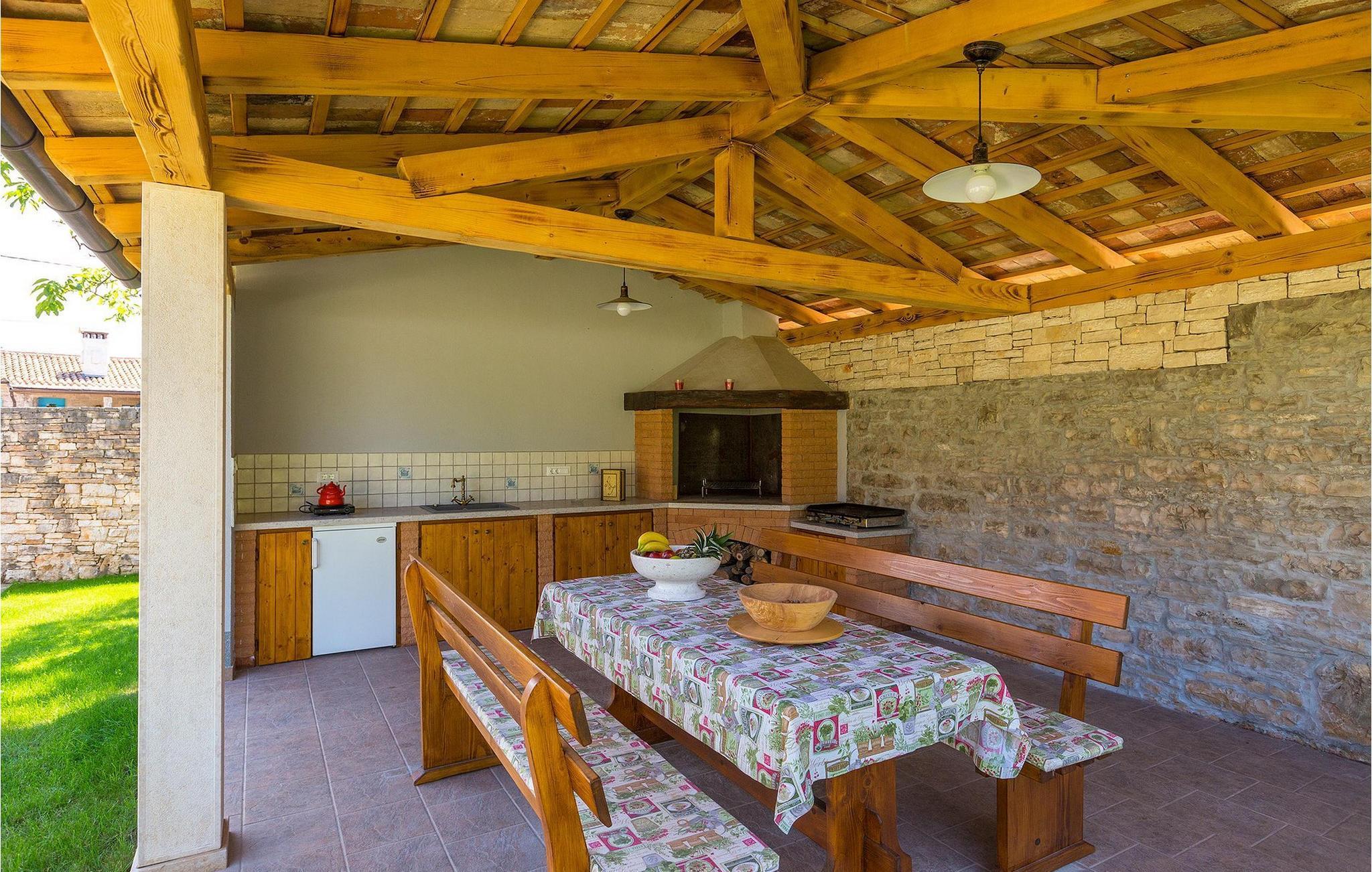 Wunderschöne Villa Sany, gelegen im Herzen Istriens, ist die ideale Wahl für diejenigen, die von einem entspannenden Urlaub träumen. Rustikale Steinvilla hat einen privaten, großen und sorgfältig gepflegten Garten, wo die jüngsten Gäste rumlaufen können, währen der Rest der Gruppe die Sonne am Pool genießt. Neben dem Pool mit Hydromassage befindet sich eine Außenküche mit Grill, wo Sie lokale Spezialitäten zubereiten und im Freien essen können, während Sie vom Duft des Mittelmeers umgeben sind. Das Innere der Villa ist wurde mit Liebe eingerichtet. Alle Räume befinden sich auf dem ersten Stock. Das Erdgeschoß wird nicht vermietet. Zur Verfügung stehen Ihnen 3 Schlafzimmer, das gemütliche Wohnzimmer und die komplett ausgestattete Küche mit Essbereich. Mit 3 Schlafzimmern, die Villa kann bis zu 6 Personen beherbergen. Eines der Schlafzimmer hat sogar eine eigene Terrasse mit Blick auf den Pool-Bereich und den Garten. Die Villa ist klimatisiert, hat WiFi und 3 Parkplätze.Atemberaubende Villa Sany befindet sich inmitten von Zentralisten und ist von wunderschöner, friedlicher Natur umgeben. Nur eine kurze Fahrt von der Villa entfernt finden Sie das Schloss von Pazin und die Höhle von Pazin, wo Sie die bekannteste Zipline - Fahrt in Kroatien ausprobieren können. In der Nähe gibt es auch einen Reitklub und einen Kinderspielplatz. Von Pazin sind die Küstenstädte in Istrien leicht erreichbar - Poren und Rovinj an der Westküste und Pula im Süden der Halbinsel. In Zentralistrien können Sie die zahlreichen kleinen, mittelalterlichen Städte besuchen und traditionelle Spezialitäten ausprobieren, wobei Sie gleichzeitig einen schönen Blick auf die Umgebung genießen, die unwiderstehlich an Toskana oder Provence erinnert. Istrien ist für seine Küche bekannt - berühmter istrischer Schinken, Schweinefilet und Wurst haben einen speziellen Geschmack und Duft, während Fisch und Meeresfrüchte aus dem idyllischen Archipel stammen. Zentralisten ist ideal für Radfahren und Wandern.