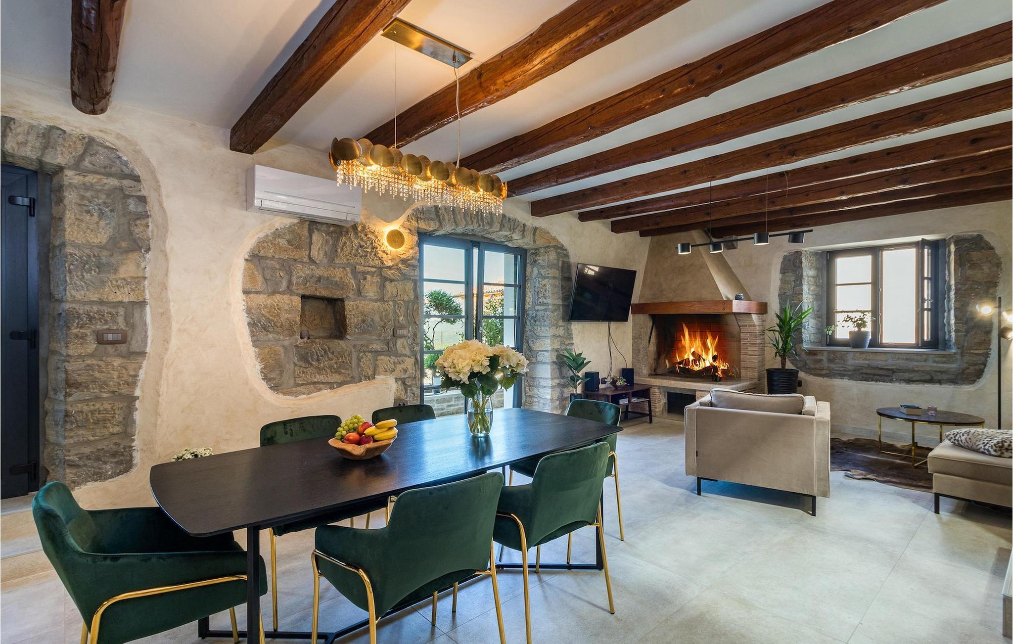 Träumen Sie von einer wunderschönen Villa in einem idyllischen, kleinen Dorf in Zentralistrien, umgeben von sanften Hügeln und viel Grün? Die Villa Grazia wird Ihre Träume wahr werden lassen. Dieses einzigartige Ferienhaus wurde früher als landwirtschaftliches Objekt genutzt und im Jahre 2021 mit viel Sorgfalt und Liebe zum Detail renoviert. Es kann bis zu sechs Personen beherbergen und verfügt über drei Schlafzimmer mit eigenen Badezimmern, ein Wohnzimmer und eine Küche mit Essbereich. Die drei stilvoll eingerichteten Schlafzimmer befinden sich im ersten Stockwerk, während der offen gestaltete Wohn-, Ess- und Kochbereich im Erdgeschoss liegt. Schon auf den ersten Blick fällt auf, dass bei der Einrichtung wirklich auf jedes Detail geachtet wurde. Die modernen, eleganten Möbel und die vielen antiken Elemente aus Holz und Stein sind perfekt aufeinander abgestimmt und verleihen diesem Ferienhaus eine wirklich einzigartige Atmosphäre.