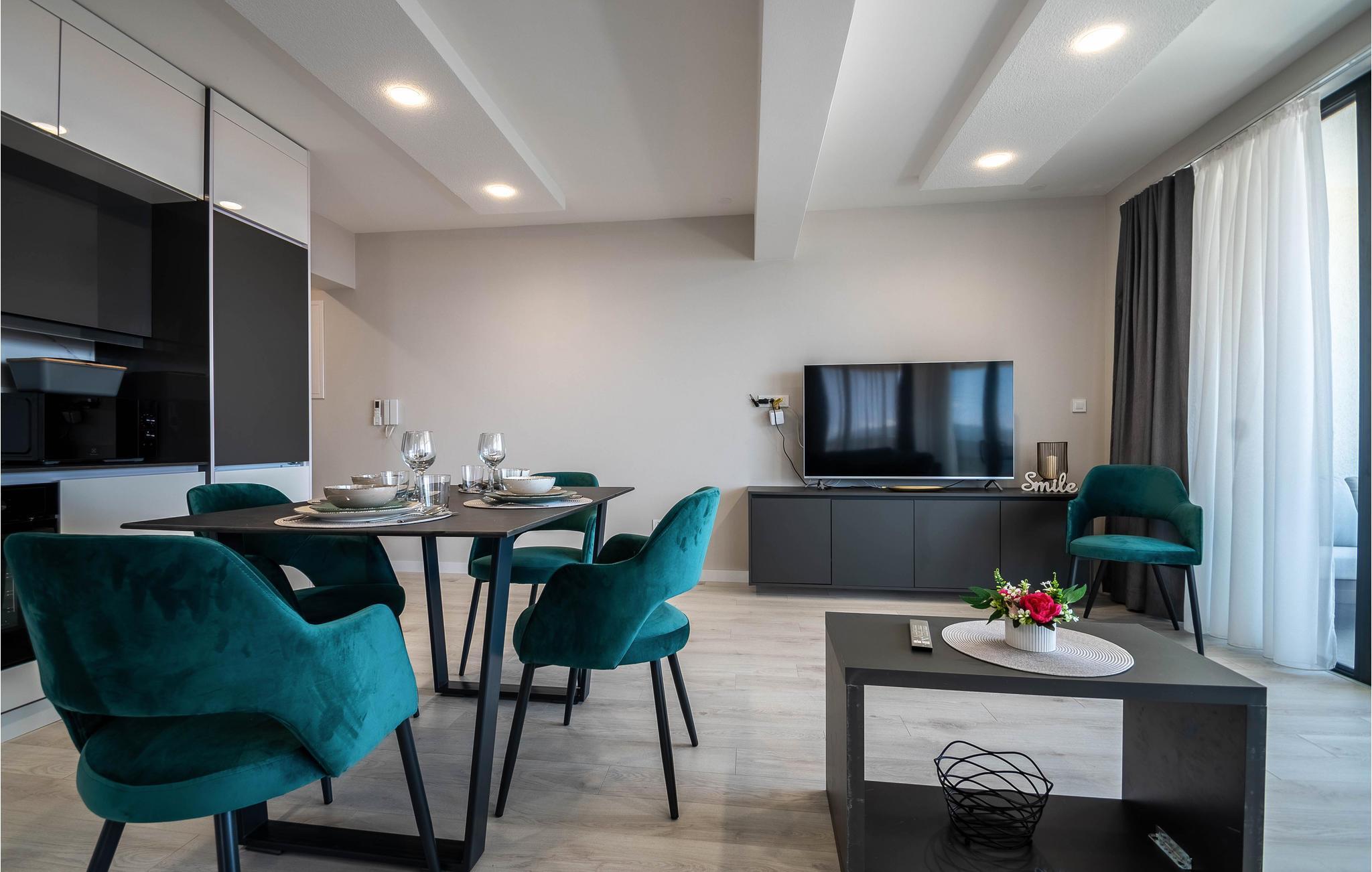 Willkommen in dieser komfortablen Ferienwohnung, die Ihnen den idealen Rahmen für einen wunderbaren Urlaub mit Strandvergnügen und spannenden Ausflügen bietet. Die hellen Räume sind modern eingerichtet und bieten alles, was Sie für einen angenehmen Aufenthalt benötigen. Genießen Sie gemeinsamen Mahlzeiten mit wunderbarer Aussicht durch große Panoramafenster und freuen Sie sich nach einem erlebnisreichen Tag auf gemütliche Abende auf dem großzügigen Sofa.