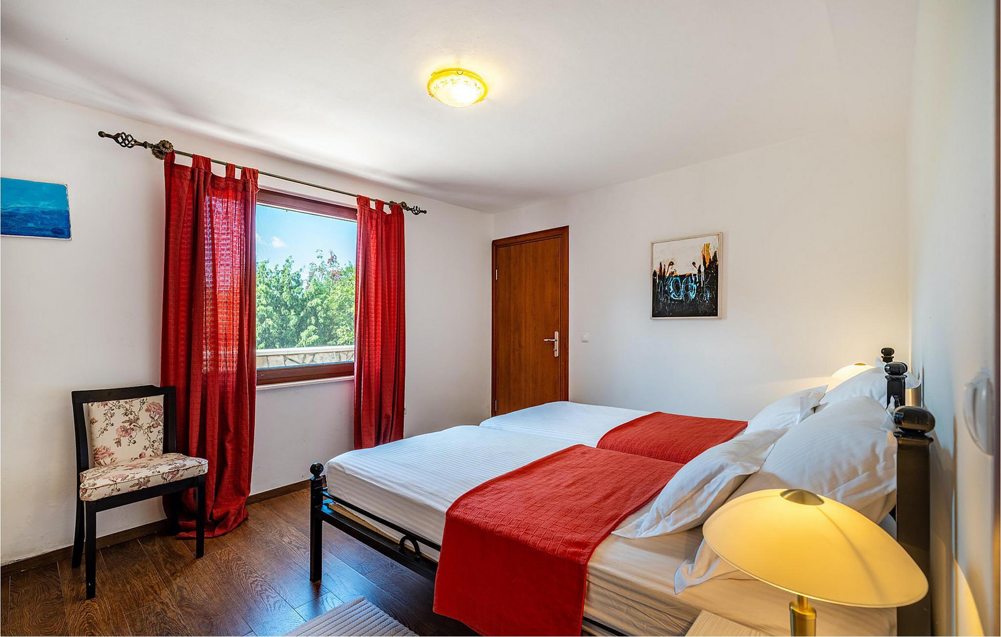 Die geräumige Villa Pax Maris bietet Platz für insgesamt 8 Gäste in vier Schlafzimmern. Die Villa selbst ist in ein Erdgeschoss mit Wohnzimmer, Esszimmer, Küche, 3 Schlafzimmern, Bad und WC und im ersten Stock mit einem Schlafzimmer, Bad und Terrasse unterteilt. Zwei Schlafzimmer sind Doppelzimmer und zwei sind Einzelzimmer.