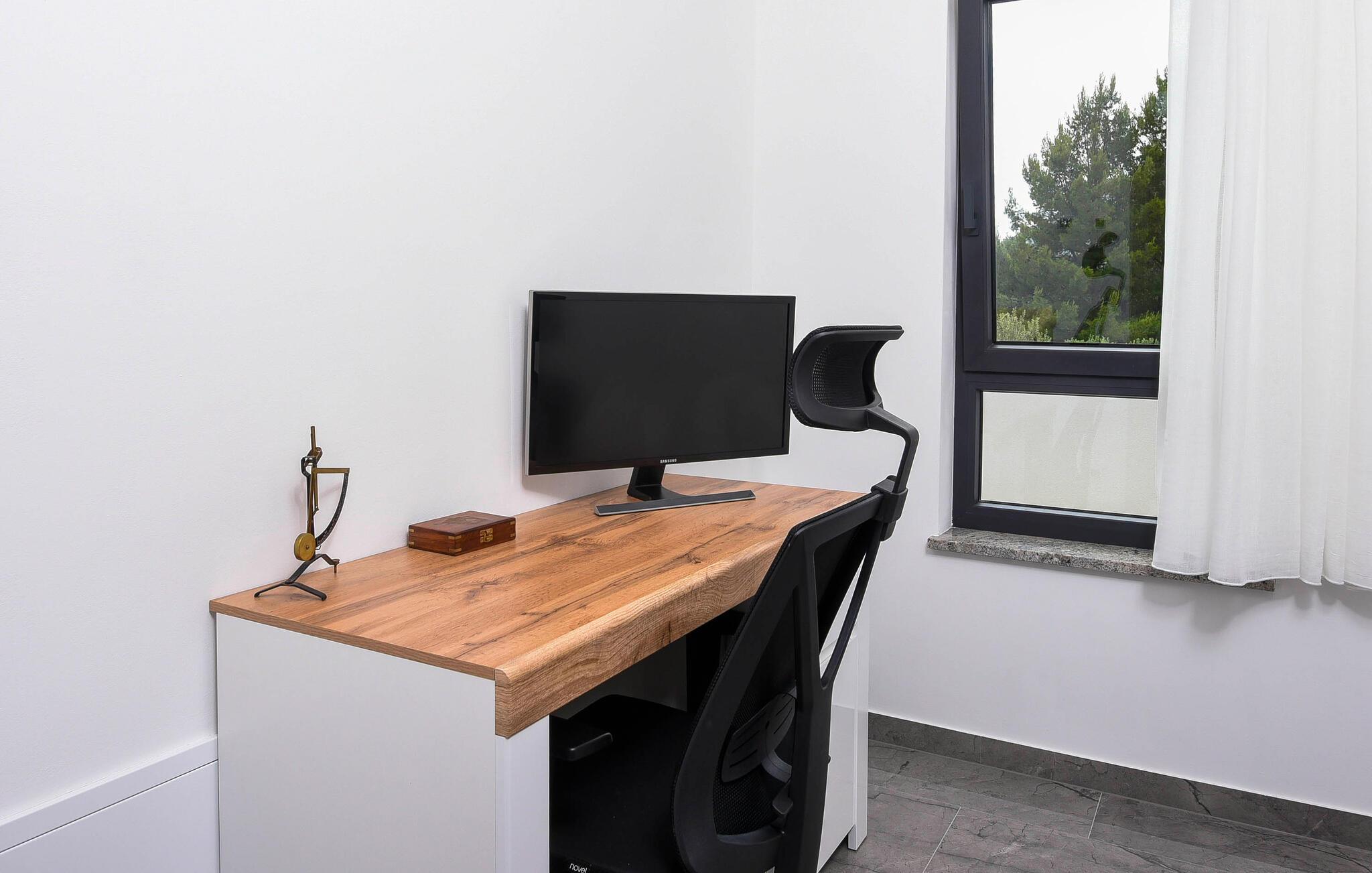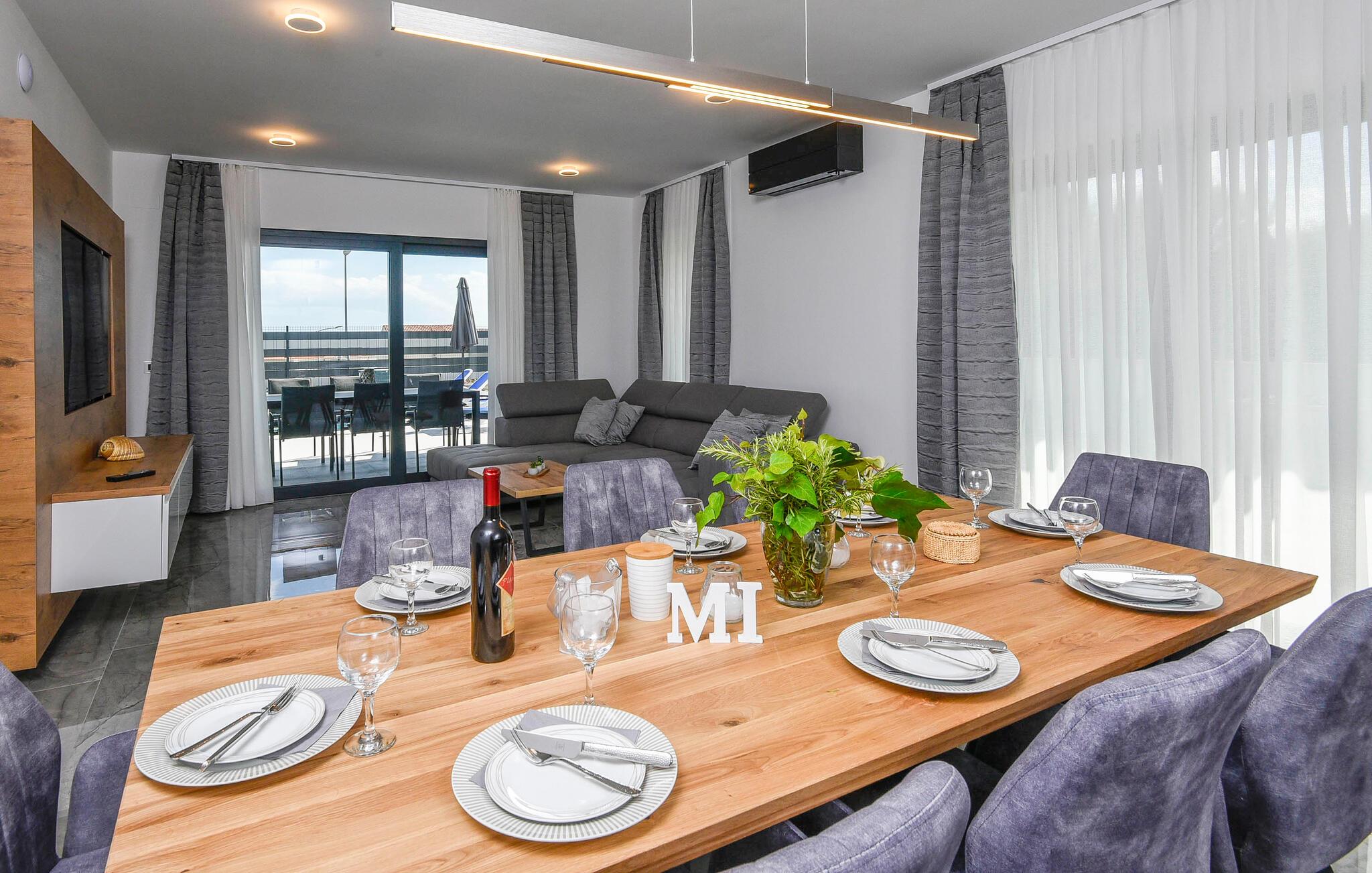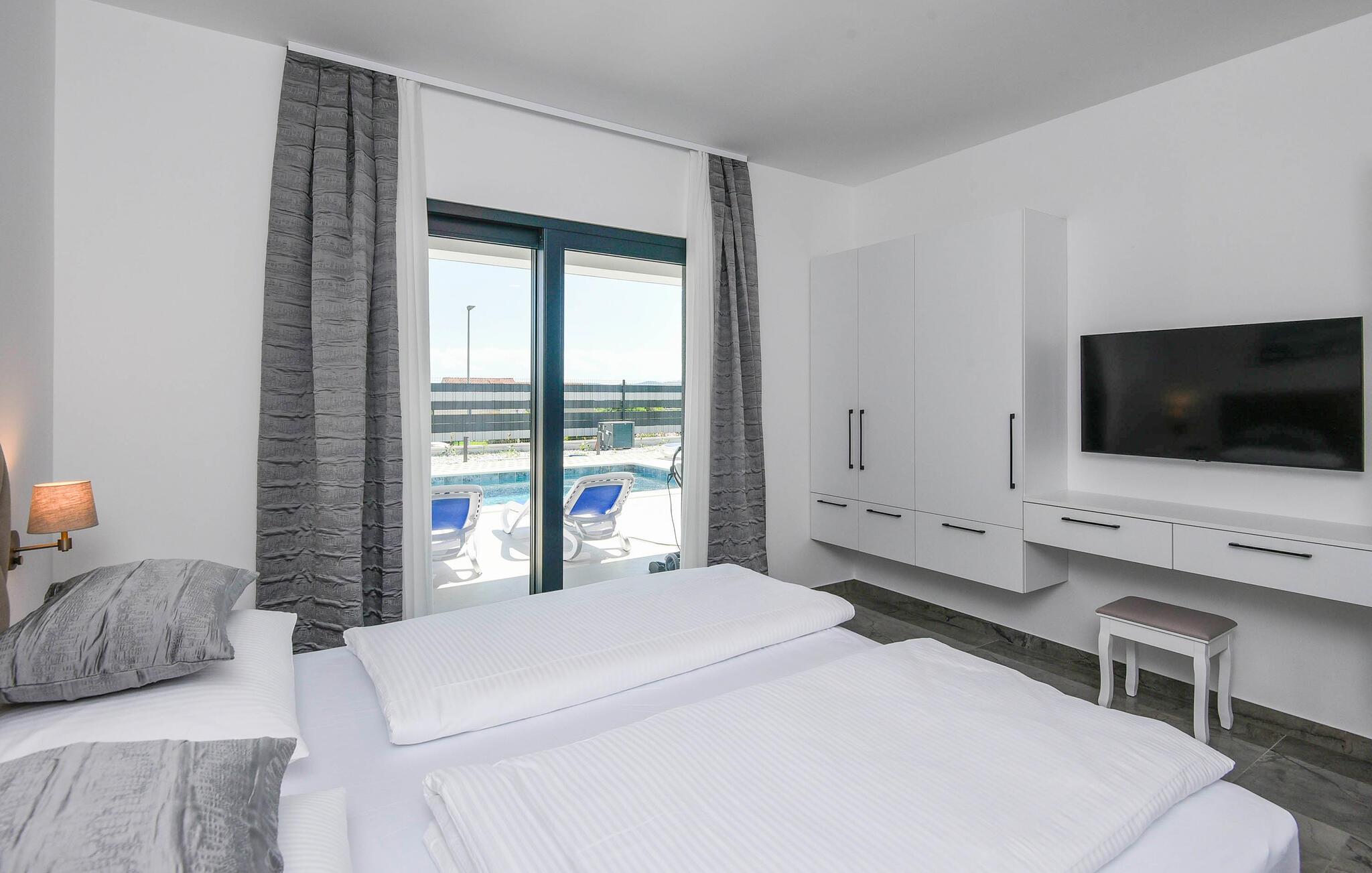 Starten Sie gut erholt in den Tag und lassen Sie sich von der modernen Einrichtung der gut ausgestatteten Küche inspirieren, um ein reichhaltiges Frühstück für die ganze Familie zuzubereiten. Ob Sie es drinnen am eleganten Esstisch oder draußen auf der überdachten Terrasse mit Grill genießen, bleibt Ihnen überlassen. Am Nachmittag laden die Sonnenliegen zu einem erfrischenden Getränk ein. Oder genießen Sie auf dem Balkon den atemberaubenden Blick auf das tiefblaue Meer in der Ferne. Hier finden Sie auch einen wohltuenden Whirlpool. Eine Erfrischung bietet der private Pool, wo Sie nach Herzenslust schwimmen können. Der Fitnessraum sorgt dafür, dass Sie auch im Urlaub in Form bleiben, und in der hauseigenen Sauna kommen Sie voll und ganz zur Ruhe.