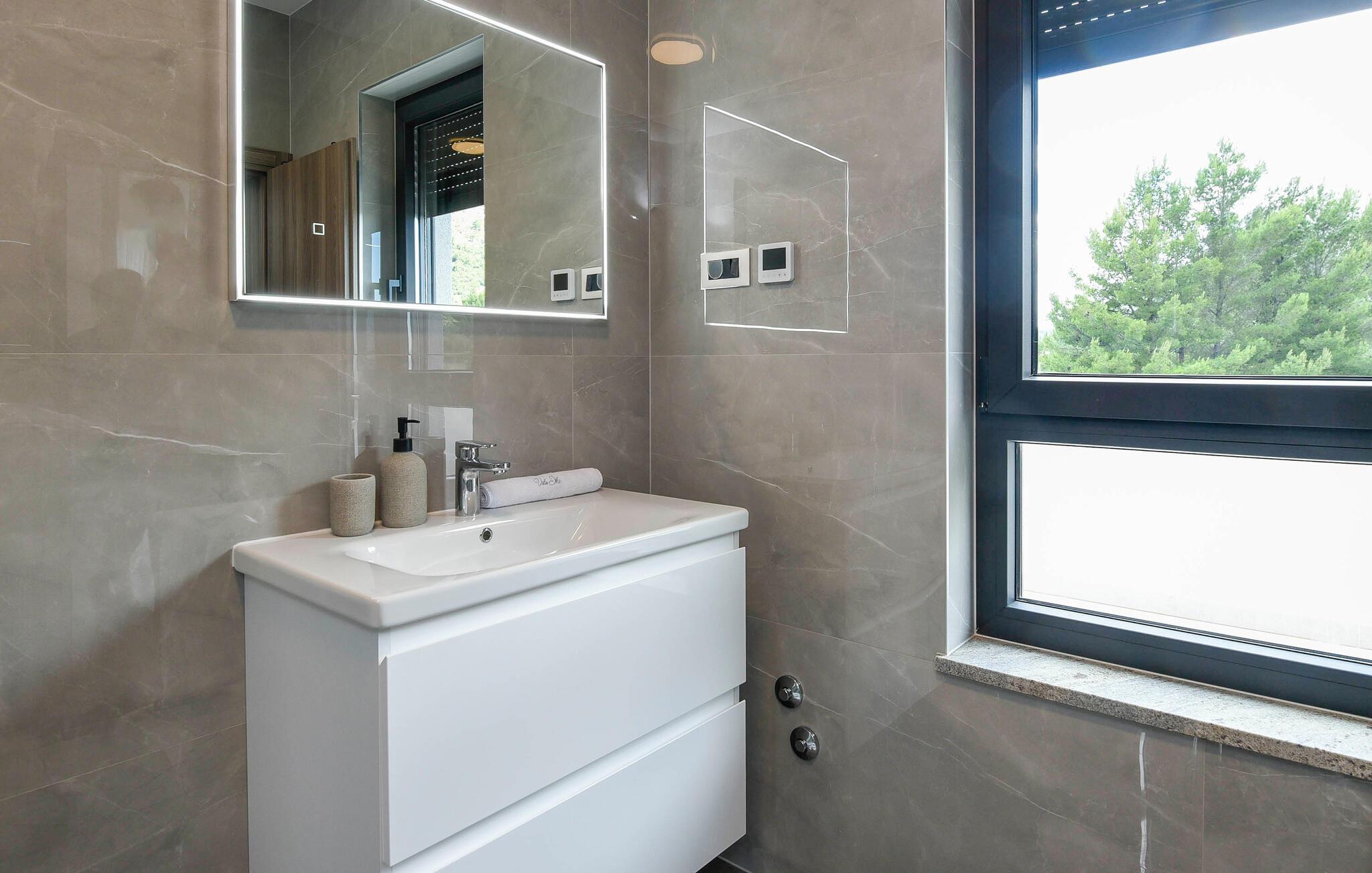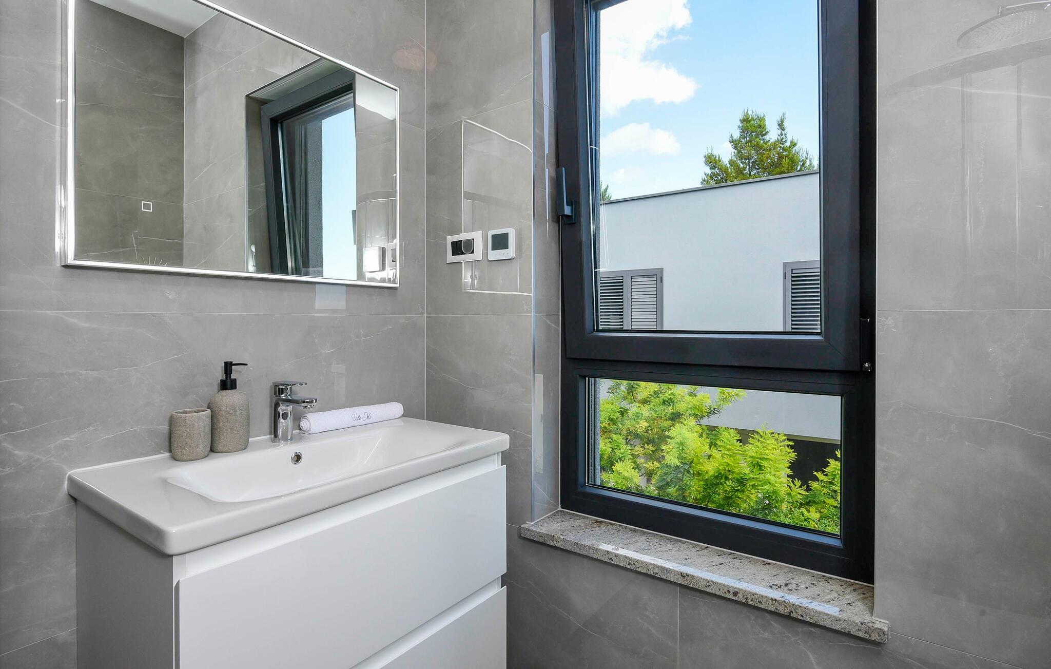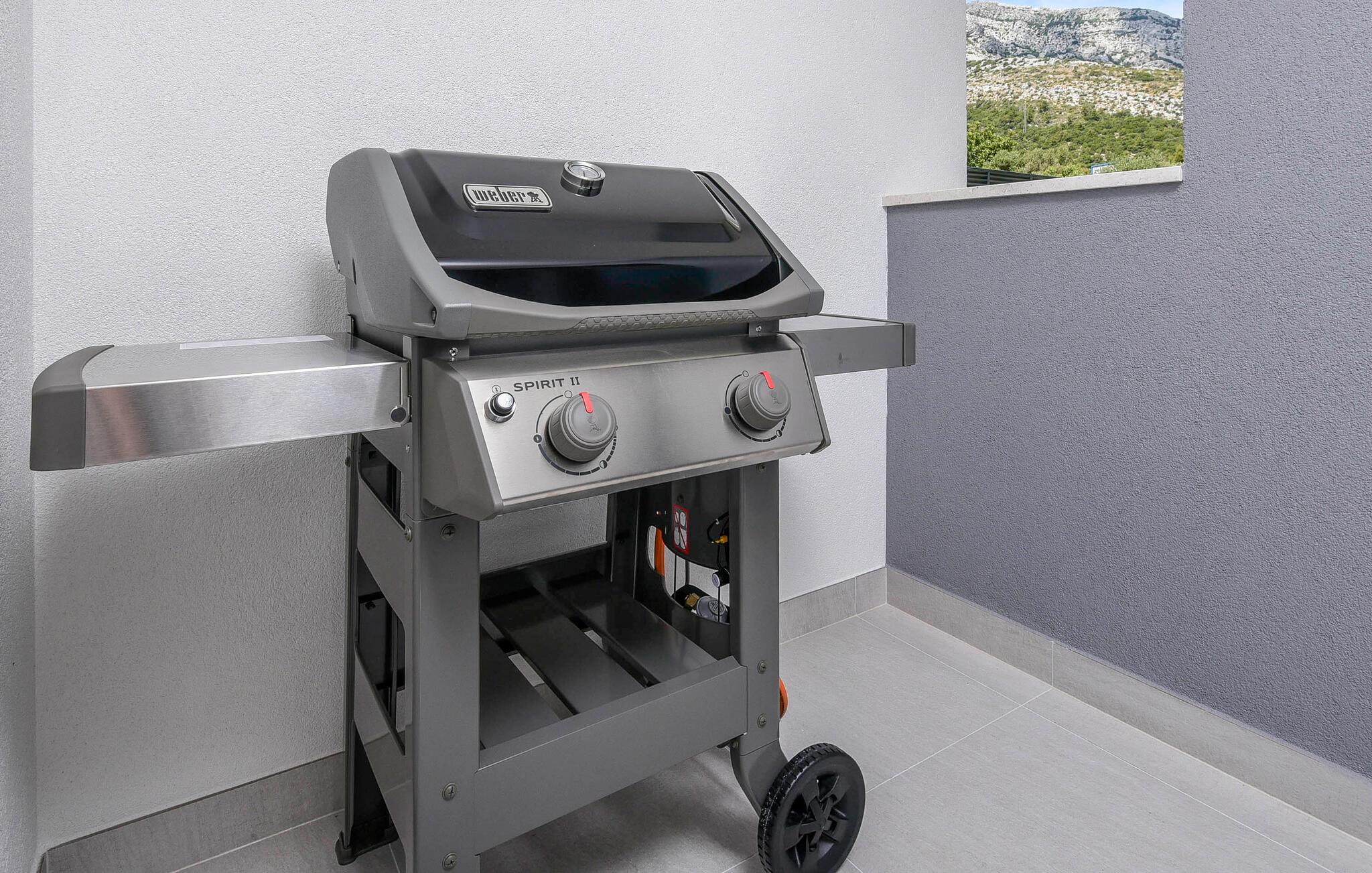 Starten Sie gut erholt in den Tag und lassen Sie sich von der modernen Einrichtung der gut ausgestatteten Küche inspirieren, um ein reichhaltiges Frühstück für die ganze Familie zuzubereiten. Ob Sie es drinnen am eleganten Esstisch oder draußen auf der überdachten Terrasse mit Grill genießen, bleibt Ihnen überlassen. Am Nachmittag laden die Sonnenliegen zu einem erfrischenden Getränk ein. Oder genießen Sie auf dem Balkon den atemberaubenden Blick auf das tiefblaue Meer in der Ferne. Hier finden Sie auch einen wohltuenden Whirlpool. Eine Erfrischung bietet der private Pool, wo Sie nach Herzenslust schwimmen können. Der Fitnessraum sorgt dafür, dass Sie auch im Urlaub in Form bleiben, und in der hauseigenen Sauna kommen Sie voll und ganz zur Ruhe.
