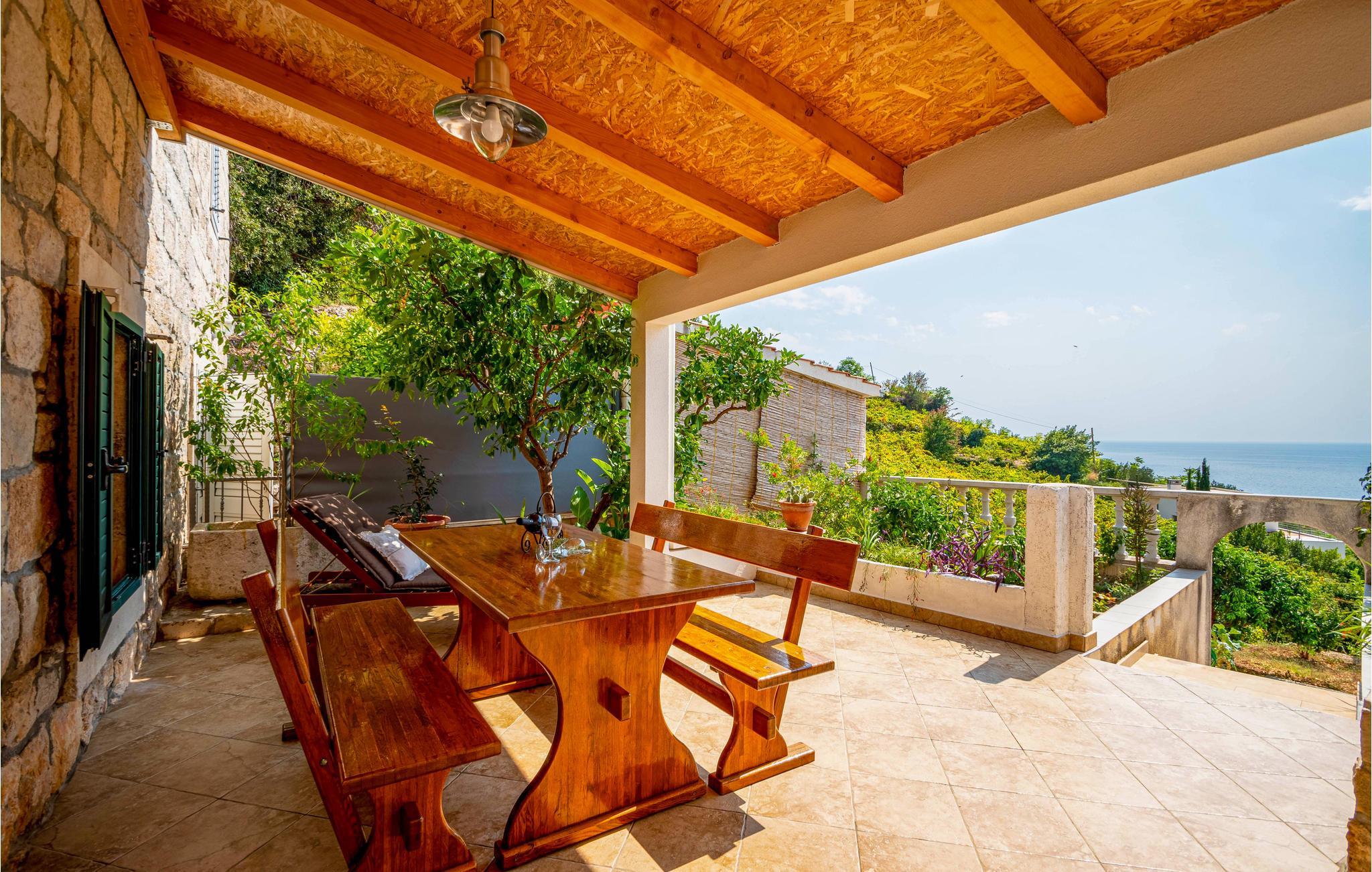 Fernab vom Trubel der Stadt heißt Sie dieses wunderbare Feriendomizil mit Panoramablick auf das Meer willkommen. Es liegt im harmonischen Dörfchen Podobuce, in dem Sie Ihren Urlaub genießen und zu Fuß zum Strand gehen können. Etwa 100 m vom Kiesstrand entfernt, befindet sich dieses ältere aber renovierte Reihenhaus. Die Innenräume sind praktisch und mit bequemen Möbeln eingerichtet. Auf der Terrasse steht Ihnen ein Grill zur Verfügung, auf dem Sie Ihre Lieblingsspeisen im Freien zubereiten oder bei einem guten Buch mit Blick auf das Meer entspannen können. Der für Sie vorgesehen Parkplatz befindet sich in der Nähe des Reihenhauses. Die Halbinsel Pelješac liegt auf halbem Weg zwischen den sehenswerten Städten Split und Dubrovnik und ist die zweitgrößte Halbinsel in Kroatien. Aufgrund des mediterrane Klima wird auf der Halbinsel viel Wein angebaut und so ist Pelješac für seine hervorragenden Weine, wie den Plavac Mali, Dingac und Postup bekannt. Die Halbinsel ist ebenfalls bekannt für seine Salzgärten sowie seine langen steinernen Verteidigungsmauernin der Stadt Ston, wo Sie eine kurze Tour über die Wehrmauer oder längere Tour über den Berg bis nach Mali Ston unternehmen können. Im Ort Orebic gibt es ein Schifffahrtsmuseum, in dem die Geschichte der dortigen maritimen Kapitäne festgehalten wird. Auf dem höchsten Gipfel, heiliger Ilija, können Sie einen wunderschönen Blick auf die ganze Insel genießen. Fahren Sie zum kleinen Dorf Zuljana, wo es ein langen Kiesstrand gibt, an dem Sie viel Badespaß im Meer genießen und sich anschließen unter schattenspendenden Olivenbäumen entspannen können. Unternehmen Sie Spaziergänge entlang der Küste und probieren Sie die frischen Austern und Muscheln, die direkt vor der Küste von Mali Ston gezüchtet werden.