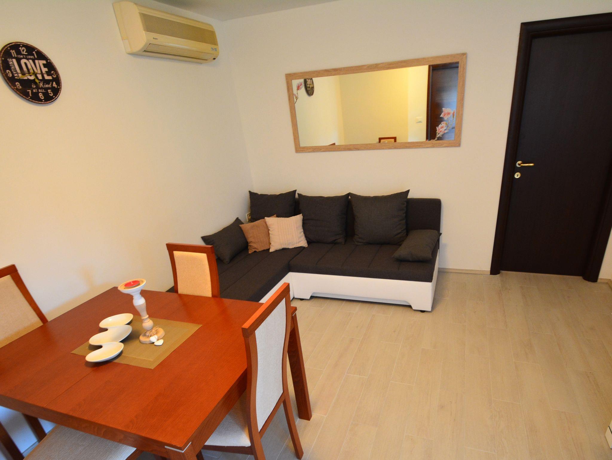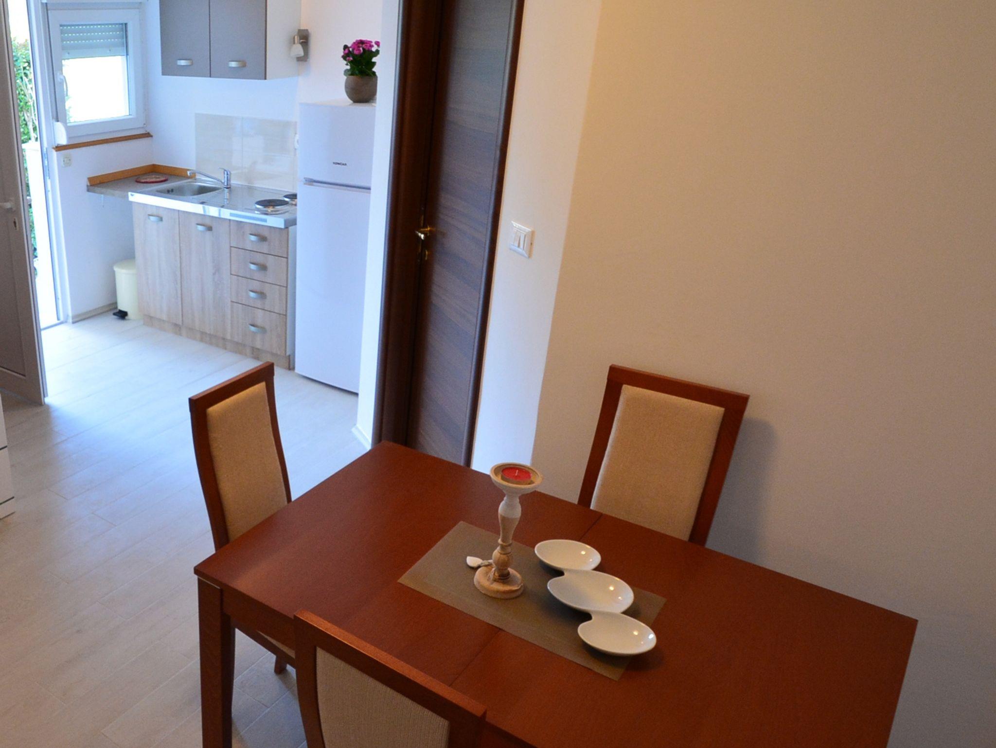 Ferienwohnung bietet Platz für 2 Gäste. Die Betten sind in Schlafzimmern, die es 1 gibt, innerhalb einer Gesamtfläche von 31m2, angeordnet. Die Gäste haben eine eigene Terrasse zur Verfügung, auf der sie in warmen Sommernächten genießen können. Das Apartment bietet Meerblick. Es ist erlaubt, Speisen auf dem Gemeinschafts-Grill vorzubereiten. IM PREIS INBEGRIFFEN: Kurtaxe, Endreinigung, Parkplatz, Internet, Bootsanlegeplatz. VERBINDLICHE ZUSÄTZLICHE KOSTEN: Aufzahlung für Kurzaufenthalte (prozentualer Zuschlag pro Nächtigungsanzahl: 30% - 1, 20% - 2, 10% - 3). UNVERBINDLICHE ZUSÄTZLICHE KOSTEN: Klimatisierung (7,00 € pro Nacht), Wäschewaschen (10,00 € Waschen), Fahrrad (10,00 € täglich (pro Stück)). Die Verfügbarkeit zusätzlicher Dienstleistungen in Ihrem reservierten Termin und die Preise derselben (falls nicht aufgeführt) müssen im Voraus überprüft werden. Zusätzliche Dienstleistungen die in der Zahlungsaufforderung nicht aufgeführt sind werden direkt beim Vermieter bezahlt, angenommen der Gast nutzt auch diese. Ermäßigung auf den Grundpreis: Gratistag 14=13 (bei einem Aufenthalt von 14 Tagen oder mehr erhalten Sie einen Gratistag für den Aufenthalt bis 31.12.26).