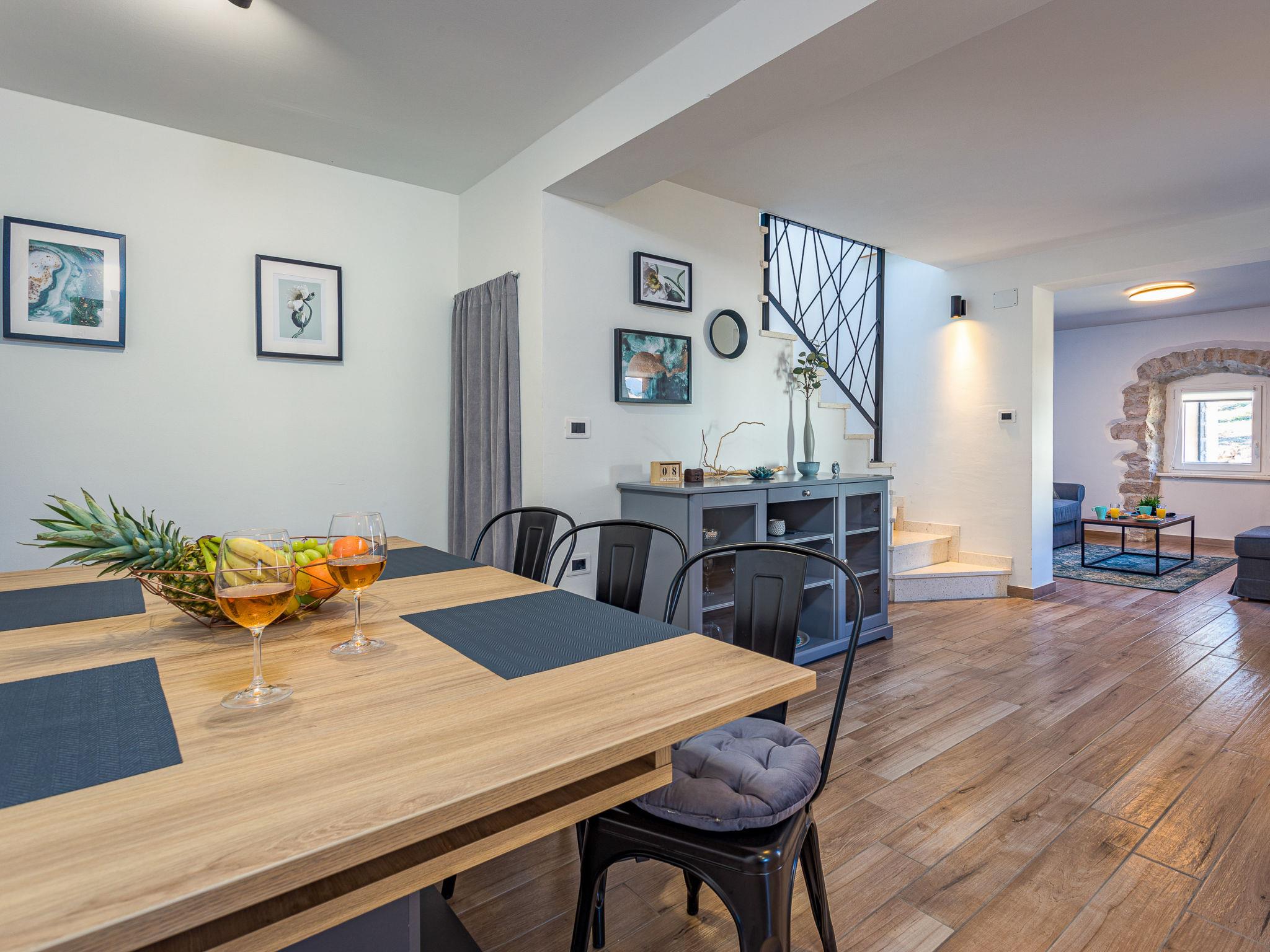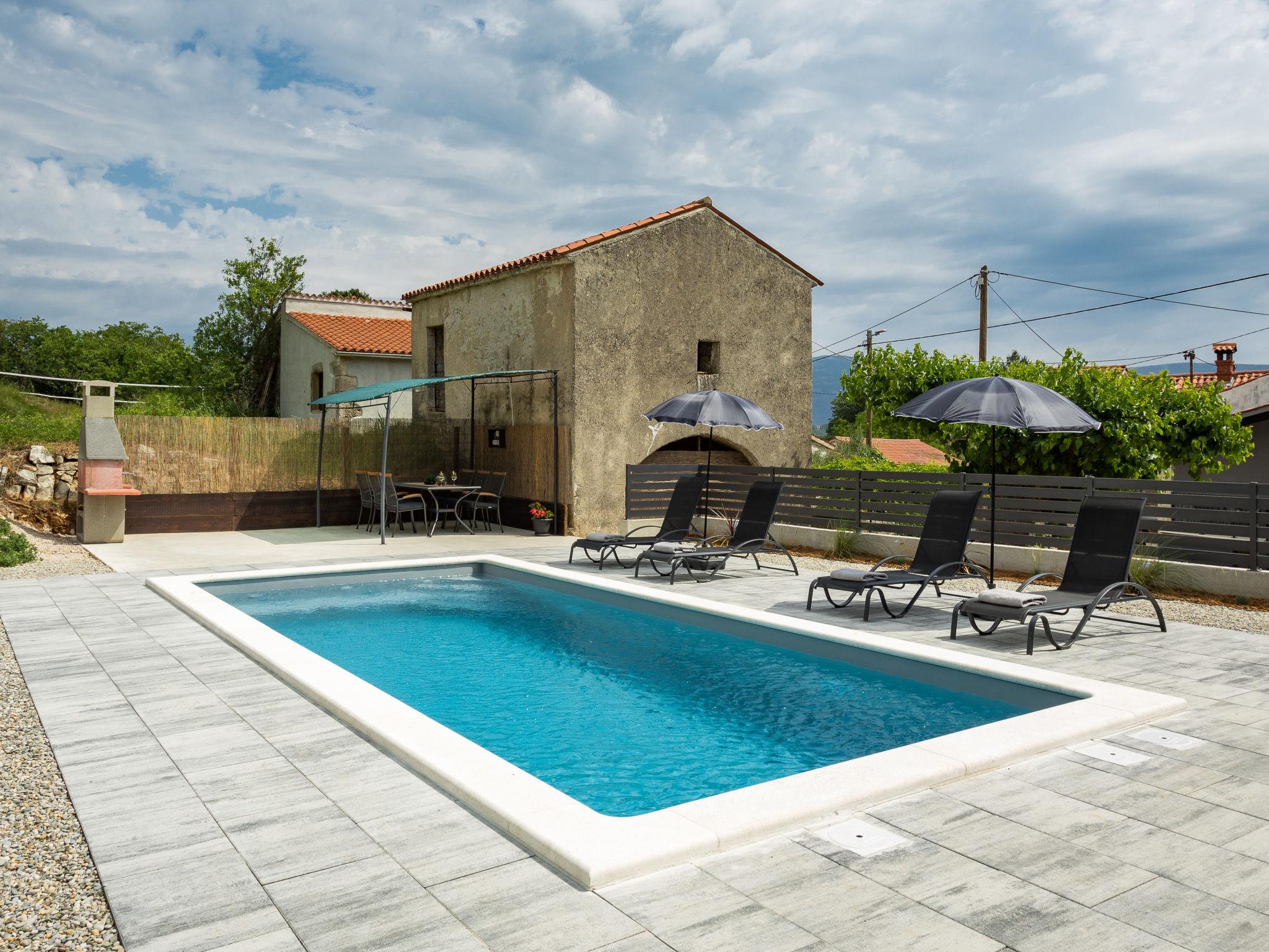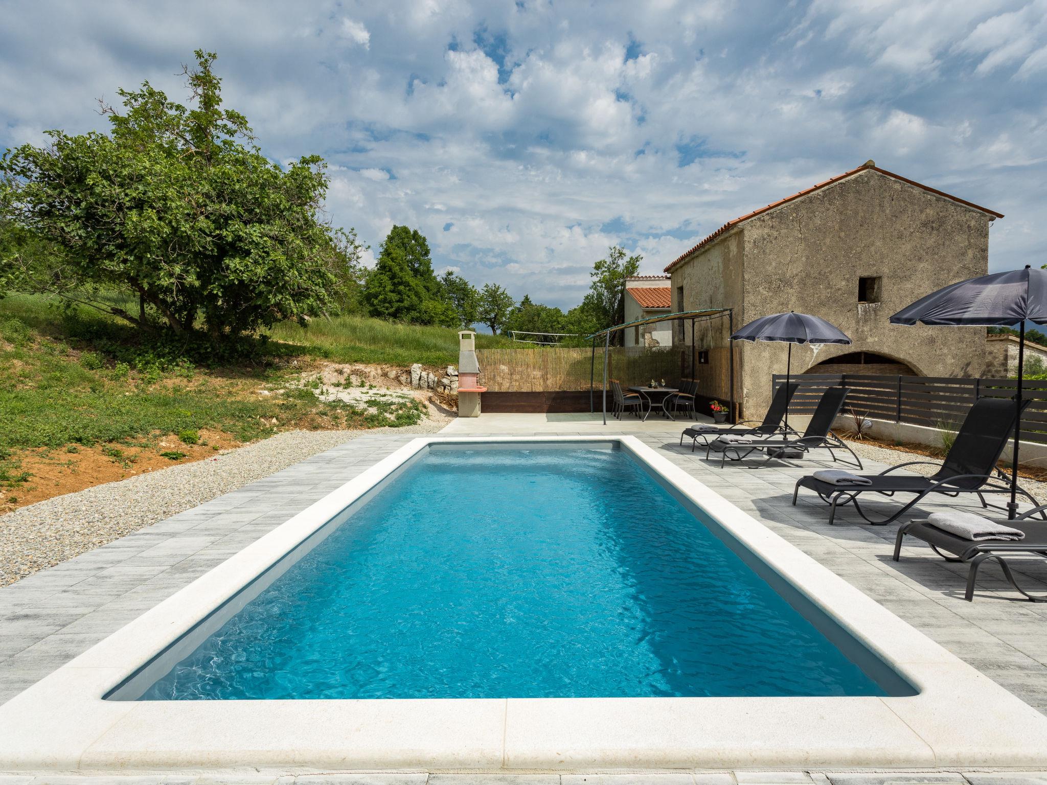 Semi-detached house "Hamara", 2 storeys. In the hamlet Runki 3 km from the centre of Pican, 25 km from the centre of Rabac, 25 km from the sea. Private: property 500 m2 with wildlife garden and trees, swimming pool angular (7 x 3 m, depth 150 cm, seasonal availability: 26.Apr. - 01.Nov.). Outdoor shower, terrace (8 m2), garden furniture, barbecue, pool maintenance by the owner/gardener. In the house: internet access, washing machine. Parking (for 2 cars) at the house on the premises. Shop 3 km, supermarket 3 km, restaurant 3 km, bus stop "Vozilici" 10 km, pebble beach 25 km.