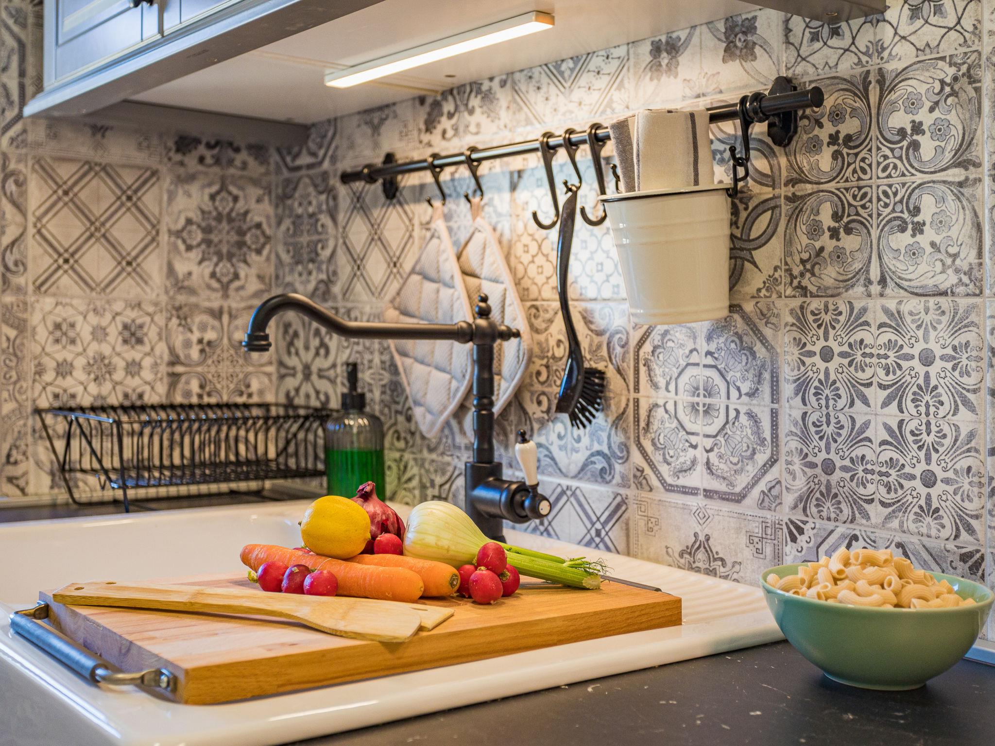 3-room semi-detached house 80 m2 on 2 levels. Beautiful furnishings: living/dining room with 1 double sofabed (160 cm, length 200 cm), satellite TV (flat screen), air conditioning. Exit to the balcony. Open kitchen (oven, dishwasher, 4 ceramic glass hob hotplates, toaster, kettle, microwave, freezer, electric coffee machine). Shower/WC. Top floor: 1 room with sloping ceilings, ceiling height 140 - 240 cm with rooflight with 1 french bed (180 cm, length 200 cm), satellite TV and air conditioning. 1 room with sloping ceilings, ceiling height 140 - 240 cm with rooflight with 2 beds (90 cm, length 200 cm), satellite TV and air conditioning. Sep. WC. Forced-air heating. Balcony 6 m2. Balcony furniture, deck chairs (4). Facilities: iron, children's high chair, baby cot. Internet (WiFi, free). Please note: maximum 1 pet/ dog allowed. Fire extinguisher.