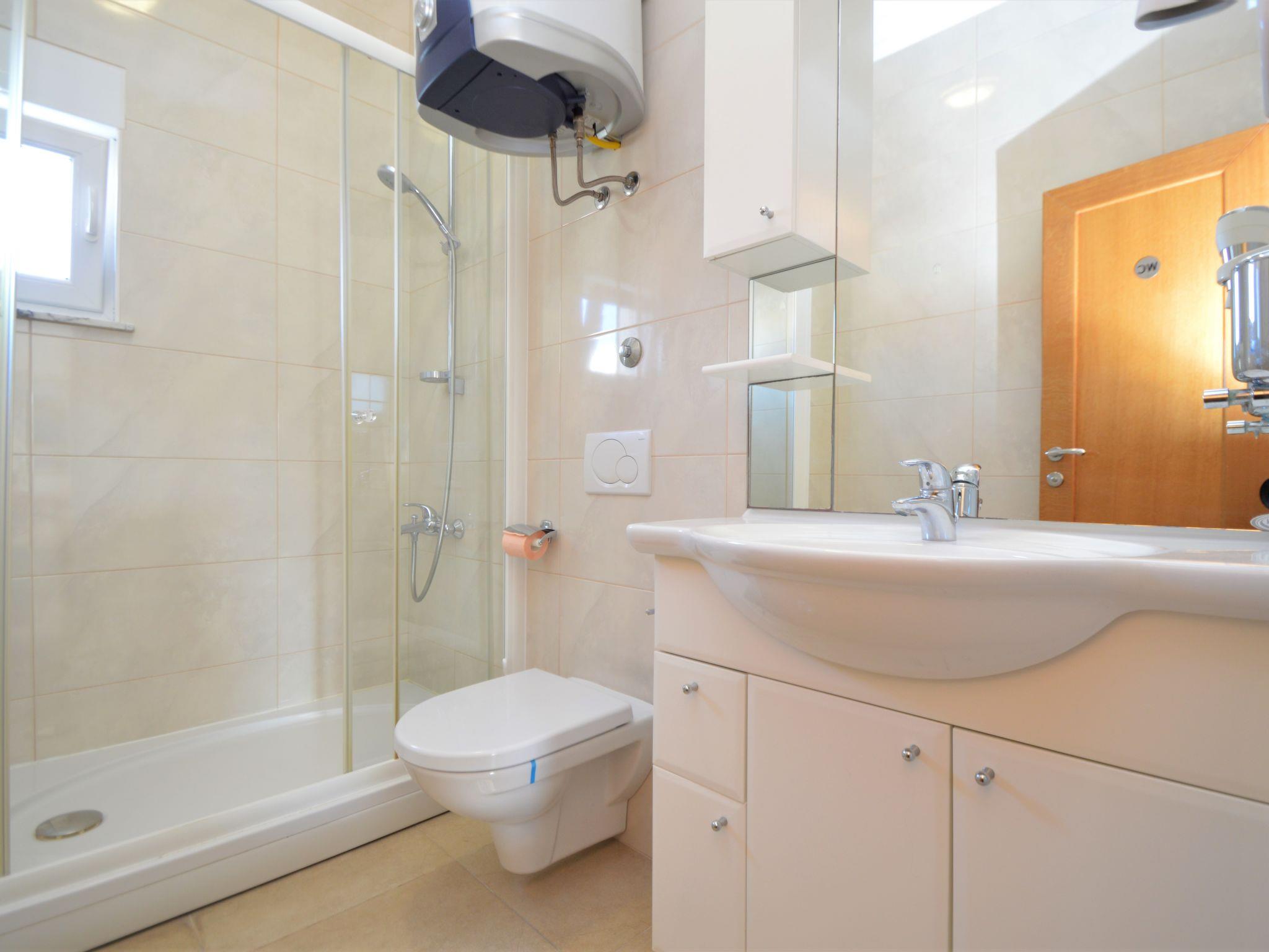 3-room apartment 70 m2 on 1st floor, south facing position. Comfortable and cosy furnishings: living/dining room 40 m2 with 1 double sofabed (150 cm, length 190 cm), satellite TV (flat screen), air conditioning. Exit to the terrace. 1 room with 1 french bed (160 cm, length 190 cm). Exit to the balcony. 1 room with 1 french bed (160 cm, length 190 cm). Open kitchen (4 hot plates, oven, dishwasher, microwave, freezer, electric coffee machine). Shower/WC. Air-conditioning (extra). No heating option. Balcony 5 m2, terrace 16 m2 partly roofed. Terrace furniture. Facilities: hair dryer. Internet (WiFi, free).