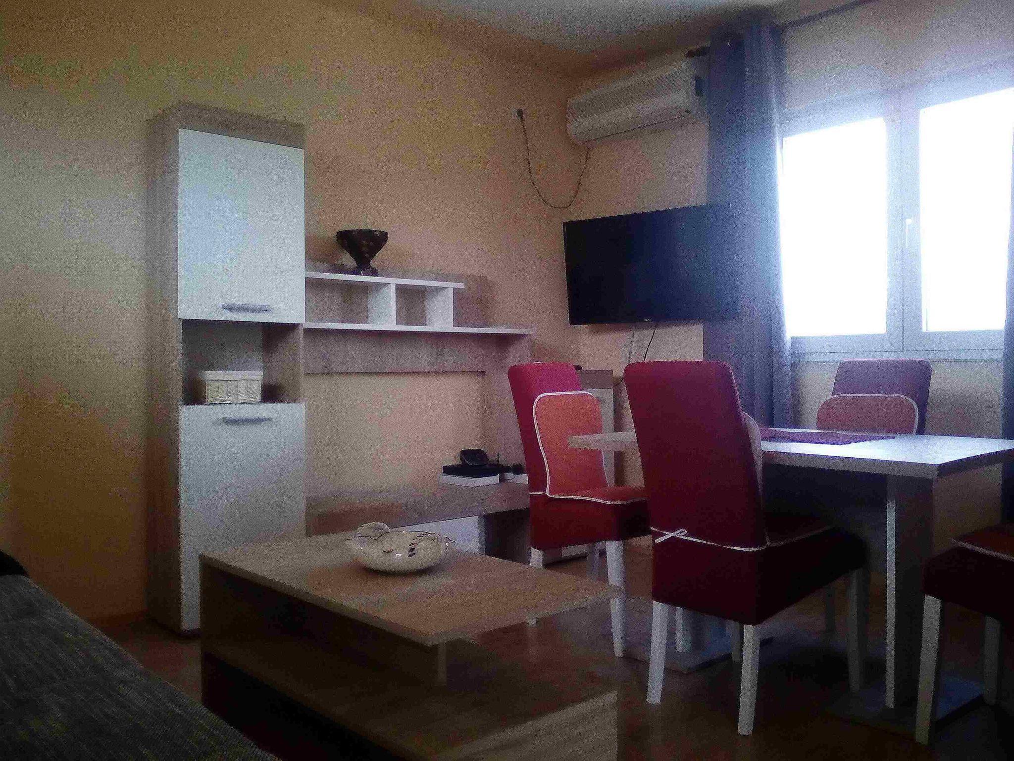 Ferienwohnung bietet Platz für 4 Gäste. Die Betten sind in Schlafzimmern, die es 1 gibt, und in Esszimmer, innerhalb einer Gesamtfläche von 38m2, angeordnet. Die Gäste haben eine eigene Terrasse zur Verfügung, auf der sie in warmen Sommernächten genießen können. Es ist erlaubt, Speisen auf dem Gemeinschafts-Grill vorzubereiten. In der Unterkunftseinheit besteht die Möglichkeit des Mitbringens von Haustieren, und die Dienstleistung ist im Preis der Unterkunft enthalten. IM PREIS INBEGRIFFEN: Kurtaxe, Endreinigung, Klimatisierung, Parkplatz, Garage, Internet, Haustiere, Bügeleisen, Bügelbrett, Sonnenschirm. UNVERBINDLICHE ZUSÄTZLICHE KOSTEN: Zusatzbett (10,00 € pro Nacht). Die Verfügbarkeit zusätzlicher Dienstleistungen in Ihrem reservierten Termin und die Preise derselben (falls nicht aufgeführt) müssen im Voraus überprüft werden. Zusätzliche Dienstleistungen die in der Zahlungsaufforderung nicht aufgeführt sind werden direkt beim Vermieter bezahlt, angenommen der Gast nutzt auch diese. Ermäßigung auf den Grundpreis: Gratistag 14=13 (bei einem Aufenthalt von 14 Tagen oder mehr erhalten Sie einen Gratistag für den Aufenthalt bis 31.12.26).
