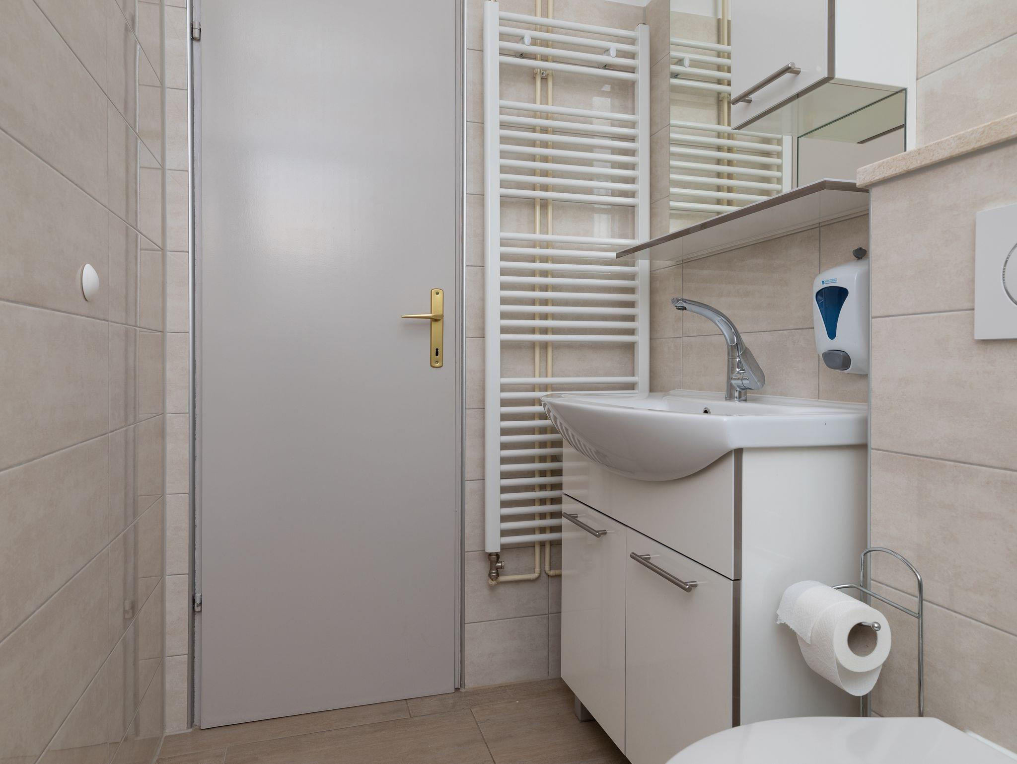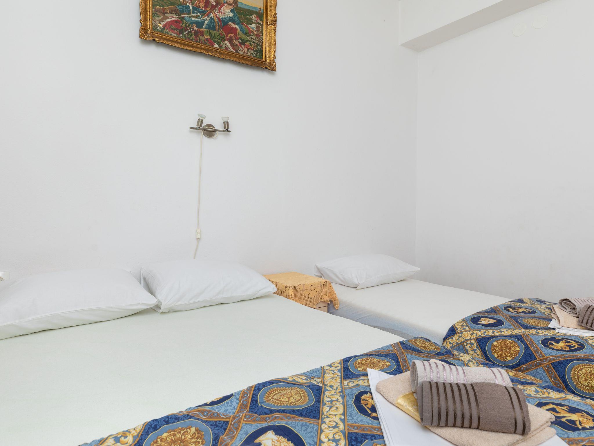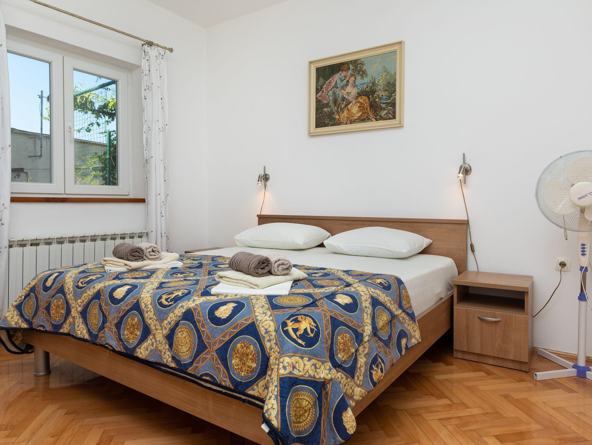 Ferienwohnung bietet Platz für 8 Gäste. Die Betten sind in Schlafzimmern, die es 2 gibt, und in Wohnzimmer, innerhalb einer Gesamtfläche von 76m2, angeordnet. Die Gäste haben eine eigene Terrasse zur Verfügung, auf der sie in warmen Sommernächten genießen können. Das Apartment bietet Meerblick. Es ist erlaubt, Speisen auf dem Gemeinschafts-Grill vorzubereiten. In der Unterkunftseinheit besteht die Möglichkeit des Mitbringens von Haustieren gegen Aufpreis. IM PREIS INBEGRIFFEN: Kurtaxe, Endreinigung, Klimatisierung, Parkplatz, Internet. VERBINDLICHE ZUSÄTZLICHE KOSTEN: Aufzahlung für Kurzaufenthalte (prozentualer Zuschlag pro Nächtigungsanzahl: 30% - 1, 20% - 2, 10% - 3). UNVERBINDLICHE ZUSÄTZLICHE KOSTEN: Haustiere (8,00 € pro Nacht). Die Verfügbarkeit zusätzlicher Dienstleistungen in Ihrem reservierten Termin und die Preise derselben (falls nicht aufgeführt) müssen im Voraus überprüft werden. Zusätzliche Dienstleistungen die in der Zahlungsaufforderung nicht aufgeführt sind werden direkt beim Vermieter bezahlt, angenommen der Gast nutzt auch diese.
