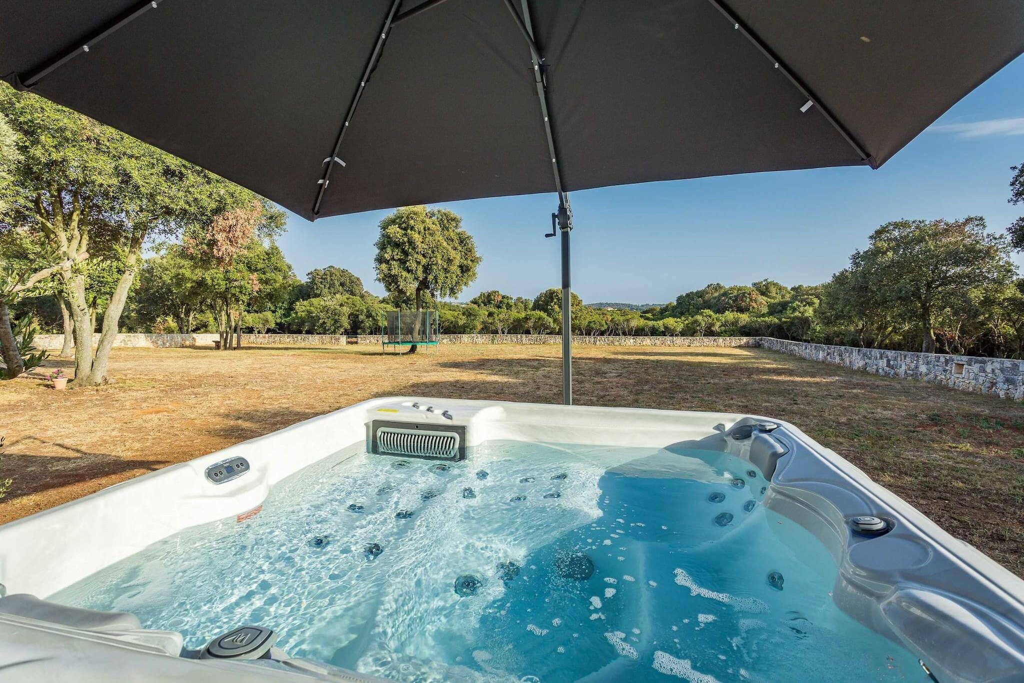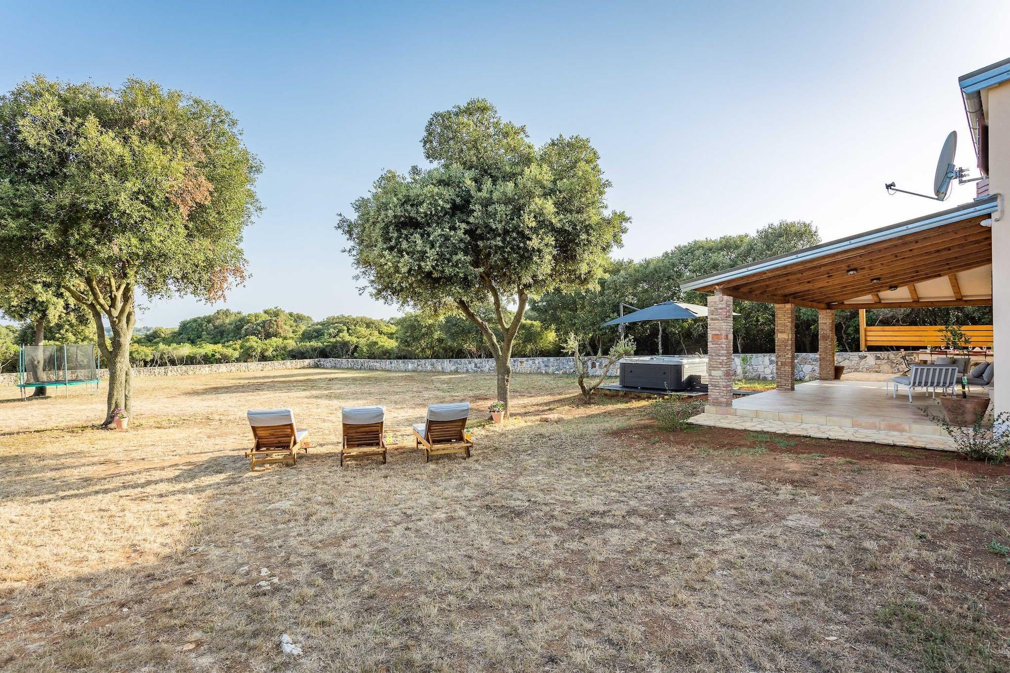 This charming house, located in Pješcana Uvala, offers a perfect escape with private access to a small beach. Situated on a 4000 m² plot of land, the property provides full privacy and an abundance of outdoor space for various activities. The ground floor includes a kitchen, living room, and bathroom, while the two bedrooms are located upstairs. The property is ideal for families, accommodating up to 6 guests, with the best configuration being 4 adults and 2 children. A baby cot is available upon request, and pets are allowed with an additional fee. Guests can enjoy a private jacuzzi, terrace with BBQ facilities, and a dining area. For those seeking an active vacation, two bikes and a trampoline are provided for free. Pješcana Uvala is a peaceful area close to Pula, an ancient Roman city with many monuments, museums, and galleries to explore. The house is just 350 to 500 meters from multiple beaches, and a grocery store and restaurant are within walking distance (500 meters). The house borders the beautiful Soline Forest Park, perfect for relaxing walks in nature. Nearby, visitors can enjoy activities such as bike tours, hiking trails, and water sports. Pula’s Roman Amphitheater hosts Spectacvla Antiqva shows every few days, offering a unique historical experience. The house is equipped with essential amenities, including Wi-Fi, air conditioning, and free parking. Guests can enjoy the spacious garden and terrace, with plenty of room for outdoor dining and relaxation. A security deposit is required, and pets are welcomed for an additional fee. With its combination of privacy, natural beauty, and proximity to local attractions, this house offers a fantastic base for a memorable vacation in Pješcana Uvala.