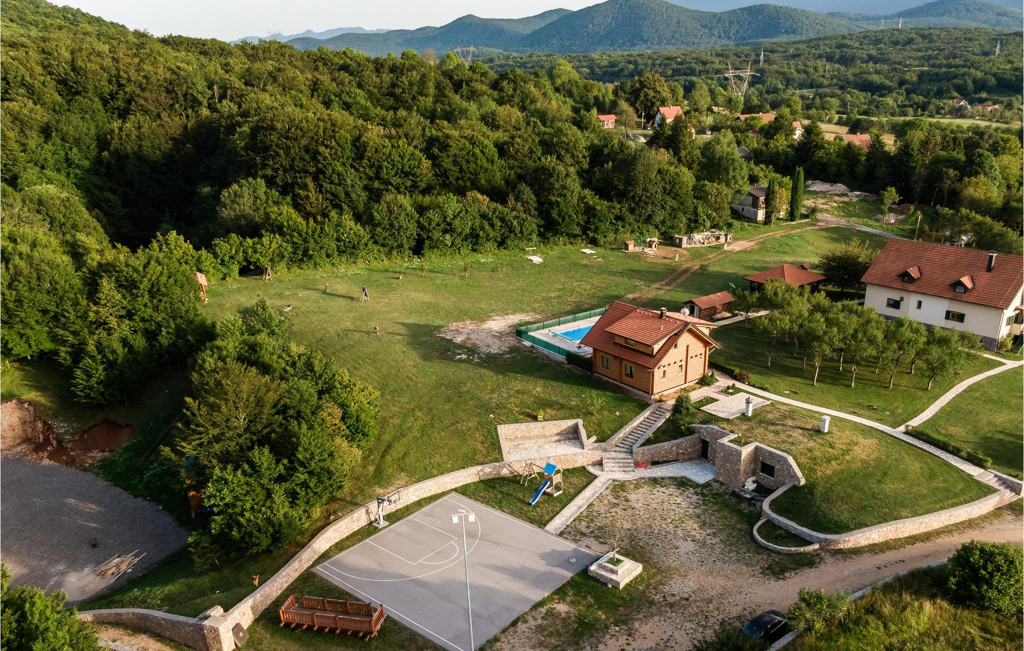 Nicht weit von den Plitvicer Seen liegt dieses Blockhaus, welches Ihnen einen unvergesslichen und erholsamen Urlaub bescheren wird. Der Garten ist reich an Unterhaltungsmöglichkeiten für Kinder und Erwachsene, von Fußball- und Tennisplätzen über Bogenschießen, Bowling, Volleyball und Badminton bis hin zum Kinderspielplatz. Erfrischen Sie sich an heißen Sommertagen im beheizten Pool oder genießen Sie das Beisammensein in der Taverne mit Sommerküche, Billard und Tischfußball. Aktivurlaubern ist eine Reihe von Freizeitaktivitäten geboten und auf nahe gelegenen Naturpfaden können Sie Rad fahren oder im nahe gelegenen kleinen Fluss fischen.