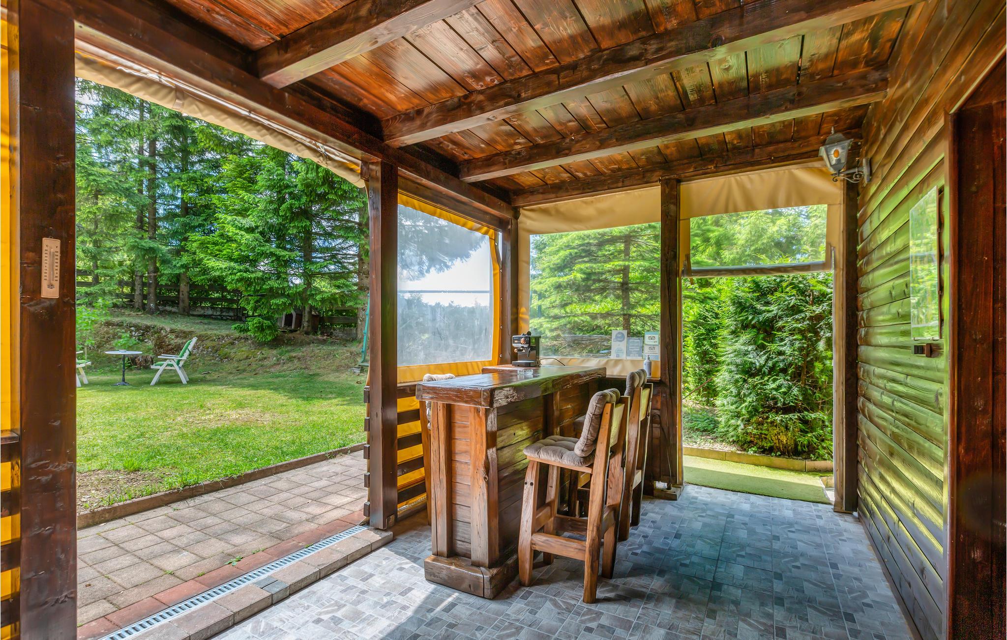 Dieses außergewöhnliche Haus, das Ihnen einen perfekten Urlaub in der Natur bieten wird und welches weit weg von der Zivilisation ist, befindet sich im kleinen Dorf Cuic krcevina, mitten im weltberühmten Nationalpark Plitvicer Seen. Im Park gibt es 16 Seen und Hunderte von Wasserfällen, er ist ein UNESCO Weltnaturerbe und einer der schönsten Parks in Europa. Das Haus hat drei Schlafzimmer (minimale Deckenhöhe 100 cm), Küche, Wohnzimmer, zwei Bäder, zwei Balkone, zu denen Sie von jedem Zimmer Zugang haben, eine große Terrasse und ein schönes Hallenbad. Der Hof ist mehr als groß, deshalb kann man ihn für viele Aktivitäten nutzen, und man hat auch einen Blick auf den Innenpool. Zur Verfügung stehen Ihnen außerdem eine Sauna und zwei Fahrräder mit welchen Sie das kleine Dorf erkunden können, oder sogar an den See fahren können. Das Haus wird bestimmt alle Anforderungen von einem perfekten Urlaub erfüllen, da es Komfort in angenehmer Umgebung bietet.
