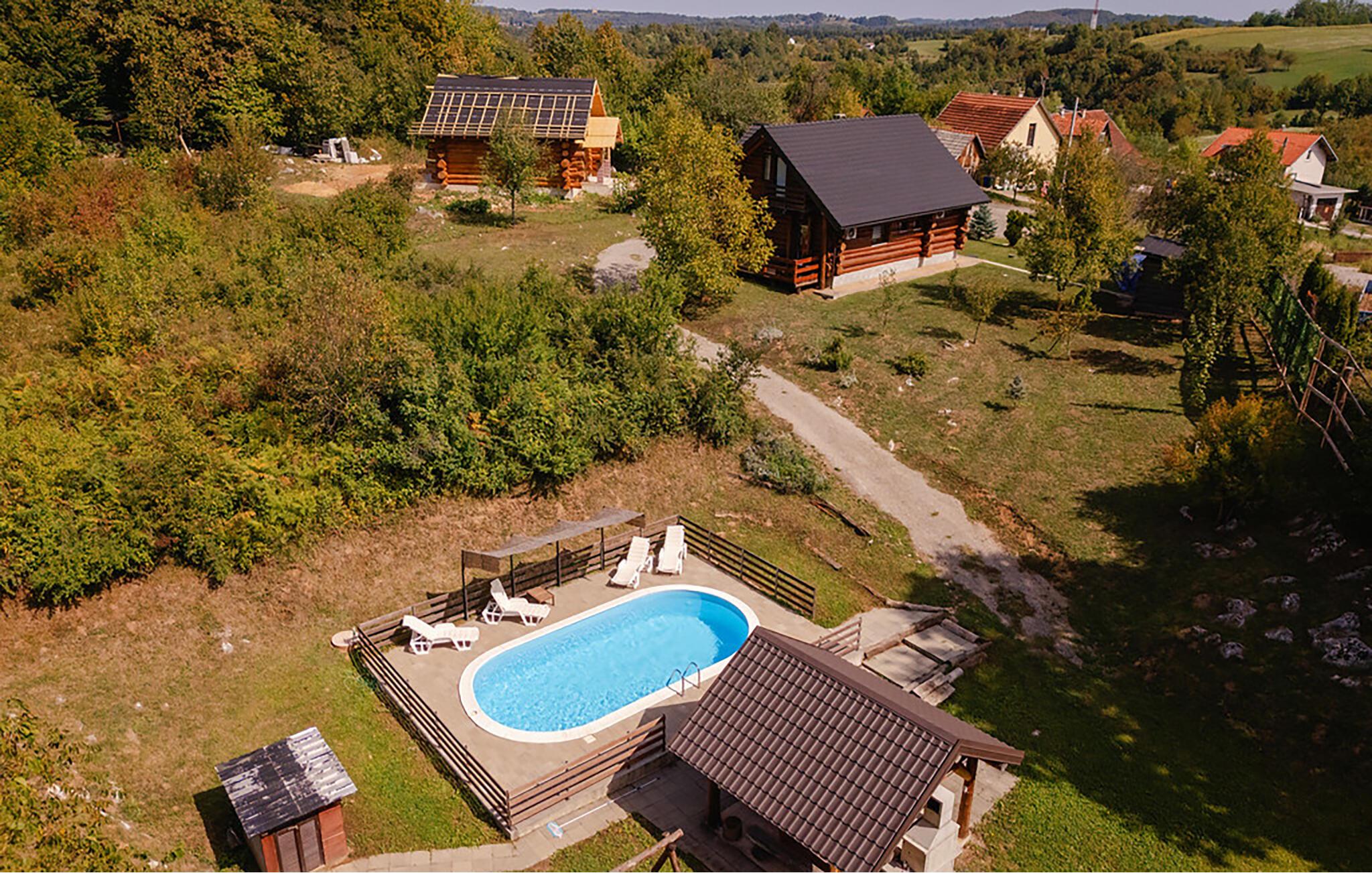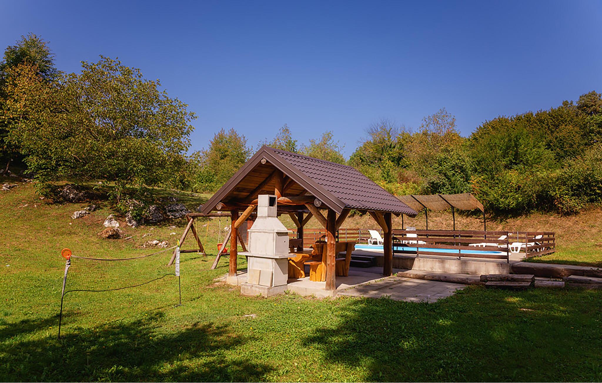 Dieses Holzhaus mit Swimmingpool und Hydromassage im Freien befindet sich in der Nähe der Plitvicer Seen, umgeben von wunderschöner Natur.