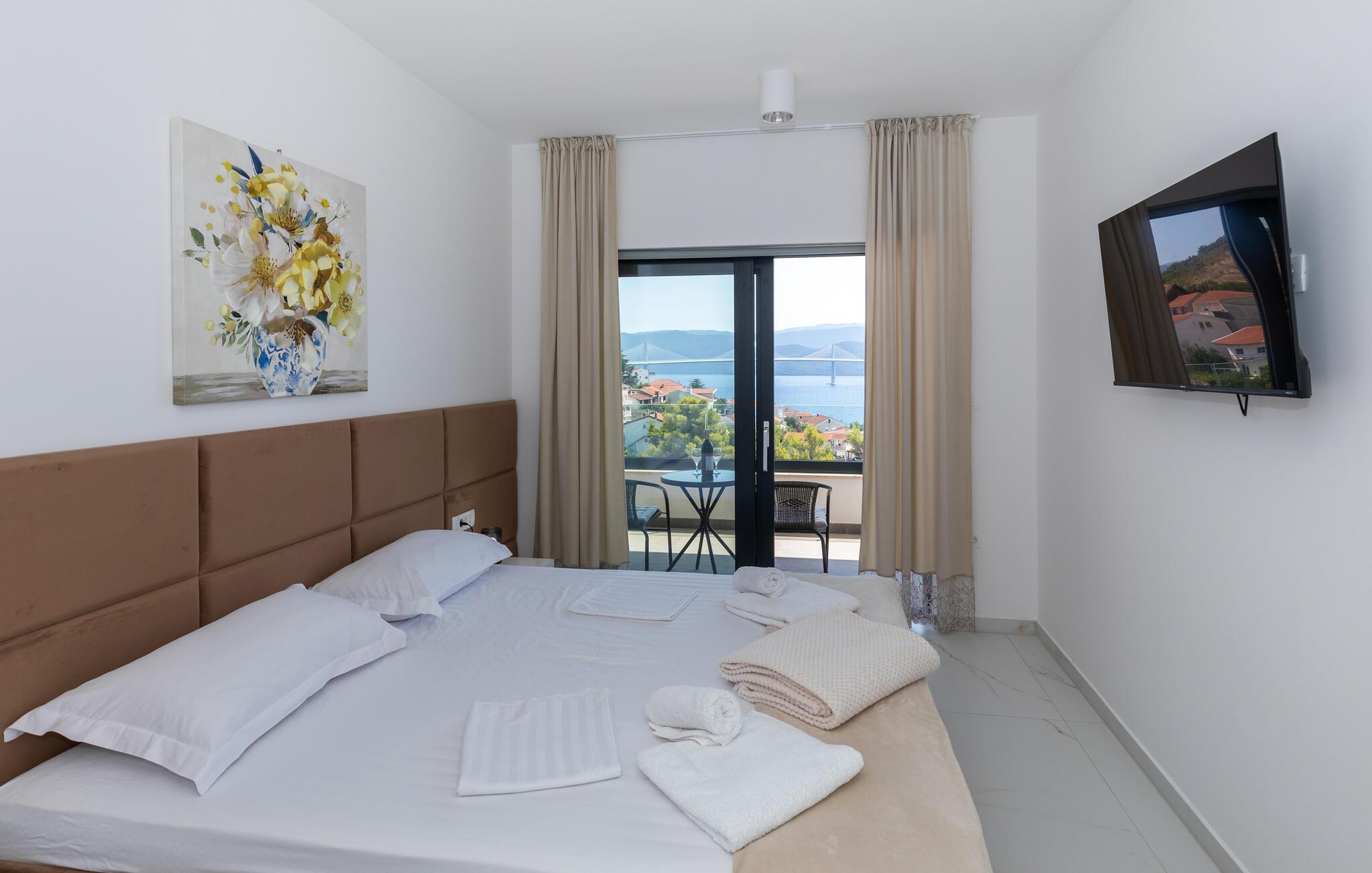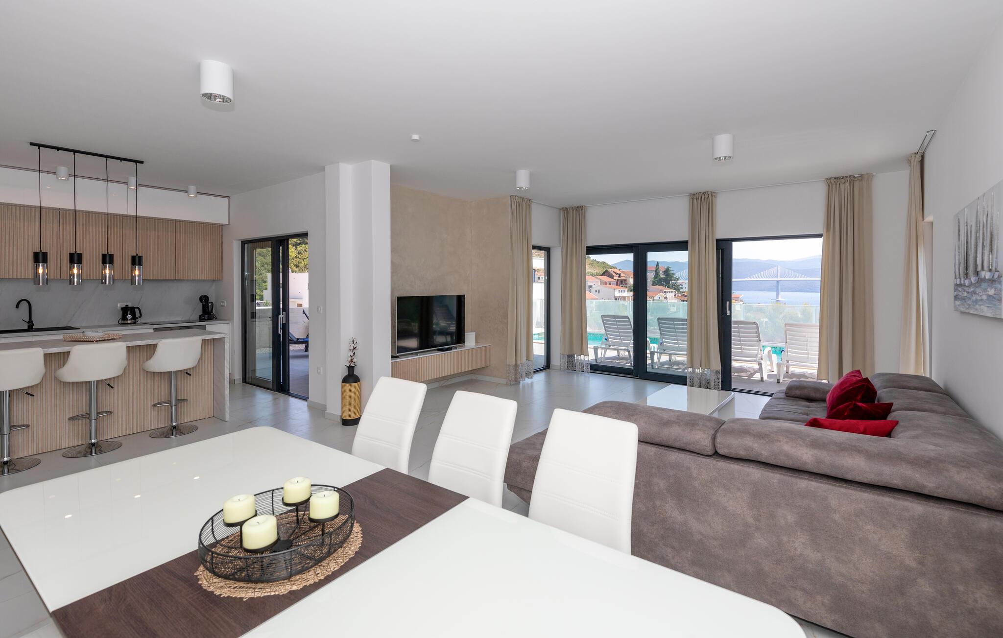 Genießen Sie von diesem schönen Ferienhaus mit Pool den Blick auf das Meer und die Pelješac-Brücke.