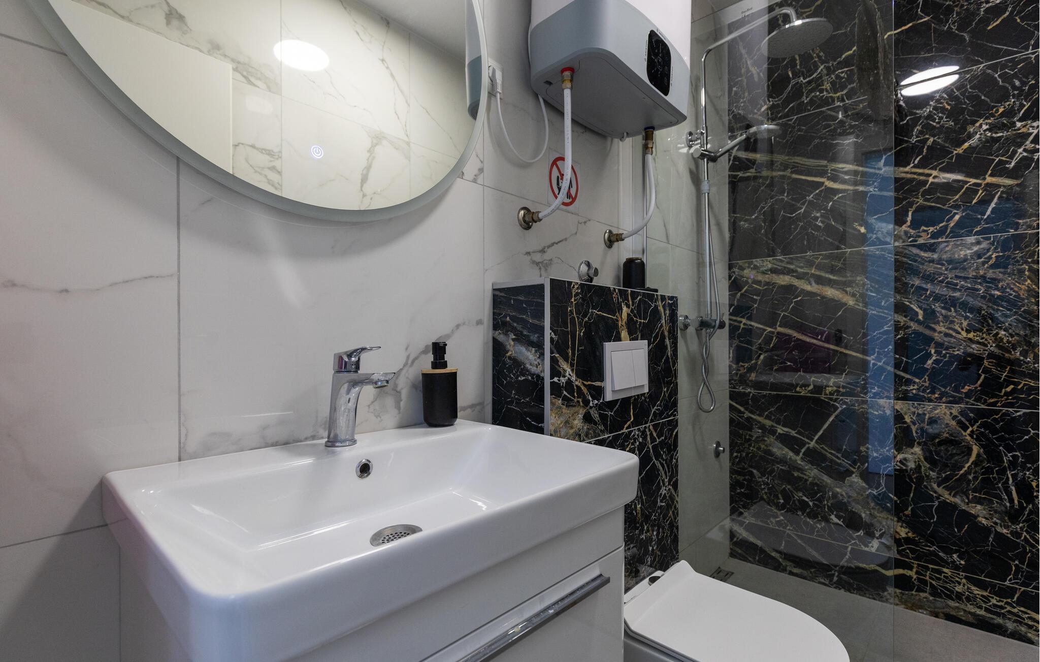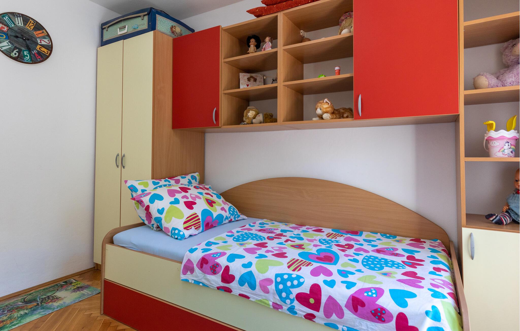 Nur wenige Schritte vom klaren Wasser der Adria entfernt können Sie es sich in dieser charmanten Ferienwohnung mit Ihren Liebsten gemütlich machen. Bereiten Sie mediterrane Gerichte zu und planen Sie Ihre Unternehmungen bei harmonischen Mahlzeiten im hellen Essbereich. Lassen Sie einen langen Tag an der kroatischen Sonne mit einem Spieleabend oder entspannten Lesestunden auf dem großzügigen Sofa ausklingen.