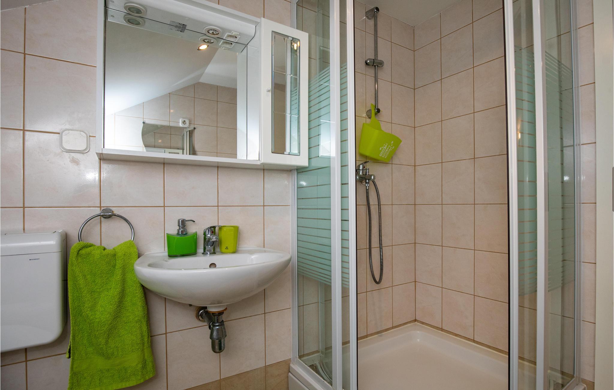 - WC mit warmem und kaltem Wasser, Dusche