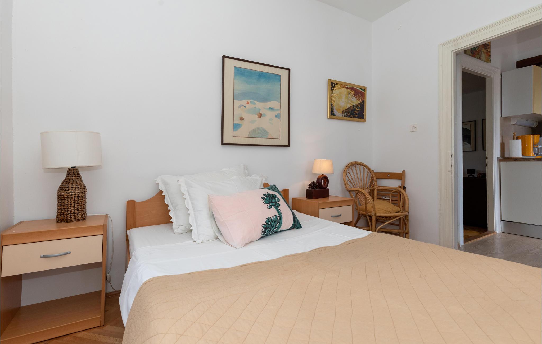 Herzlich Willkommen in diesem angenehm eingerichteten Apartment im obersten Stockwerk in Blace, direkt am Wasser. Vor dem Gebäude am Meer befindet sich eine wunderbare Gemeinschaftsterrasse mit Grill, wo Sie an Tagen mit schönem Wetter sicher gerne Zeit verbringen. Die Wohnung ist so gemütlich ausgestattet, dass Sie es sich ohne lange zu Überlegen auch daheim gemütlich machen können, wenn Ihnen einmal danach ist, zum Beispiel im geräumigen Wohnbereich unterm Spitzdach.