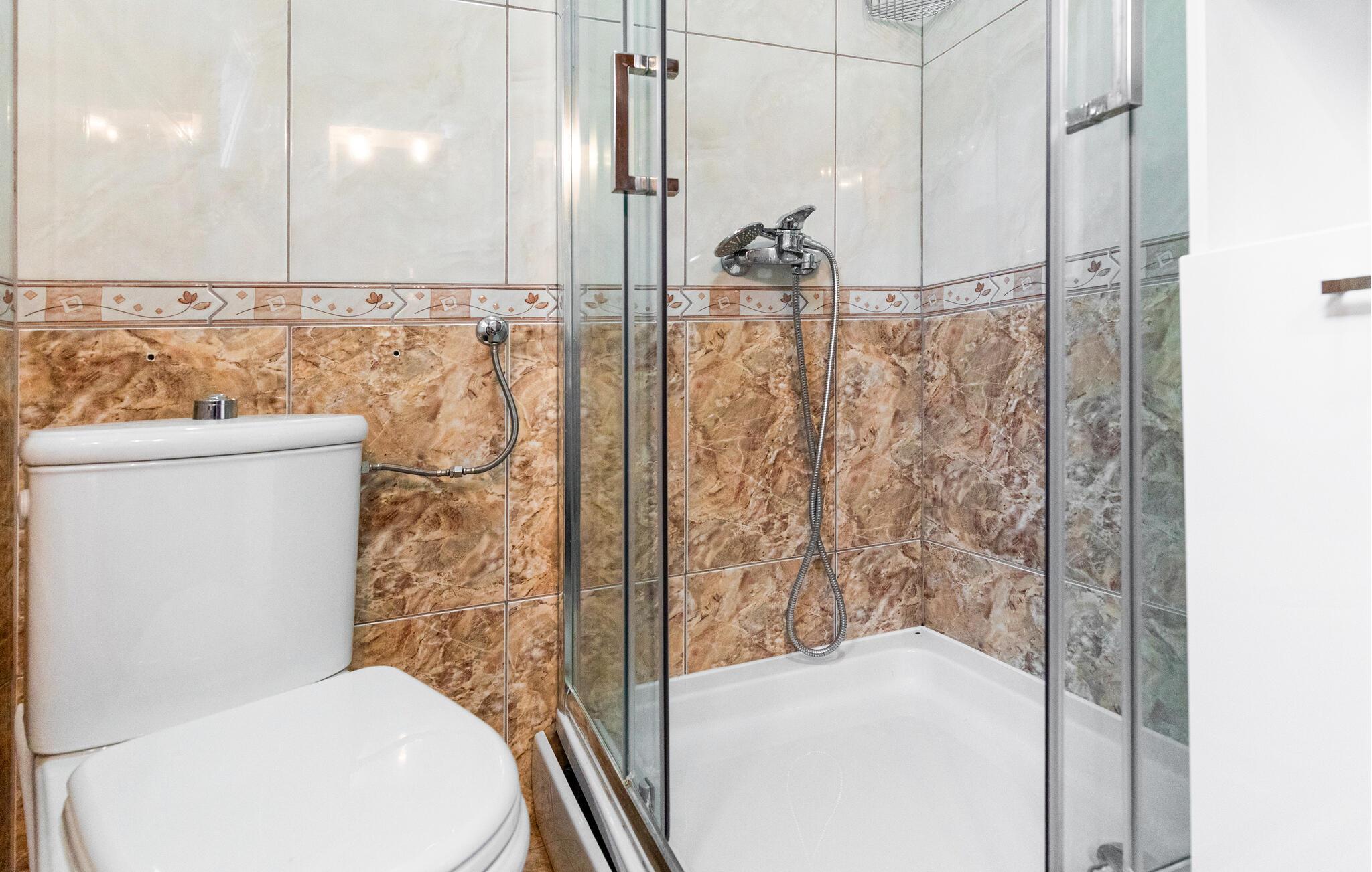 - WC mit warmem und kaltem Wasser, Dusche