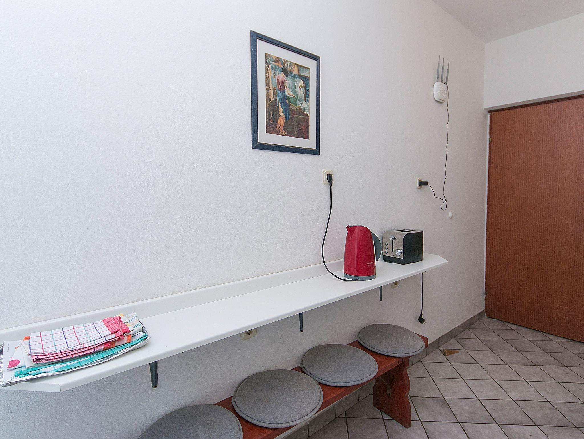 Hof (200m2, Sitzbereich), Parkplatz (Anzahl der Parkplätze: 3, Entfernung vom Objekt: im Hof), Parkplatz (Anzahl der Parkplätze: 5, Entfernung vom Objekt: 100 m), Grill: gemeinsam, WiFi Internet, Föhn, Bügeleisen, Bügelbrett