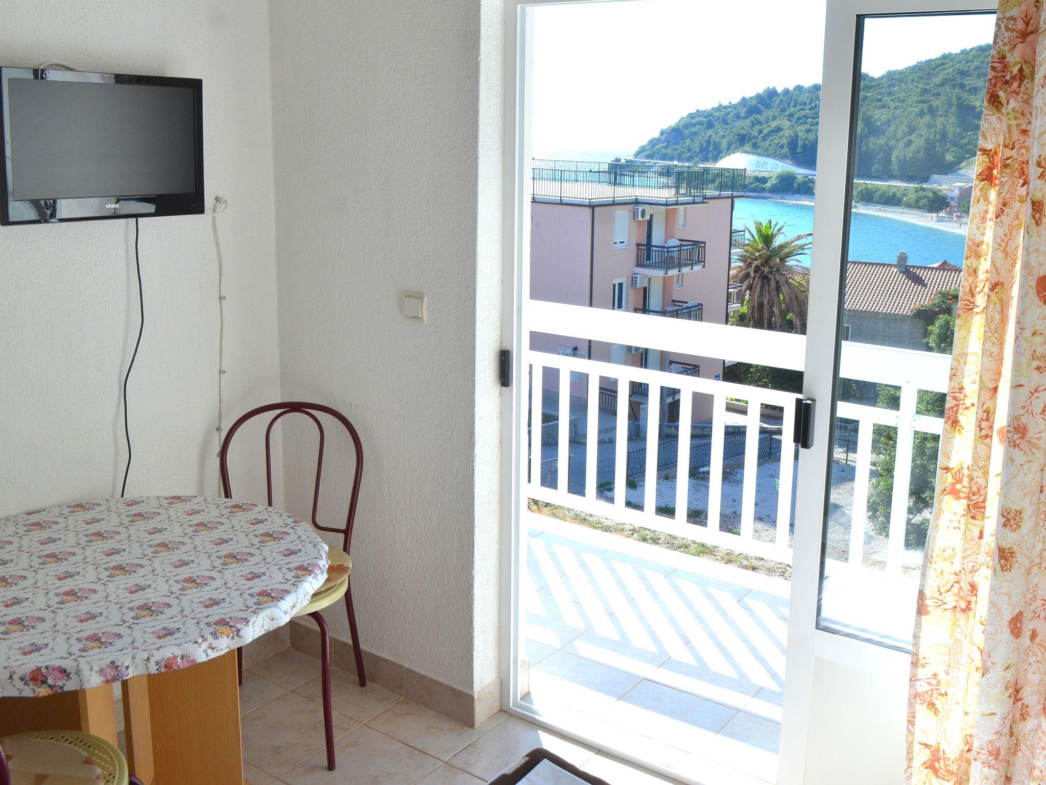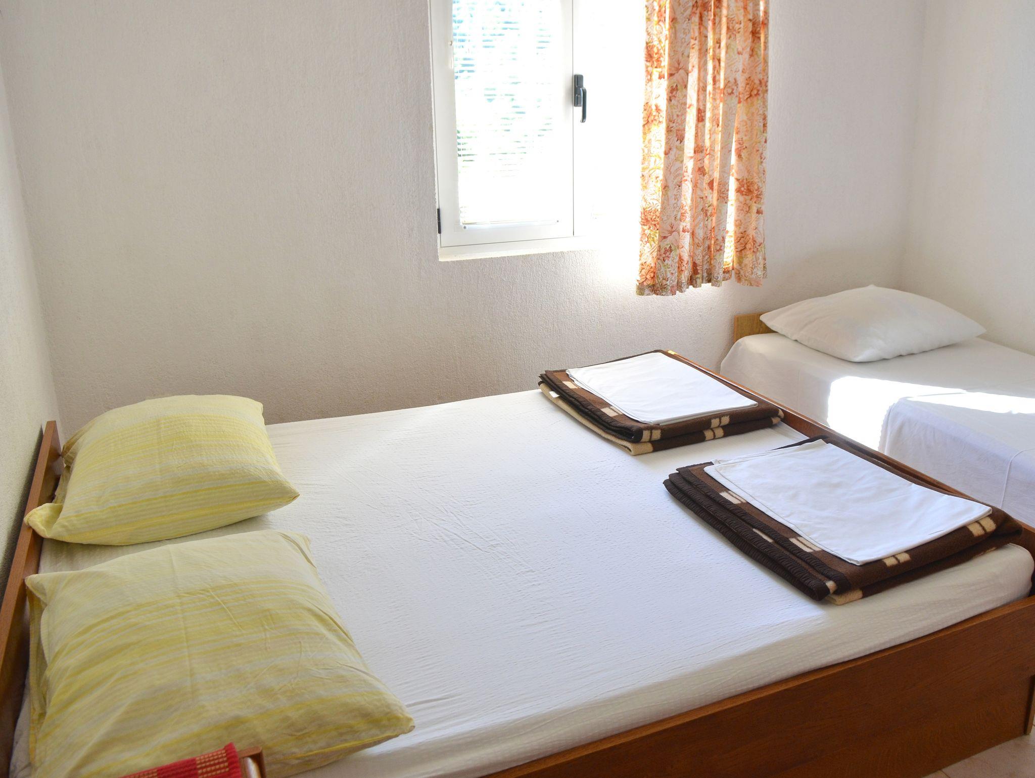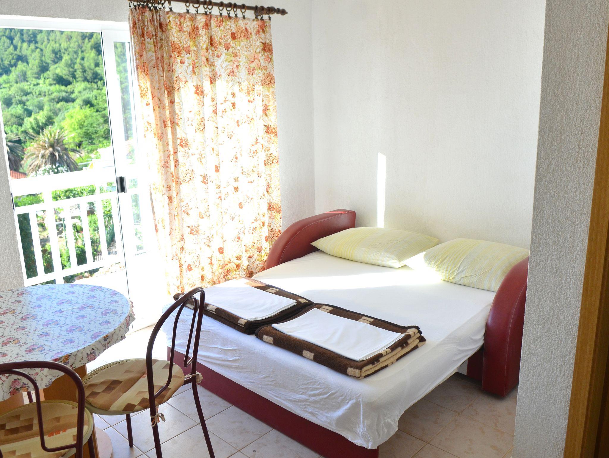 Studio bietet Platz für 5 Gäste. Die Betten sind in Schlafzimmern, die es 1 gibt, und in Esszimmer, innerhalb einer Gesamtfläche von 28m2, angeordnet. Die Gäste haben einen eigenen Balkon zur Verfügung, auf der sie in warmen Sommernächten genießen können. Das Studio-Apartment bietet Meerblick. Es ist erlaubt, Speisen auf dem Gemeinschafts-Grill vorzubereiten. IM PREIS INBEGRIFFEN: Kurtaxe, Endreinigung, Klimatisierung, Parkplatz, Internet, Kinderbett, tragbarer Grill. VERBINDLICHE ZUSÄTZLICHE KOSTEN: Aufzahlung für Kurzaufenthalte (prozentualer Zuschlag pro Nächtigungsanzahl: 30% - 1, 20% - 2, 10% - 3). UNVERBINDLICHE ZUSÄTZLICHE KOSTEN: Wäschewaschen (5,00 € Waschen). Die Verfügbarkeit zusätzlicher Dienstleistungen in Ihrem reservierten Termin und die Preise derselben (falls nicht aufgeführt) müssen im Voraus überprüft werden. Zusätzliche Dienstleistungen die in der Zahlungsaufforderung nicht aufgeführt sind werden direkt beim Vermieter bezahlt, angenommen der Gast nutzt auch diese. Ermäßigung auf den Grundpreis: Gratistag 21=19 (bei einem Aufenthalt von 21 Tagen oder mehr erhalten Sie 2 Gratistage für den Aufenthalt bis 31.12.26).