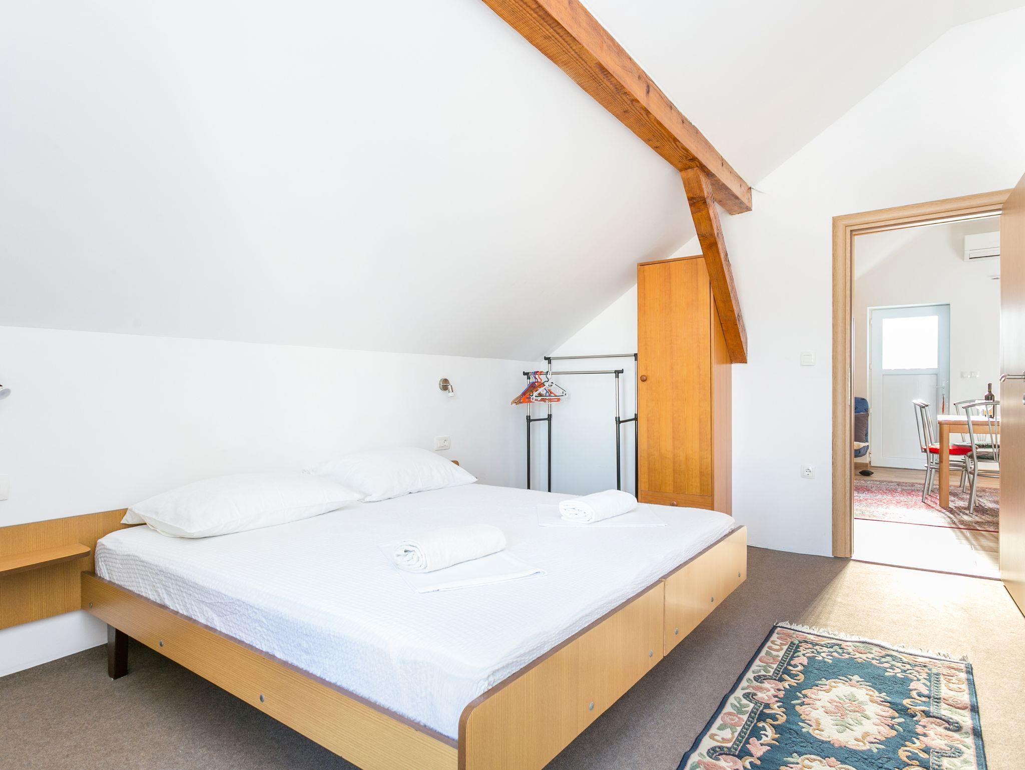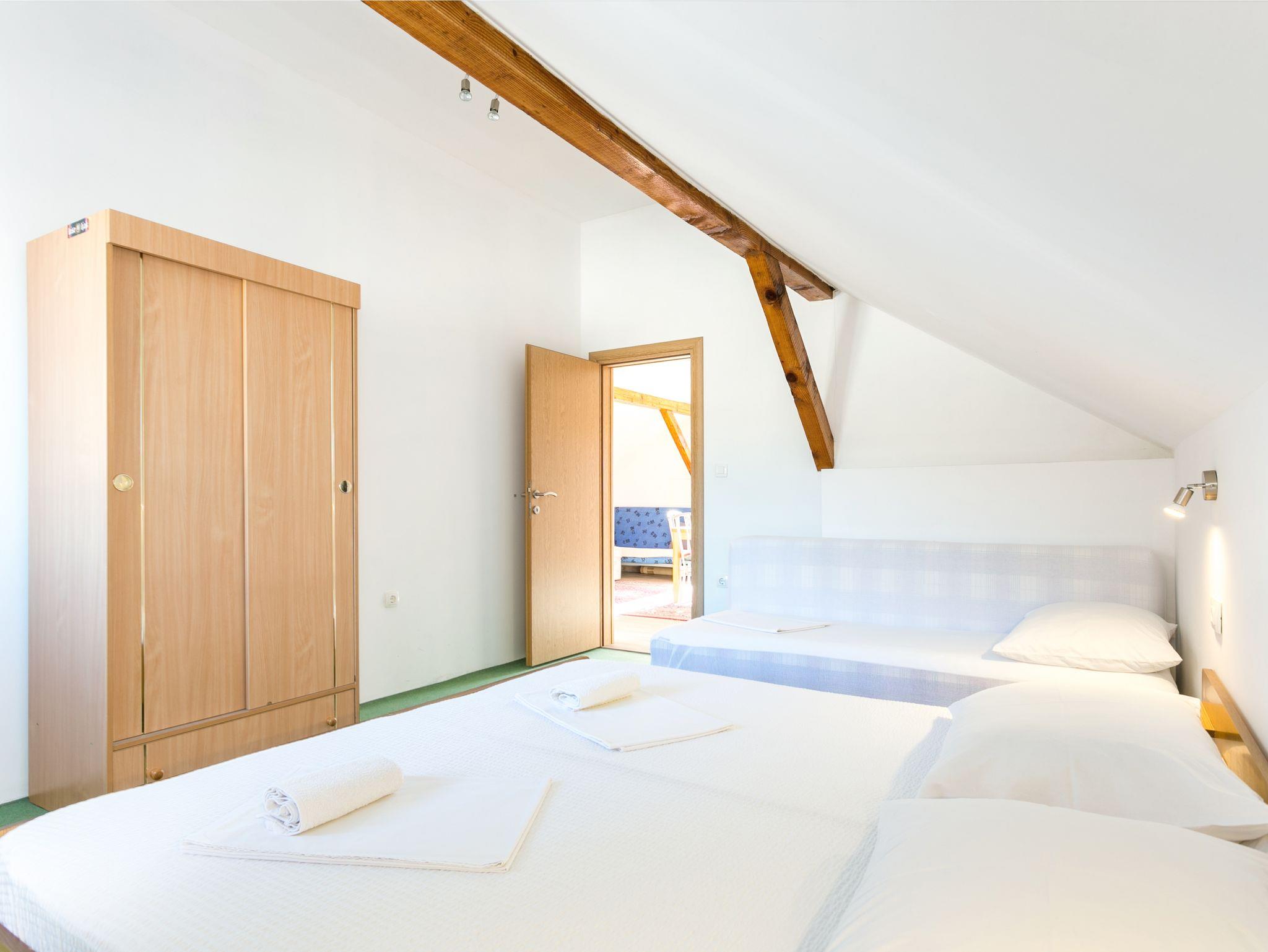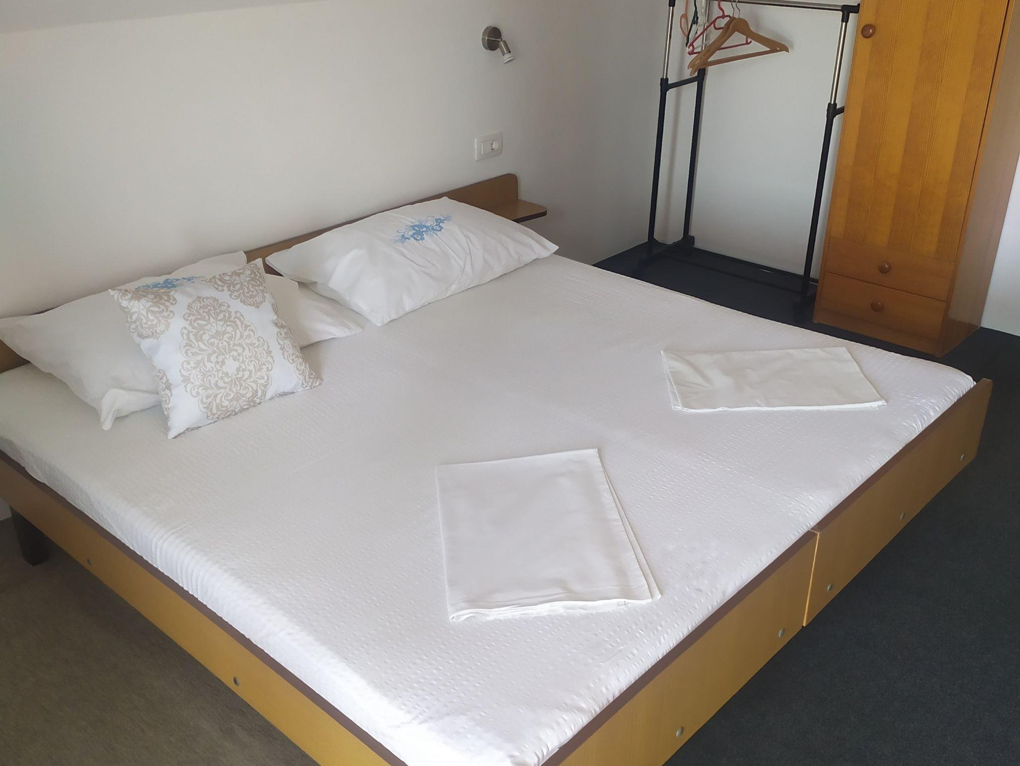Ferienwohnung bietet Platz für 5 Gäste. Die Betten sind in Schlafzimmern, die es 2 gibt, innerhalb einer Gesamtfläche von 56m2, angeordnet. Die Gäste haben einen eigenen Balkon zur Verfügung, auf der sie in warmen Sommernächten genießen können. Das Apartment bietet Meerblick. Es ist erlaubt, Speisen auf dem Gemeinschafts-Grill vorzubereiten. IM PREIS INBEGRIFFEN: Kurtaxe, Endreinigung, Parkplatz, Internet, Bügeleisen, Bügelbrett, Föhn. VERBINDLICHE ZUSÄTZLICHE KOSTEN: Aufzahlung für Kurzaufenthalte (prozentualer Zuschlag pro Nächtigungsanzahl: 30% - 1, 20% - 2, 10% - 3). UNVERBINDLICHE ZUSÄTZLICHE KOSTEN: Klimatisierung (5,00 € pro Nacht), Wäschewaschen (8,00 € Waschen). Die Verfügbarkeit zusätzlicher Dienstleistungen in Ihrem reservierten Termin und die Preise derselben (falls nicht aufgeführt) müssen im Voraus überprüft werden. Zusätzliche Dienstleistungen die in der Zahlungsaufforderung nicht aufgeführt sind werden direkt beim Vermieter bezahlt, angenommen der Gast nutzt auch diese.